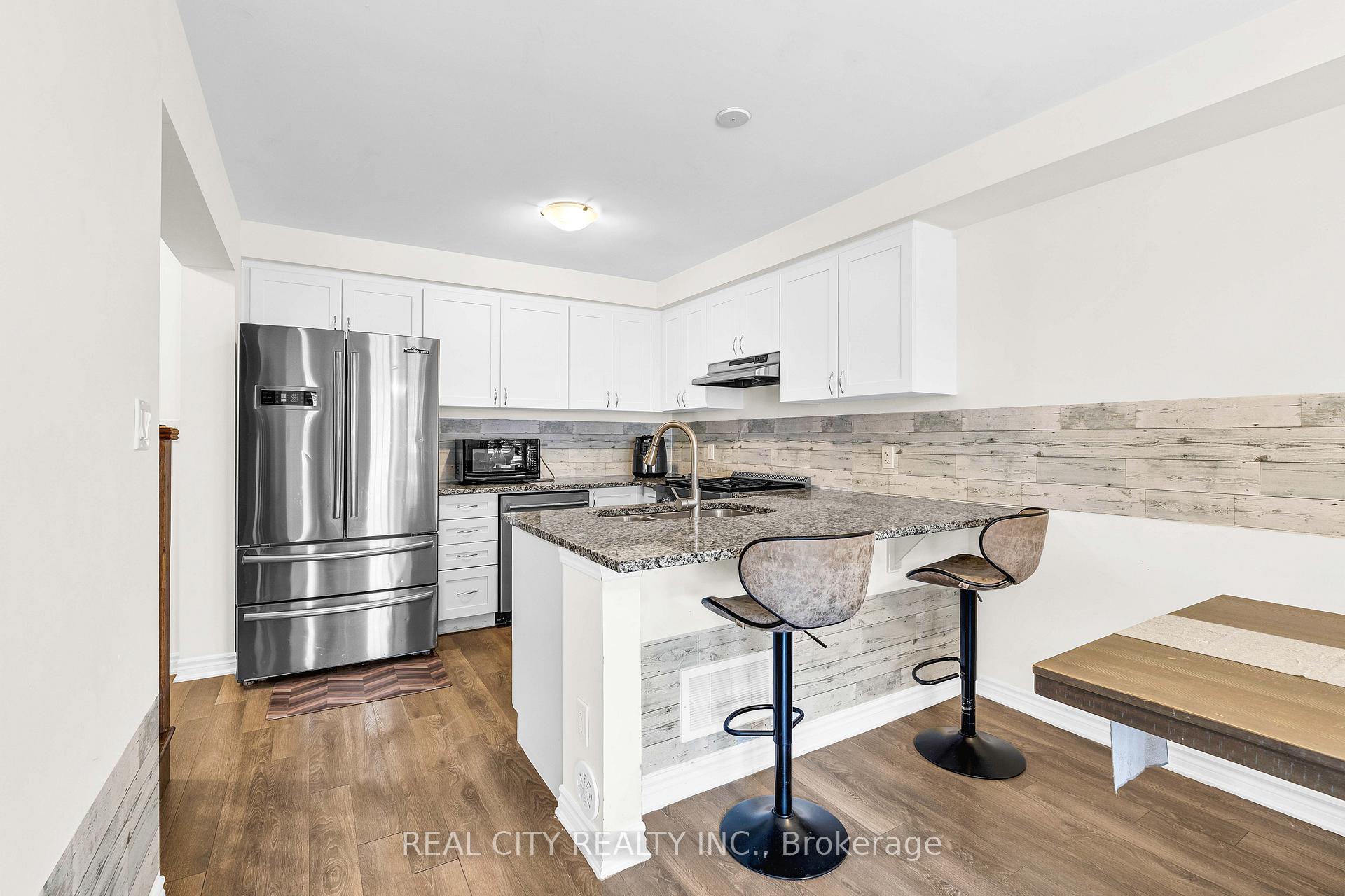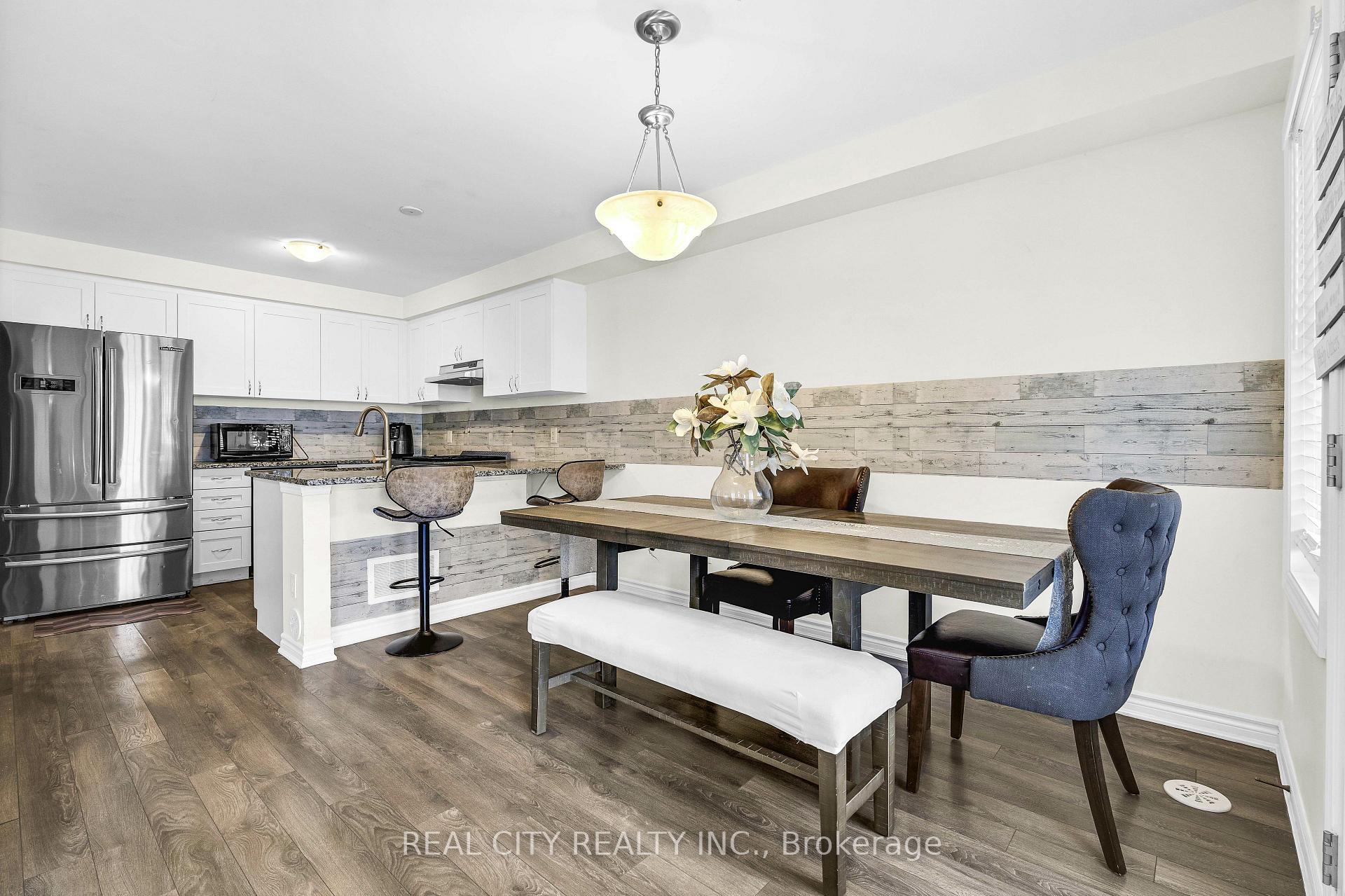 Welcome Home! Discover exceptional living in this stunning three-storey freehold townhouse built by Mattamy, ideally situated in the prestigiousRiver Mill community. Designed for modern lifestyles, this home offers three generously sized bedrooms and 2.5 stylish bathrooms across athoughtfully planned layout. The heart of the home is a bright, open-concept kitchen, living, and dining space-perfect for entertaining oreveryday comfort-flowing effortlessly onto an oversized balcony ideal for al fresco dining or relaxing evenings. The kitchen is a chef’s delight,featuring sleek graynite countertops, while rich laminate flooring throughout the main and second levels pairs beautifully with an eleganthardwood staircase. The spacious primary suite includes dual his-and-her closets, offering ample storage and functionality. Enjoy theconvenience of direct garage access and a commuter-friendly location just minutes from Highway 401. Surrounded by top-rated schools, parks,and essential amenities, this is a rare chance to own a beautifully appointed home in one of the area’s most desirable neighborhoods. Book yourprivate showing today to make it yours!