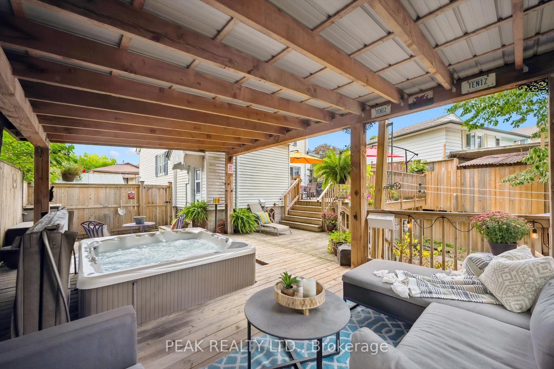 Welcome to 145 Bridgeport Rd E, where modern elegance meets investment potential! With a newly renovated bathroom and sleek lower level flooring, this charming one-and-a-half-story detached home is the ultimate opportunity for first-time homebuyers seeking a mortgage helper, families needing an in-law suite, or savvy investors eyeing a lucrative rental opportunity. A stunning large spruce tree in the front yard provides unique privacy while maintaining easy access to all the conveniences of Bridgeport Rd. The double-wide driveway accommodates five vehicles, ensuring ample space. Step into your fully fenced backyard, featuring an expansive 870 sqft of deck space adorned with a 24ft custom gazebo and a luxurious eight-seat Beachcomber hot tub (2020) perfect for unwinding after a long day. An interlock stone path leads to a beautifully designed stone patio, complete with a retaining wall and efficient drainage. Enjoy lushly landscaped gardens, a built-in garden shed, and a two-level deck that offers a serene escape with stunning park-like views. As you step inside, enjoy an open floor plan filled with natural light and newly renovated living spaces. Patio doors seamlessly connect the indoor and outdoor living areas. All windows and doors were replaced in 2022, enhancing aesthetics and energy efficiency. The main floor kitchen (2022) shines with elegant quartz countertops, a breakfast bar, cozy coffee nook, a stylish tile backsplash, and abundant cupboard space. On the second level, you’ll find two generously sized bedrooms with original cherry wood floorboards, fresh paint throughout, and extensive attic storage. The lower level features new flooring, a one-bedroom apartment with a separate entrance, shared laundry, and a newly renovated three-piece bath (2023). This rare property is move-in ready and minutes from uptown Waterloo, restaurants, grocery stores, schools, and the LRT.