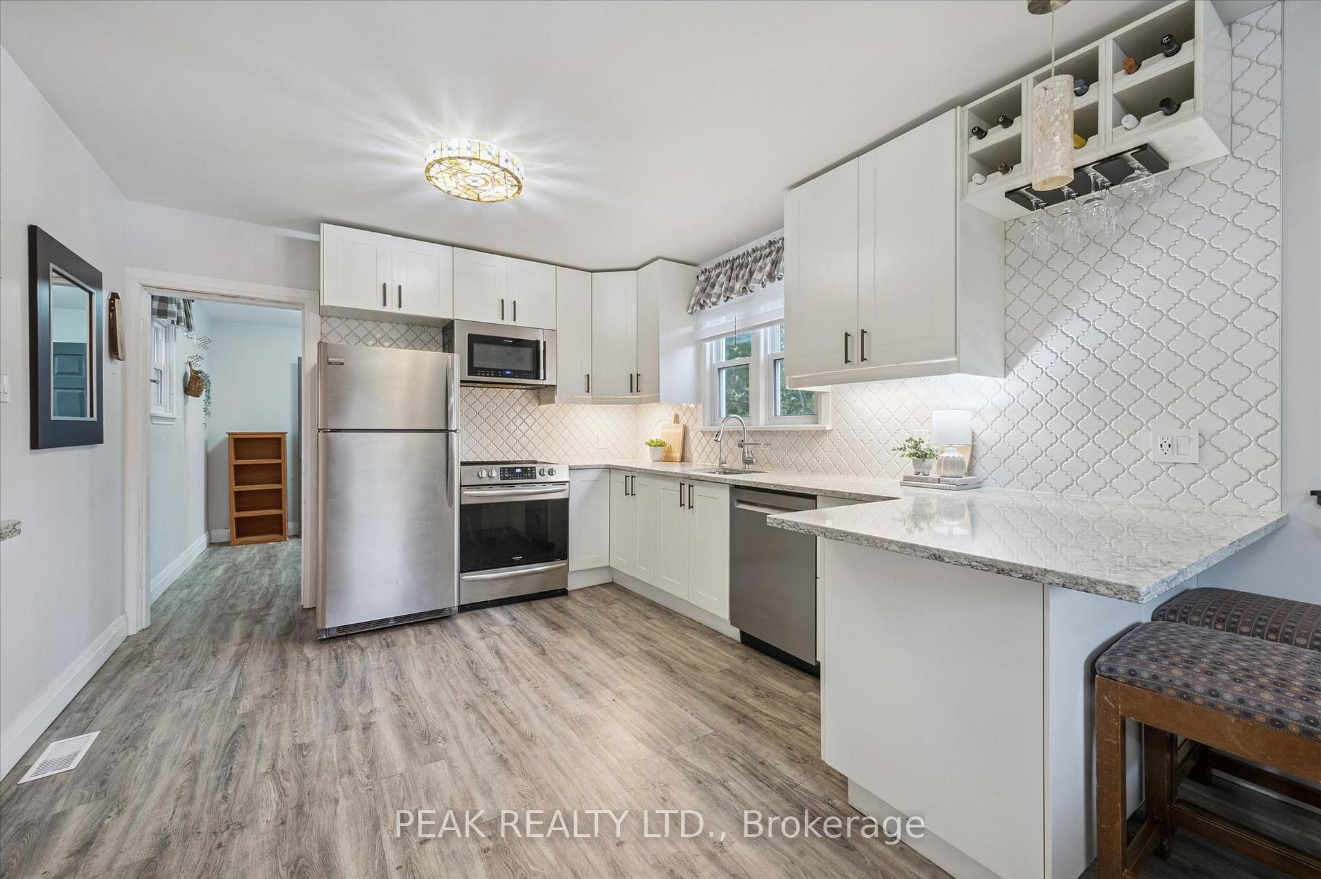 Welcome to 145 Bridgeport Rd E, Looking for a blend of comfort, privacy, and investment potential? This charming one-and-a-half-story detached home is the ultimate opportunity for first-time homebuyers seeking a mortgage helper, families in need of an in-law suite, or savvy investors eyeing a lucrative rental opportunity. A stunning large spruce tree in the front yard provides unique privacy while maintaining easy access to all the conveniences of Bridgeport Rd. The double-wide driveway accommodates five vehicles, ensuring ample space. Step into your fully fenced backyard, featuring an expansive 870sqft of deck space adorned with a 24ft custom gazebo. A luxurious eight-seat Beachcomber hot tub(2020)perfect for unwinding after a long day. An interlock stone path leading to a beautifully designed stone patio complete with a retaining wall and efficient drainage.Lushly landscaped gardens, a built-in garden shed, and a two-level deck that offers a serene escape with stunning park-like views. As you step inside, enjoy an open floor plan filled with natural light and newly renovated living spaces. Patio doors that seamlessly connect the indoor/outdoor living spaces. All windows and doors were replaced in 2022, offering modern aesthetics and energy efficiency.The main floor kitchen(2022),shines with elegant quartz countertops, featuring a breakfast bar, cozy coffee nook, a stylish tile backsplash, and abundant cupboard space. On the second level you’ll find two generously sized bedrooms, boasting original cherry wood floorboards, fresh paint throughout, along with extensive attic storage. An exterior door in the second bedroom leads to the roof below, securely designed for a bathroom addition. The lower level, provides a legal one-bedroom apartment with a separate entrance, shared laundry facilities, a full kitchen, and three-piece bath(2014). This rare property is move-in ready and minutes from uptown Waterloo, restaurants, grocery stores, schools and the LRT.