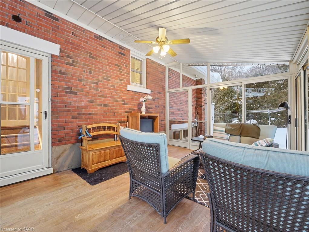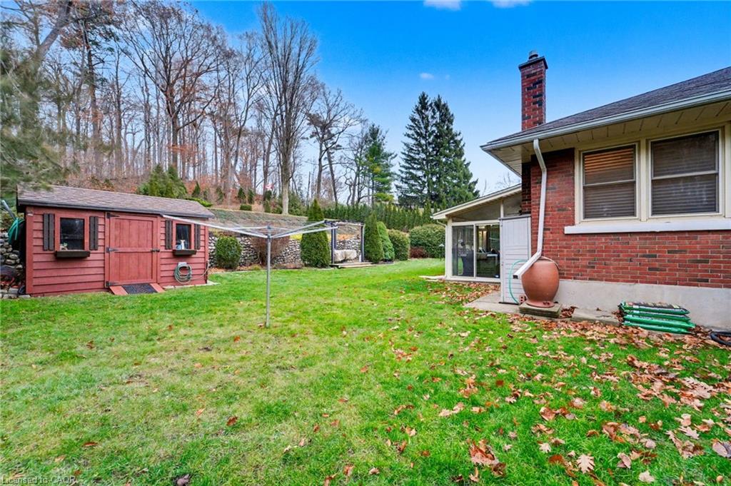 Executive detached bungalow situated on a premium 100 x 174.5 ft deep lot in the prestigious Hespeler Village. This rare property offers exceptional privacy, backing directly onto the Schiedel Woodlot, with private trail access from your very own backyard. Inside, you’re welcomed by a warm and inviting living room featuring upgraded floors, abundant natural light, and a cozy gas fireplace. The custom chef’s kitchen impresses with granite countertops, stainless steel appliances, and ample cabinetry-perfect for both everyday comfort and entertaining. The main level is complete with three generous bedrooms featuring upgraded closet doors and a fully renovated bathroom. Step into the beautifully crafted 3 season sunroom, offering peaceful views of mature trees and unmatched privacy. The fully finished lower level expands your living space with a large open-concept recreation area, a second gas fireplace, and a full bathroom. An additional multi-purpose room-ideal for a music room, home office, gym, or guest suite-adds flexibility. The lower level also includes a bar area, storage, and a spacious utility room.