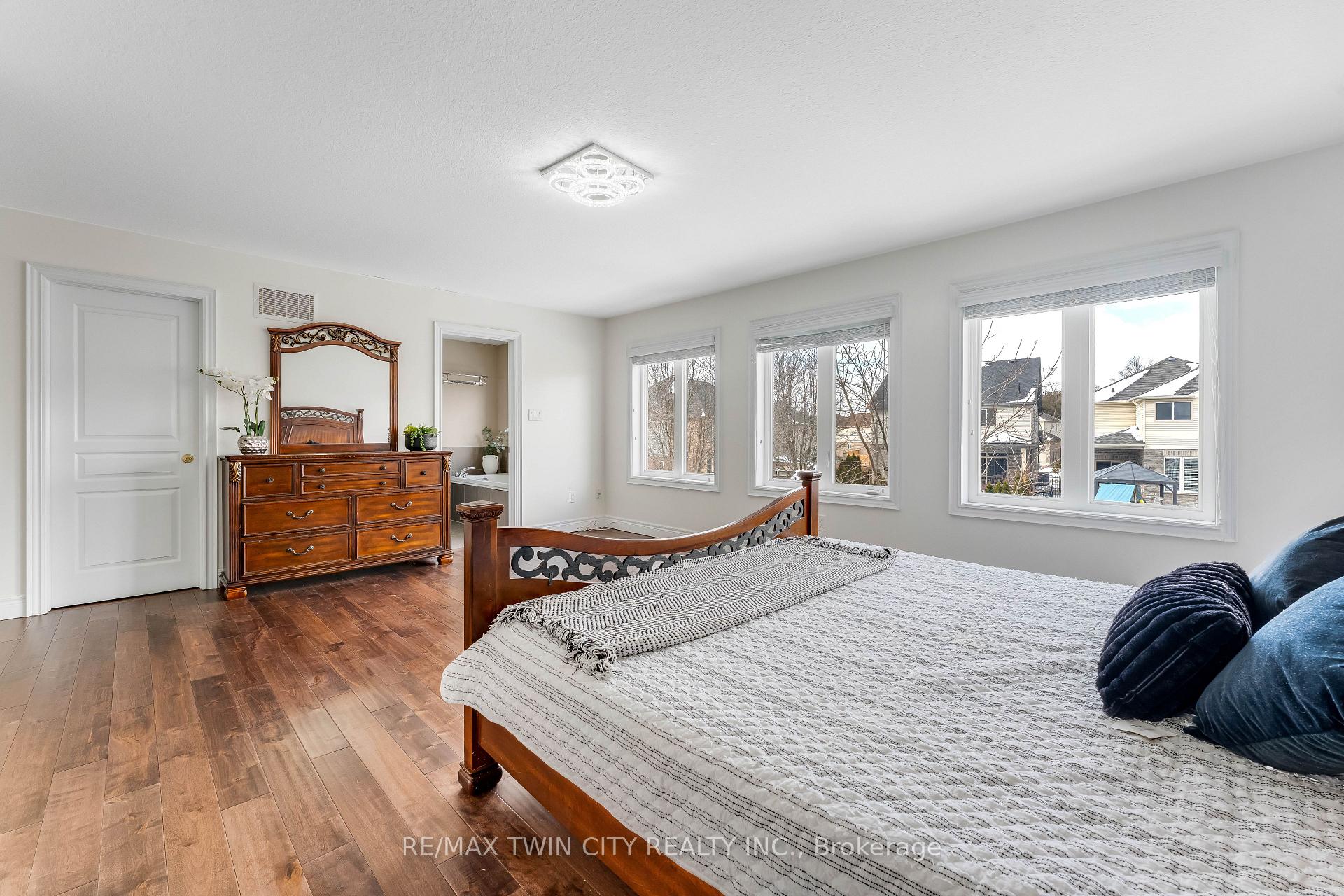 Welcome to 145 Redtail Street, Kitchener: a true statement of luxury living nestled in the family-friendly community of Lincoln Village. Step into a grand, welcoming foyer that sets the tone for this exceptional custom-built residence, Boasting 5 bedrooms, 6 bathrooms and 5 Car parking (2 garage, 3 Driveway). The main level showcases impressive 9ft ceilings and a completely carpet-free design. Chef-inspired kitchen featuring stainless steel appliances, a chic backsplash, extended cabinetry and an oversized center island. The open-concept layout seamlessly connects the kitchen to the dining, family and living areas. Enjoy immersive sound with a built-in 3-section central speaker system in the family room. Upstairs, retreat to the luxurious primary suite complete with a spa-like 4pc ensuite and a generous walk-in closet. Additional bedrooms are thoughtfully designed, with one Bedroom offering private ensuite and 2 bedrooms sharing an upgraded 3pc bathroom. A convenient main-floor laundry room adds practical appeal. The fully finished basement is offering incredible in-law suite or income potential. Featuring a large Rec room, kitchenette, oversized bedroom, 2 modern 3pc bathrooms, laundry rough-in and ample storage. Step outside to your own fully fenced backyard, complete with a stunning stamped concrete patio, professionally finished interlock (2022), a HOT TUB and a sparkling inground swimming pool. This backyard is perfect for relaxing and hosting unforgettable gatherings. Additional upgrades include: Hardwood flooring (2023), finished basement (2023), water softener (2023), hot water tank (2023), dryer (2022). Located in the highly sought-after Kiwanis Park/River Ridge area, this home is just steps from the scenic Grand River, walking and biking trails. Enjoy proximity to RIM Park, Grey Silo Golf Club, top-rated schools, shopping and easy highway access. This is more than just a home, it’s a lifestyle. Don’t miss the opportunity, Book your private showing Today!
