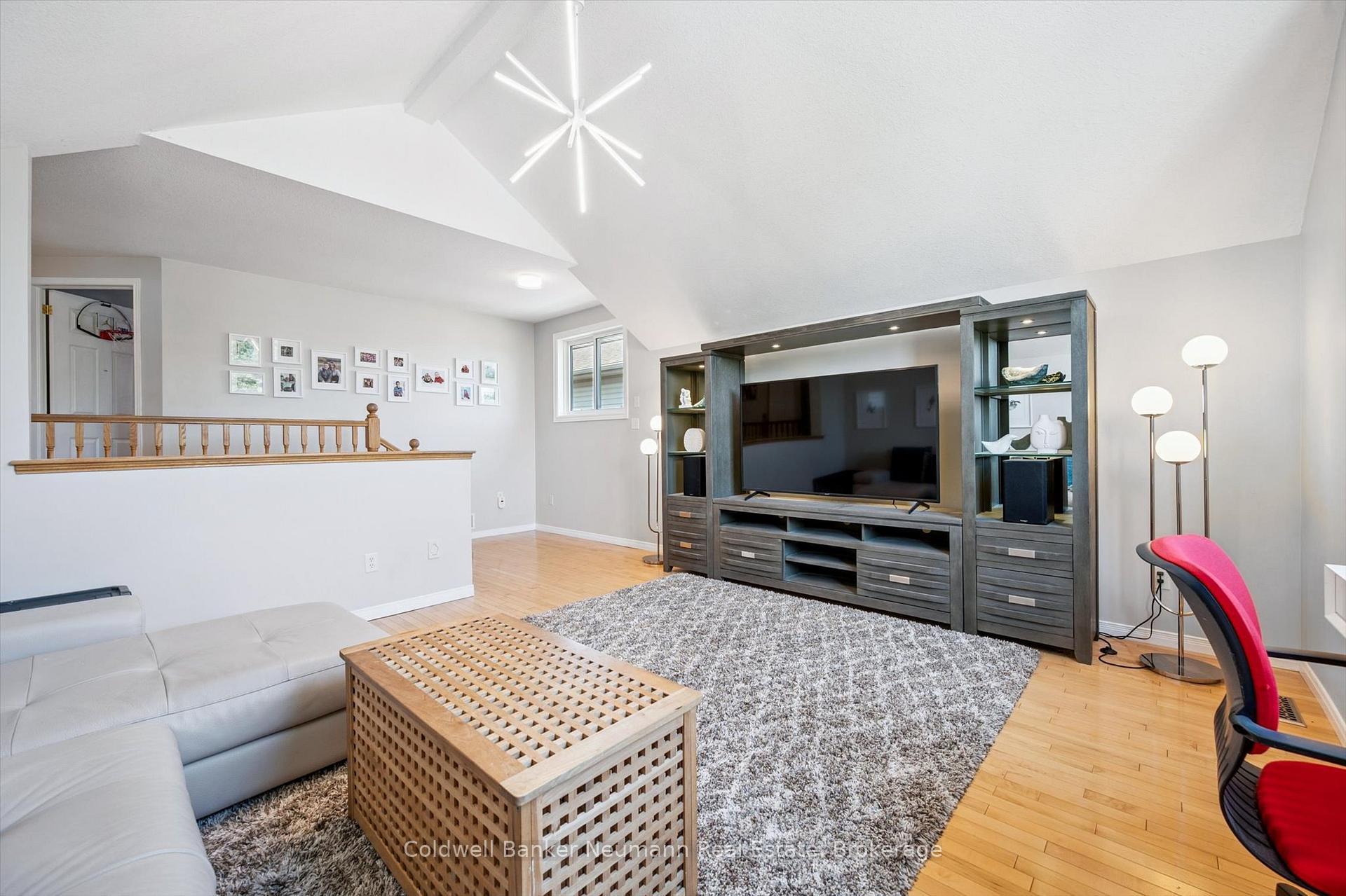 Prime location! Beautiful 2 storey detached South-end home backing onto greenspace overlooking pond. The main floor of this home boasts a great room with hardwood floors and gas fireplace and a bright open kitchen with granite countertops, and breakfast bar. Sliders lead for the dining room to a massive, covered ,fully screened in, composite deck perfect for relaxing and bug-free entertaining. There is also another door opening onto separate deck for bbqing and a fully fenced and landscaped backyard. The second floor has a large family room with vaulted ceiling, 2 good sized bedrooms, 4pc main bathroom and a spacious master bedroom, walk in closet and an ensuite bath with separate shower and whirlpool tub. The professionally-finished basement has a separate entrance and large windows for inlaw potential and features a large rec room, 2 pc bath and a 4th bedroom. The home has been meticulously cared for with all new windows and doors in 2024, new furnace 2022, recent, roof , garage door, owned hot water heater and water softener. There is ample parking with an attached 2 car garage and double wide driveway. This home is ideally located on a quiet street close to Kortright Hills P.S., the YMCA, Hanlon Business Park, walking/recreation trails and with easy 401 access.