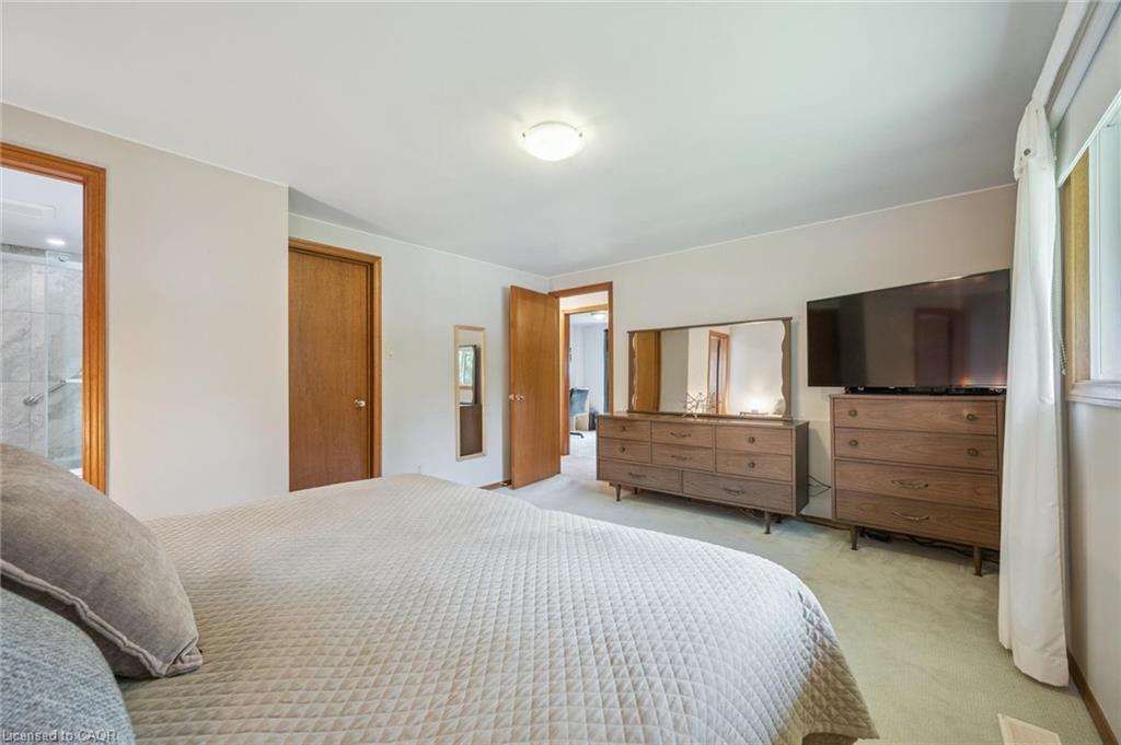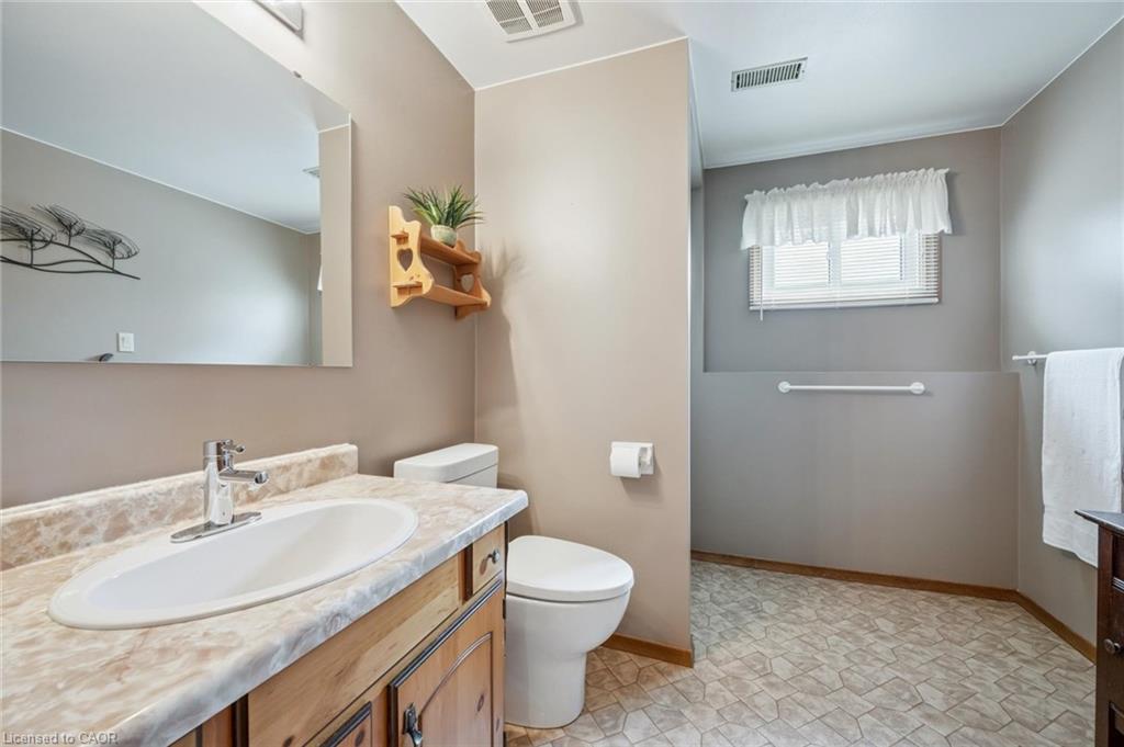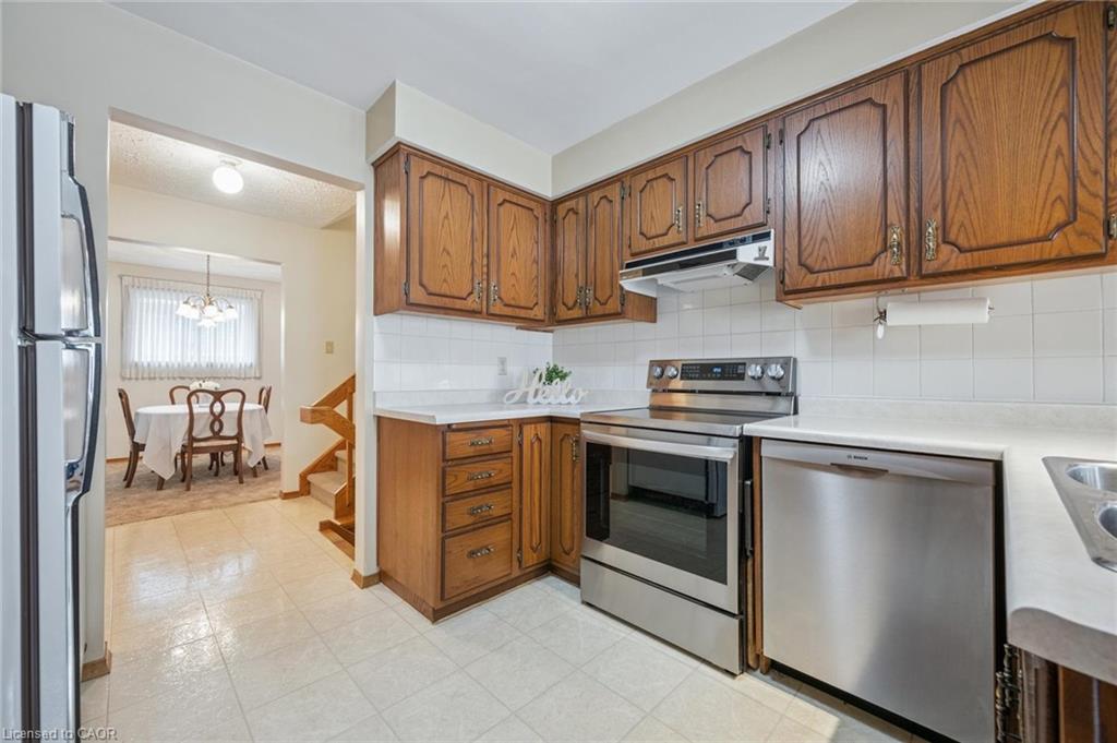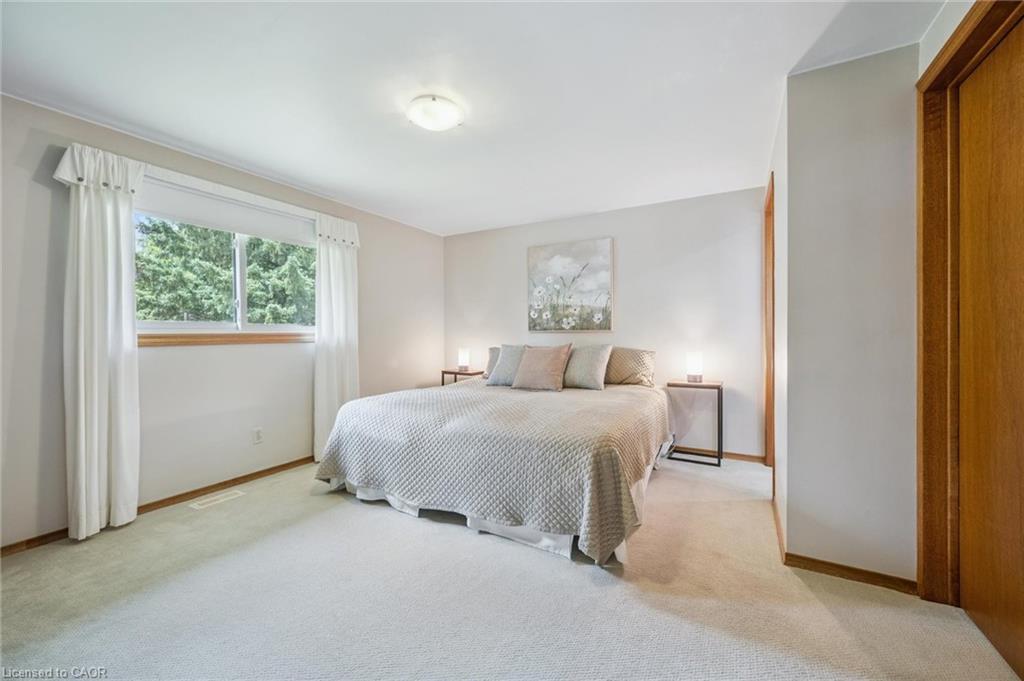 Welcome to 147 Sunpoint Crescent! This detached four-level back split has been meticulously cared for and is move-in ready. The home boasts 1,923 square feet of finished living space, three bedrooms, and three full bathrooms on a spacious lot. The main floor is warm and inviting, featuring a spacious living room, dining room, and eat-in kitchen. The kitchen is bright and spacious, with ample cabinet storage. The breakfast area leads out to a private backyard with a large deck, perfect for summer BBQs, outdoor dining, or simply enjoying the surroundings. The second floor boasts a large primary bedroom with a walk-in closet and a beautifully updated three-piece bathroom. The upper level also includes two additional bedrooms and another beautifully updated four-piece main bath. The spacious and well-appointed lower level family room features large “lookout” windows, a cozy gas fireplace, and a games area that could be converted into a fourth bedroom or office. This space also includes an additional full bathroom (three-piece). The unfinished basement level has a workshop space, laundry, storage, a cold room, and space for a future recreation area. The home has an attached double car garage that offers plenty of space for two vehicles, plus a huge driveway that can accommodate four more cars. This beautiful family home is located in a desirable neighbourhood close to schools, parks, shopping, and other amenities. It’s just a five-minute drive from St. Jacobs Farmers Market, walking distance to Northlake Woods Public School, and a short walk to Laurel Creek Conservation Area, which boasts hiking trails, camping, a man-made lake with swimming, and much more. Updates include: Eavestroughs (2025), Primary ensuite (2017), Main Bath (2023). Make this your new home!