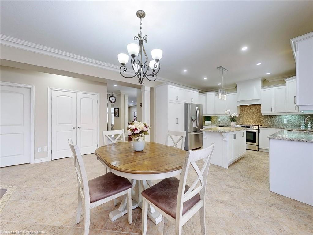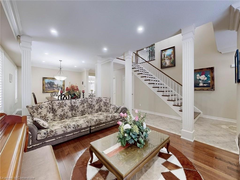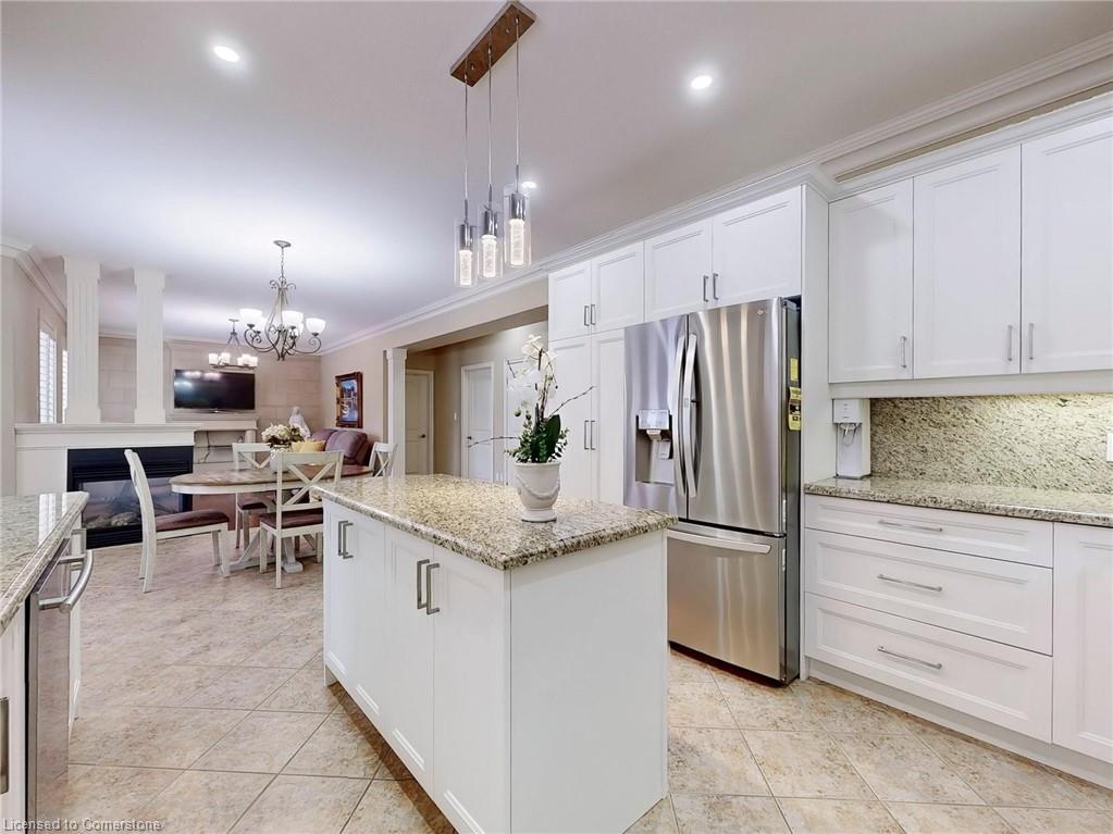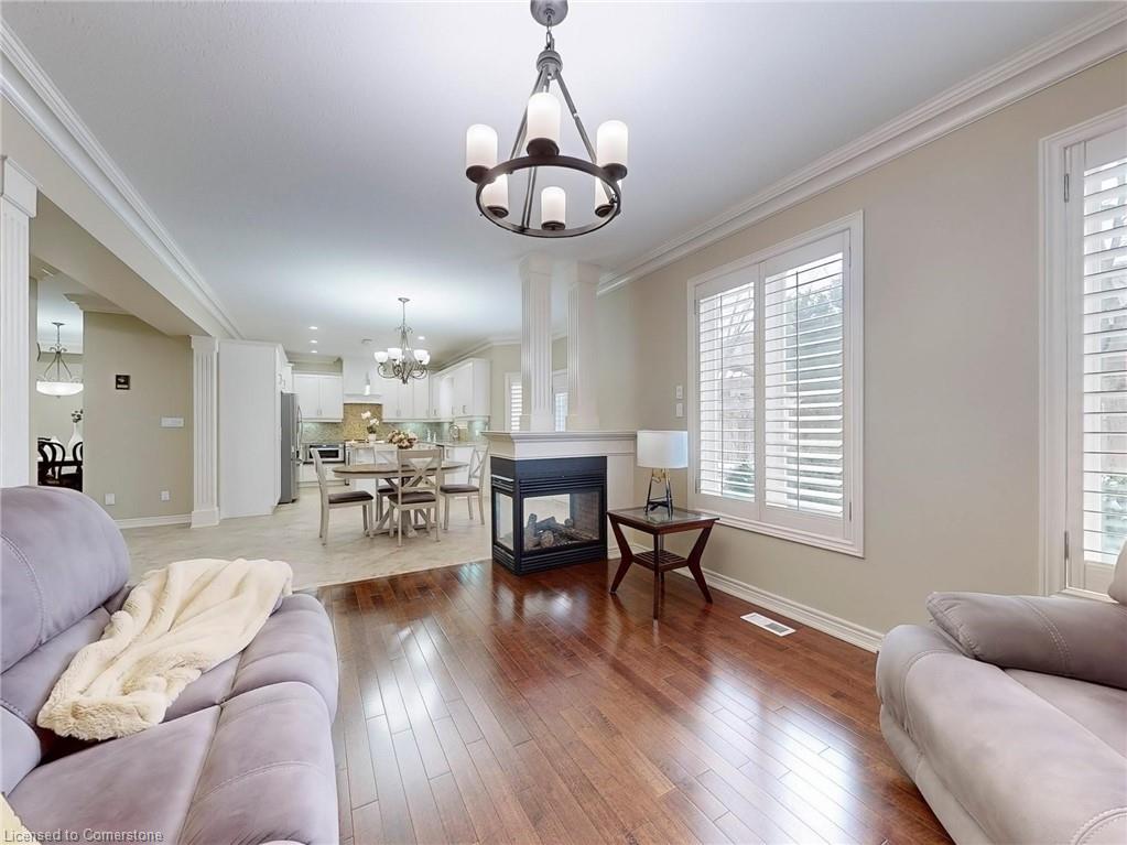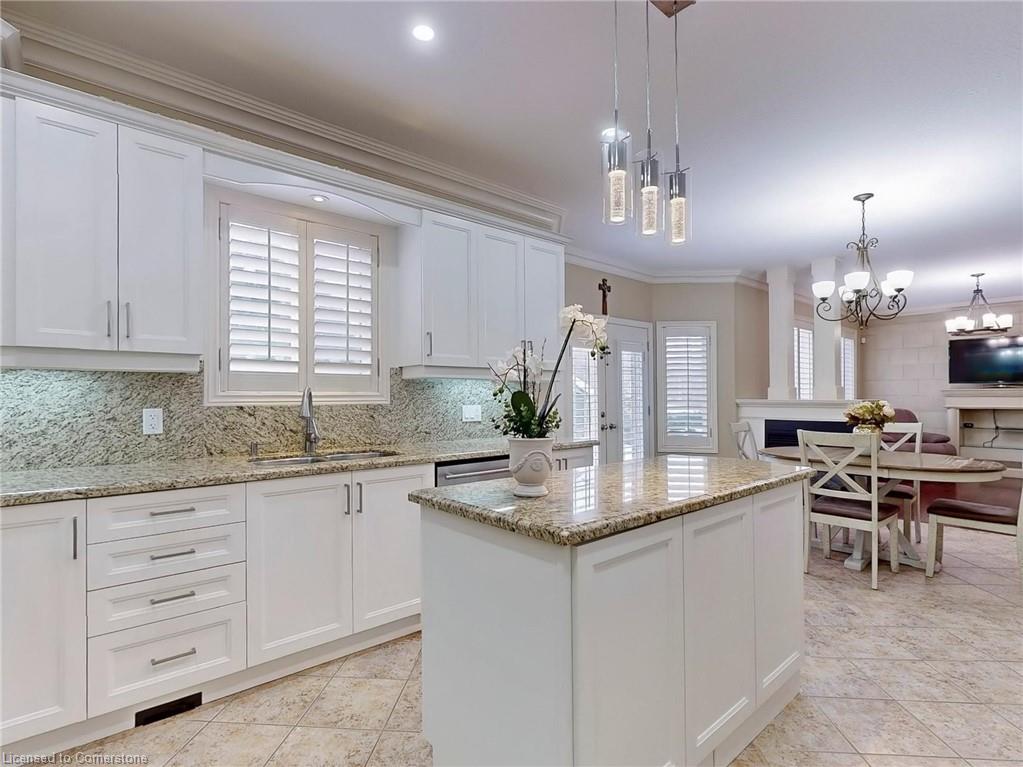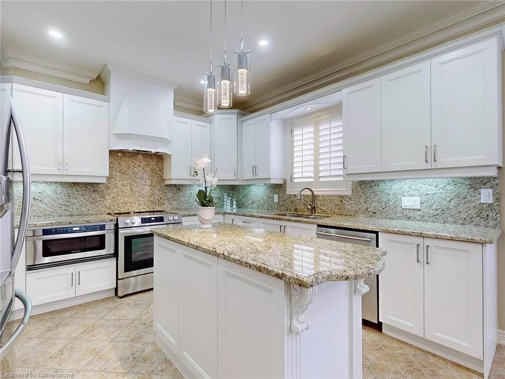 Welcome to this meticulously maintained 4-bedroom detached home, offering over 3200 sqft above-ground living space in Ancaster. Featuring 9-ft ceilings and seamless flooring & tile throughout, this home combines elegance with modern comfort. The spacious living room facing the beautiful front yard, and combining with the dining. The open-concept family room flows into the recently upgraded gourmet kitchen, complete with granite countertops, customized backsplash, S/S appliances and premium finishes. A spacious breakfast area overlooks the landscaped backyard, creating the perfect setting for relaxation and entertainment. A big den offers convenience for people WFH. Upstairs, 4 good-sized bedrooms. The primary suite boasts a spa-like ensuite and a walk-in closet, while the additional bedrooms feature large windows, filling the space with natural light. A versatile open sitting area can be converted into a 5th bedroom, or additional bathroom to suit your needs. Over $$$150K in upgrades, including roof, window, new kitchen, professionally finished basement, ample pot lights, elegant LED chandeliers, and more. The front and backyard showcase beautiful interlocking and a landscaped garden. Prime Location! Situated in a quiet, family-friendly neighborhood, walking distance to Ancaster High School (IB program) and just minutes from parks, golf courses, shopping, hospitals, and Hwy403. A perfect blend of style, comfort, and convenience – Don’t miss it!