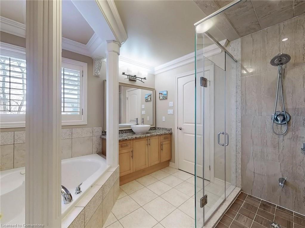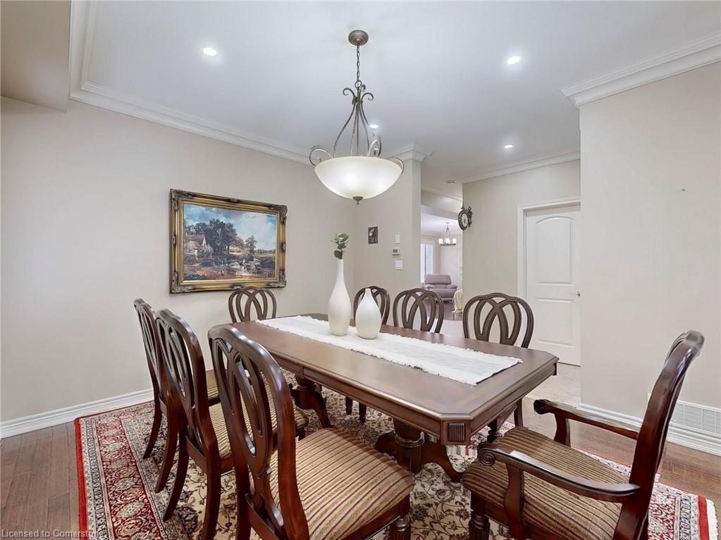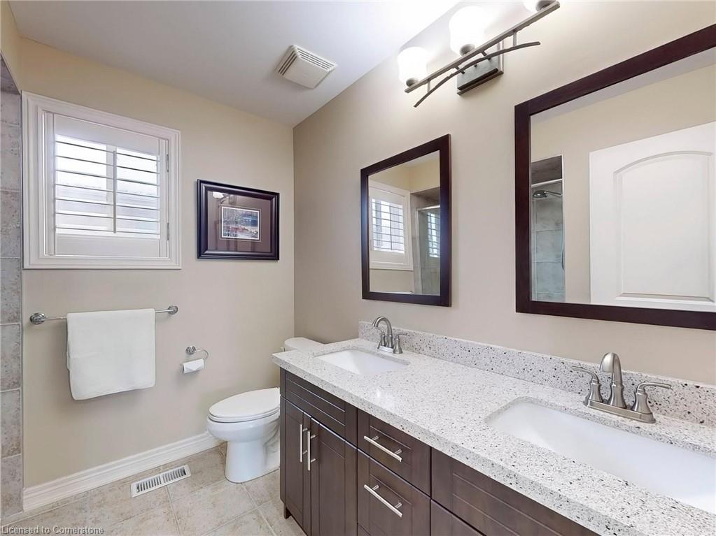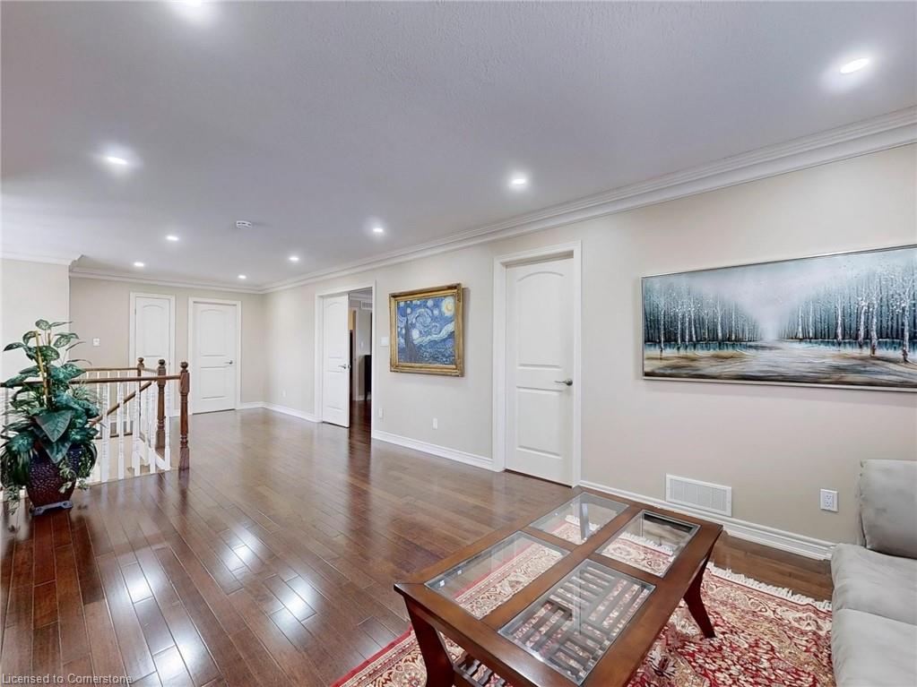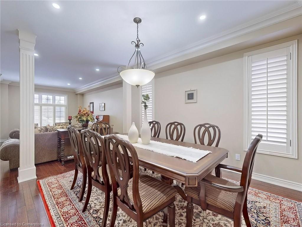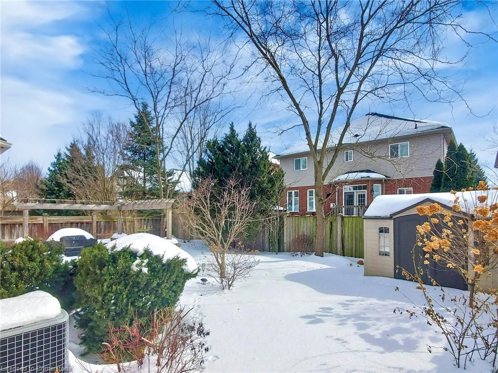 Welcome to this meticulously maintained 4-bedroom detached home, offering over 3200 sqft above-ground living space in Ancaster. Featuring 9-ft ceilings and seamless flooring & tile throughout, this home combines elegance with modern comfort. The spacious living room facing the beautiful front yard, and combining with the dining. The open-concept family room flows into the recently upgraded gourmet kitchen, complete with granite countertops, customized backsplash, S/S appliances and premium finishes. A spacious breakfast area overlooks the landscaped backyard, creating the perfect setting for relaxation and entertainment. A big den offers convenience for people WFH. Upstairs, 4 good-sized bedrooms. The primary suite boasts a spa-like ensuite and a walk-in closet, while the additional bedrooms feature large windows, filling the space with natural light. A versatile open sitting area can be converted into a 5th bedroom, or additional bathroom to suit your needs. Over $$$150K in upgrades, including roof, window, new kitchen, professionally finished basement, ample pot lights, elegant LED chandeliers, and more. The front and backyard showcase beautiful interlocking and a landscaped garden. Prime Location! Situated in a quiet, family-friendly neighborhood, walking distance to Ancaster High School (IB program) and just minutes from parks, golf courses, shopping, hospitals, and Hwy403. A perfect blend of style, comfort, and convenience – Don’t miss it!
