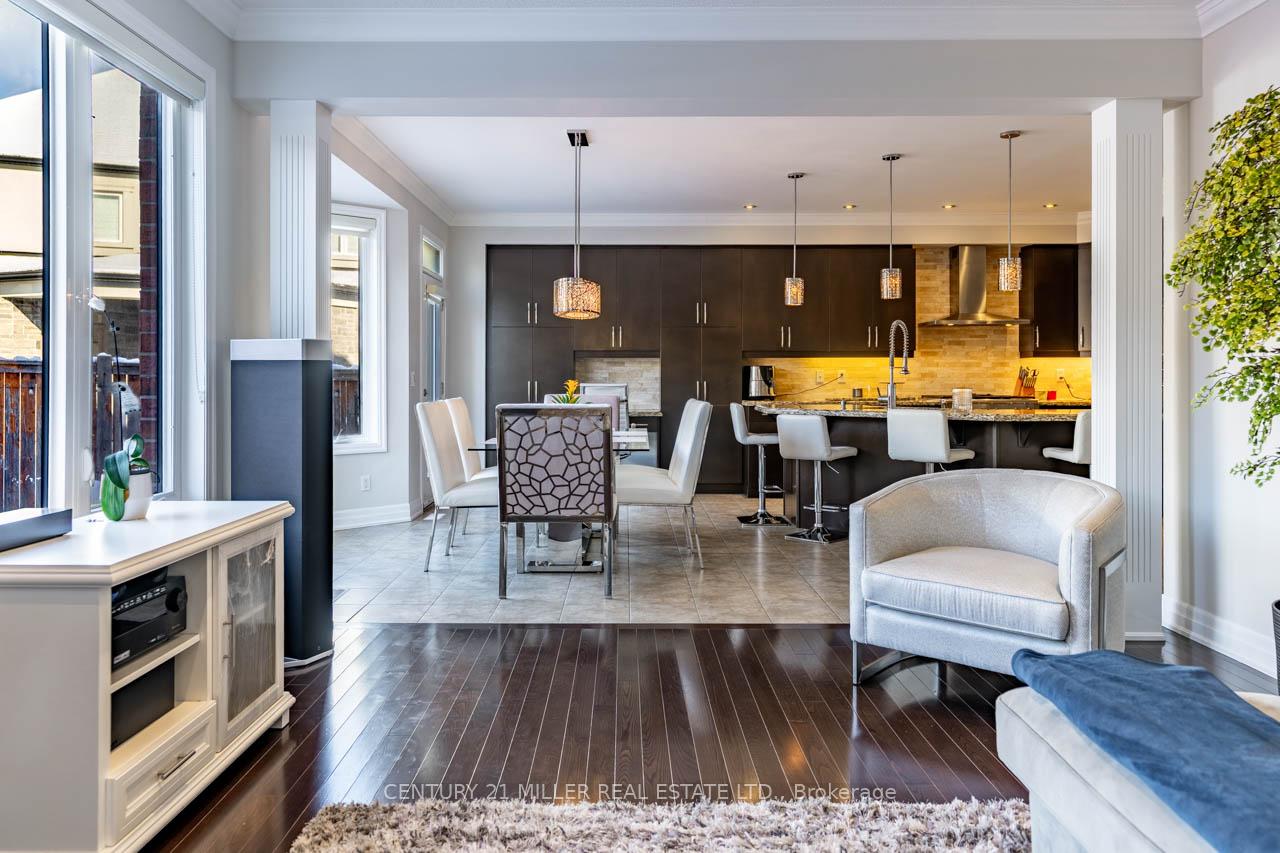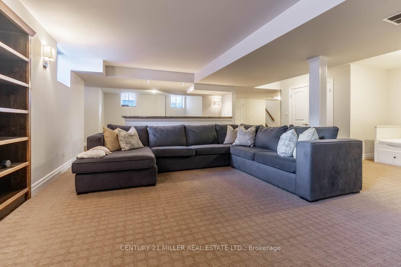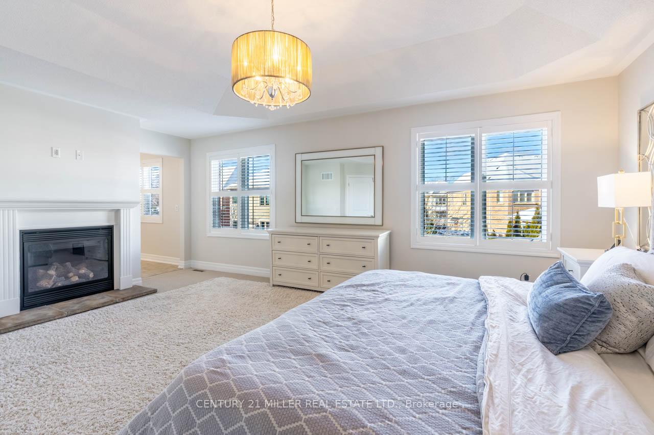 Step into this executive Heathwood home in Milton’s sought-after Scott neighbourhood, offering over 3,200 square feet of thoughtful design, timeless finishes, and family-friendly space. The main floor welcomes you with a sunken foyer, nine-foot ceilings, rich oak flooring, coffered and crown-detailed formal rooms, a private office, and a warm family room centred around a gas fireplace. The kitchen is the heart of the home, featuring granite counters, an island with a breakfast bar, a stone backsplash, built-in pantries, and premium Dacor appliances. Upstairs, four spacious bedrooms each enjoy direct access to a bathroom, including a generous primary retreat with a tray ceiling, gas fireplace, custom walk-in closet, and a relaxing ensuite with two vanities, a jetted tub, and a glass shower. The finished basement expands your living space with a rec room, built-in media wall, bar-height seating, a full bathroom, and plenty of storage, with potential for a future side entrance thanks to the wide side yard. Outside, enjoy a portico entry, stone walkway, a private backyard with a stone patio, and a double-wide driveway with no sidewalk. Located on a quiet street at the base of the escarpment, close to trails, top-rated schools, downtown Milton, and with quick access to the upcoming Tremaine/401 interchange, this is an opportunity to move into a prestigious neighbourhood designed for family living and everyday comfort.