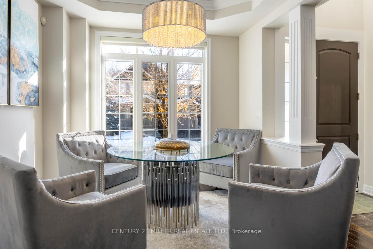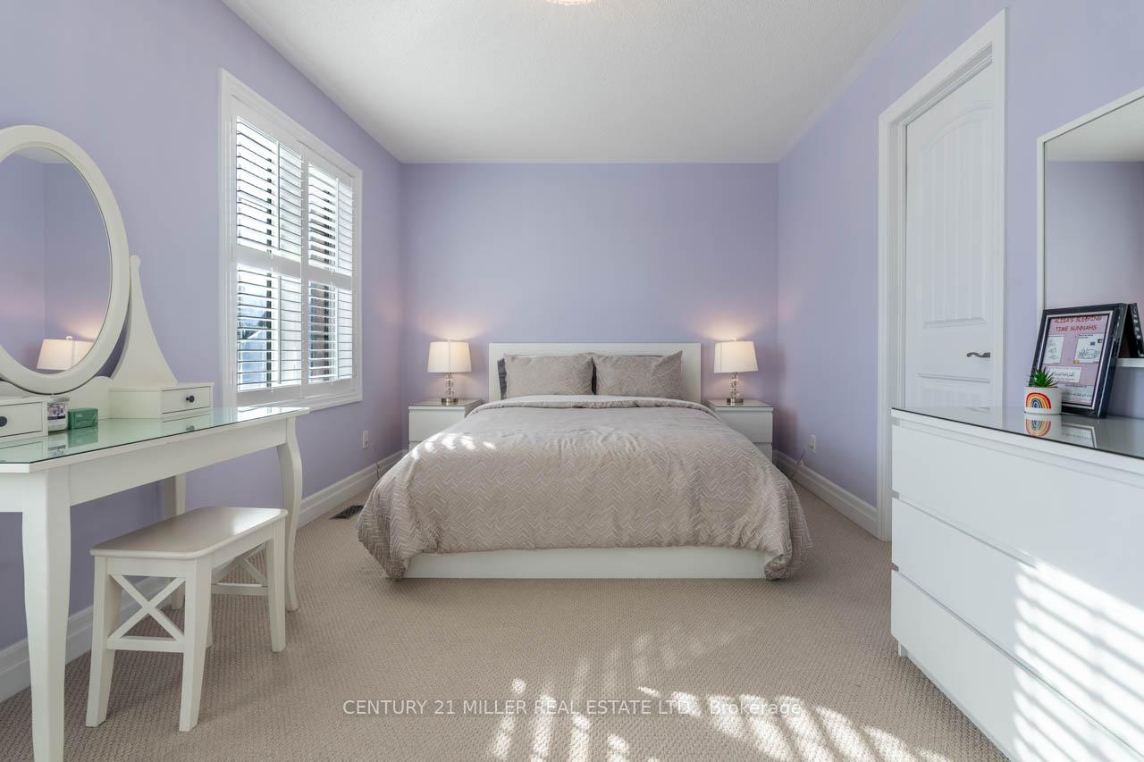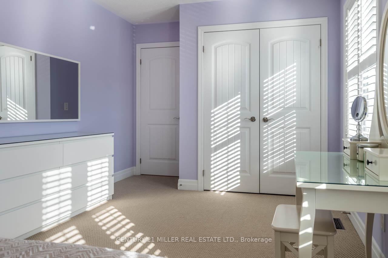 Step into this executive Heathwood home in Milton’s sought-after Scott neighbourhood, offering over 3,200 square feet of thoughtful design, timeless finishes, and family-friendly space. The main floor welcomes you with a sunken foyer, nine-foot ceilings, rich oak flooring, coffered and crown-detailed formal rooms, a private office, and a warm family room centred around a gas fireplace. The kitchen is the heart of the home, featuring granite counters, an island with a breakfast bar, a stone backsplash, built-in pantries, and premium Dacor appliances. Upstairs, four spacious bedrooms each enjoy direct access to a bathroom, including a generous primary retreat with a tray ceiling, gas fireplace, custom walk-in closet, and a relaxing ensuite with two vanities, a jetted tub, and a glass shower. The finished basement expands your living space with a rec room, built-in media wall, bar-height seating, a full bathroom, and plenty of storage, with potential for a future side entrance thanks to the wide side yard. Outside, enjoy a portico entry, stone walkway, a private backyard with a stone patio, and a double-wide driveway with no sidewalk. Located on a quiet street at the base of the escarpment, close to trails, top-rated schools, downtown Milton, and with quick access to the upcoming Tremaine/401 interchange, this is an opportunity to move into a prestigious neighbourhood designed for family living and everyday comfort.