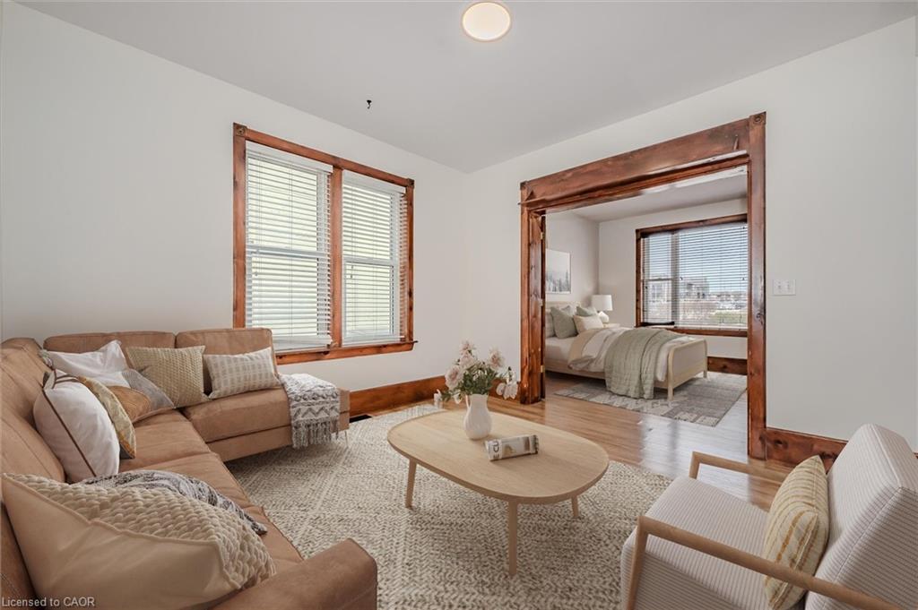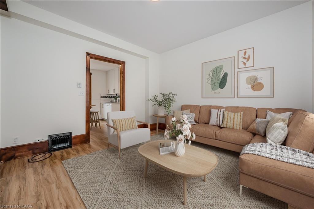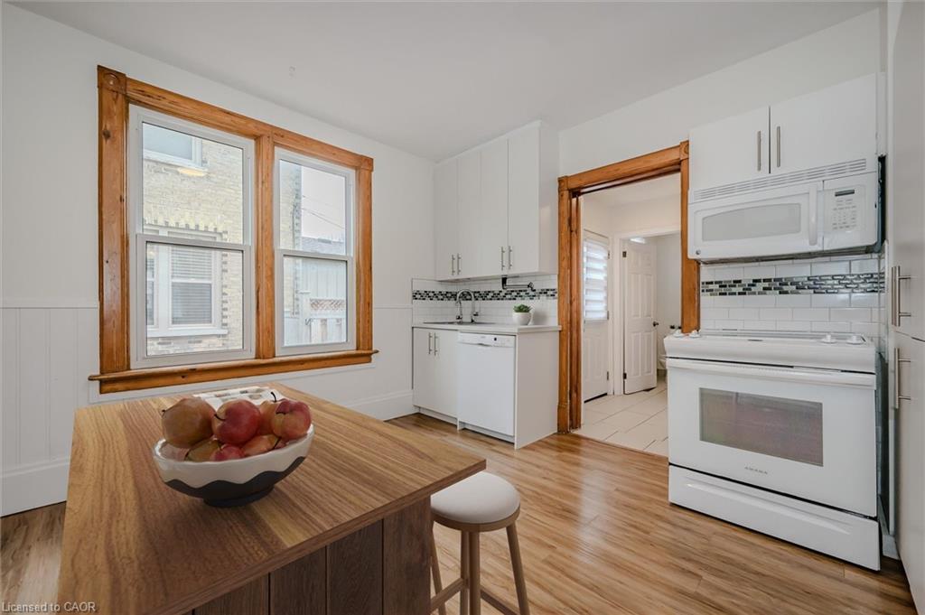 Excellent opportunity in the heart of downtown Kitchener. The main floor offers a 2-bedroom unit with access to a lovely fully fenced backyard, patio, and a basement with plenty of additional space—ideal for storage or a workshop. Rent out the bright and spacious upper suite as a mortgage helper or income-generating unit. Both units feature separate hydro meters, in-suite laundry, updated kitchens and bathrooms, and fresh paint throughout. Enjoy living just steps from Victoria Park, Kitchener Market, Google, The Aud, LRT, restaurants, and all the amenities of vibrant DTK, with easy access to Highway 7/8. A turnkey property with income potential in an unbeatable location. Property is virtually staged.