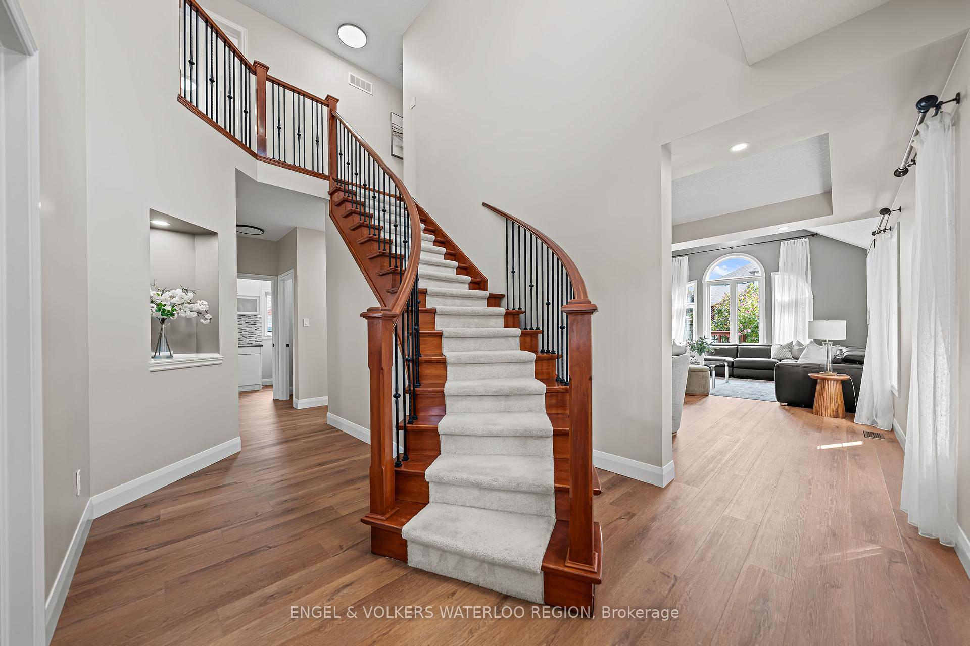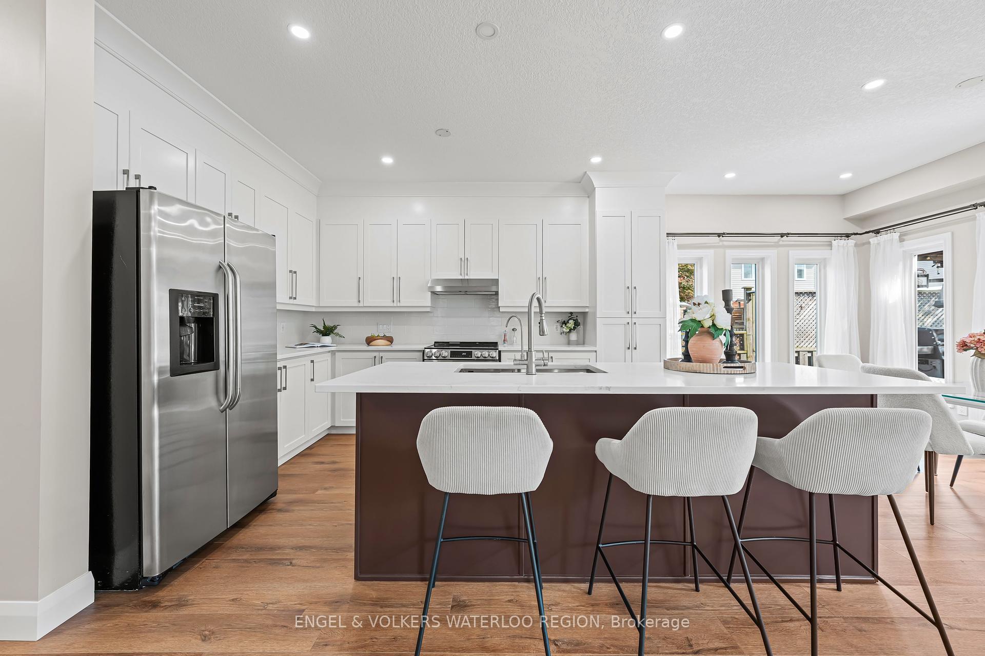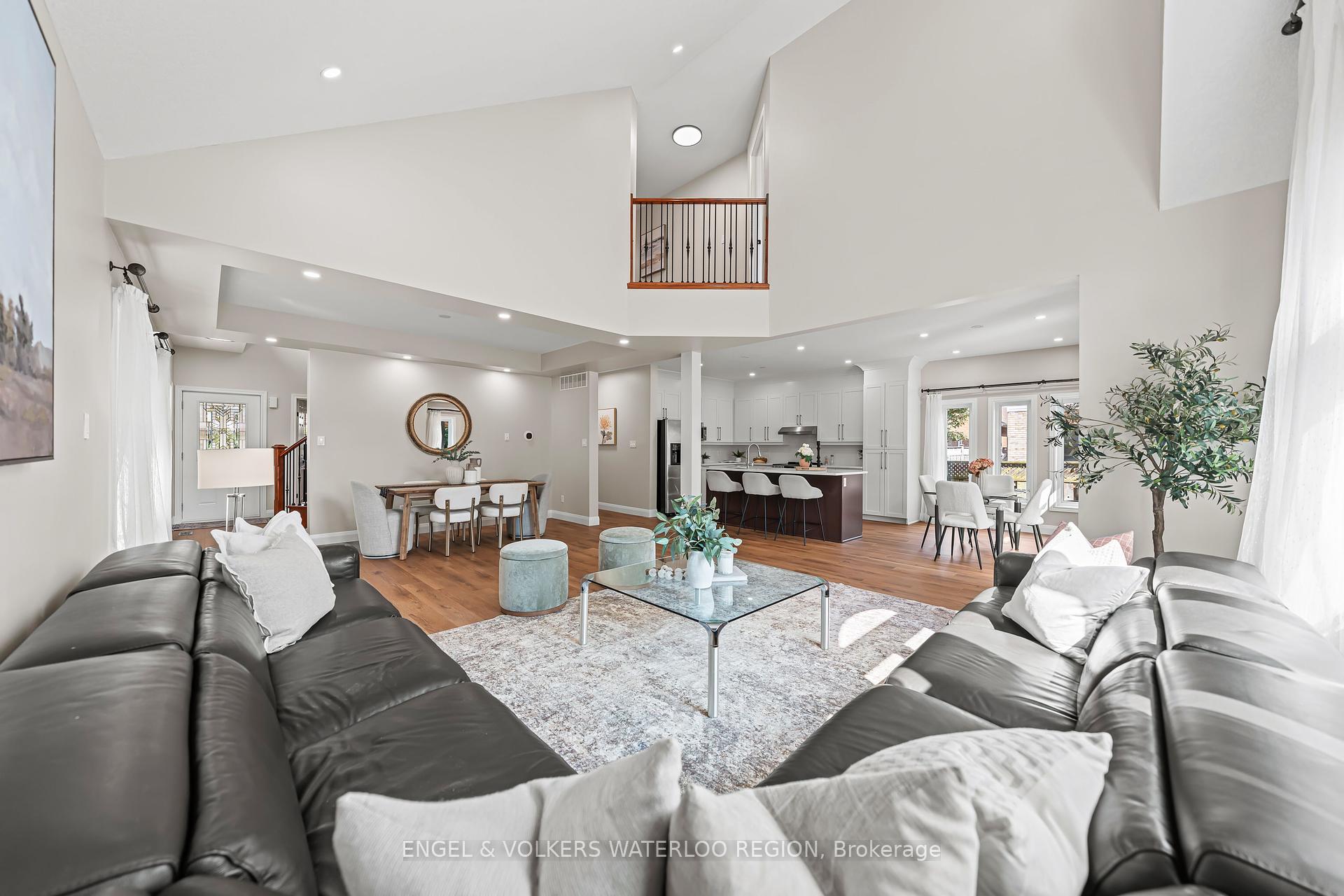 Welcome to a residence where elegance meets modern living. This 4-bedroom, 3-bathroom home offers nearly 2,500 sq. ft. of thoughtfully designed space, enriched with soaring ceilings, refined finishes, and an abundance of natural light.The grand main floor sets the tone with 9-foot ceilings, a private office, and a breathtaking 18-foot family room that creates an airy, dramatic centrepiece for gatherings. The kitchen has been reimagined in 2025 with sleek quartz countertops, designer cabinetry, and premium appliancesincluding a brand-new stovemaking it as functional as it is stunning. A sunlit dinnete area opens effortlessly to the newly re-stained party sized deck, perfect for seamless indoor-outdoor entertaining. Upstairs, four generously sized bedrooms provide serene retreats. The primary suite is complemented by hardwood floors and a spa-inspired bath, while additional bathrooms have been upgraded with quartz counters and contemporary fixtures. Every detail has been considered: no carpet throughout, with rich hardwood on the upper floor and luxury vinyl plank on the main, complemented by crisp new baseboards and fresh designer paint. Modern comforts extend throughout: Generating income Solar panels (2018, fully owned in 2023) for sustainable energy savings through 2038, Roof replaced in 2022 for peace of mind, Furnace and A/C serviced regularly, Water softener and reverse osmosis system (owned), Updated powder room and laundry with gas dryer, Rough-in for an additional bath in the spacious unfinished basement, offering limitless potential. This is more than a homeits a statement of style and sophistication, move-in ready and meticulously cared for. Every upgrade has been thoughtfully executed, creating a residence where luxury and practicality live in harmony.Perfectly situated with easy access to Highways 7/8 and 401, and close proximity to top-rated schools, parks, shopping centers, the upcoming new library, and essential amenities. Just Move-in and enjoy!