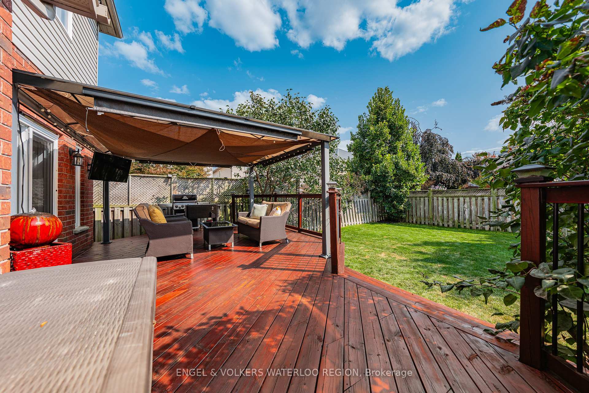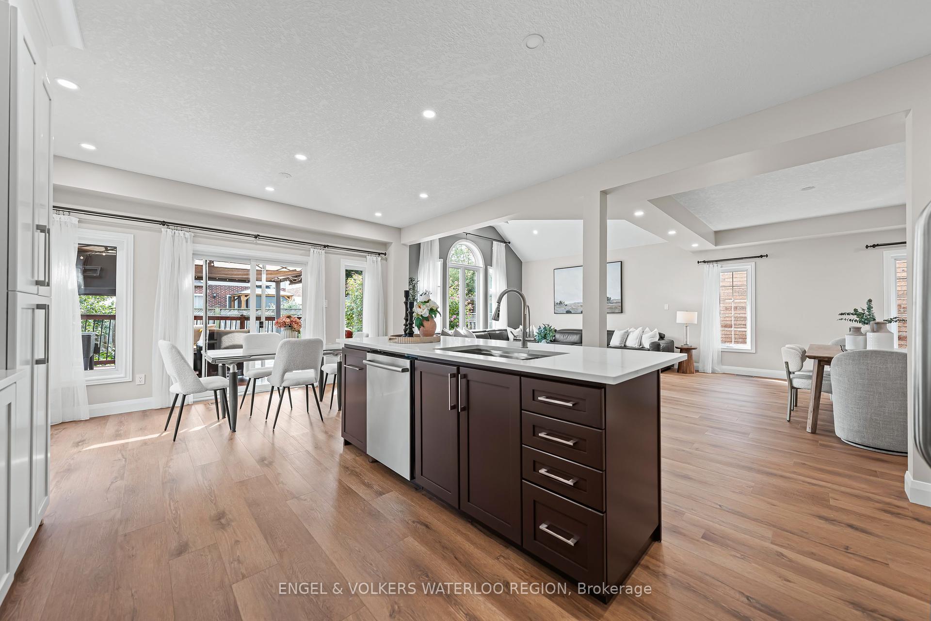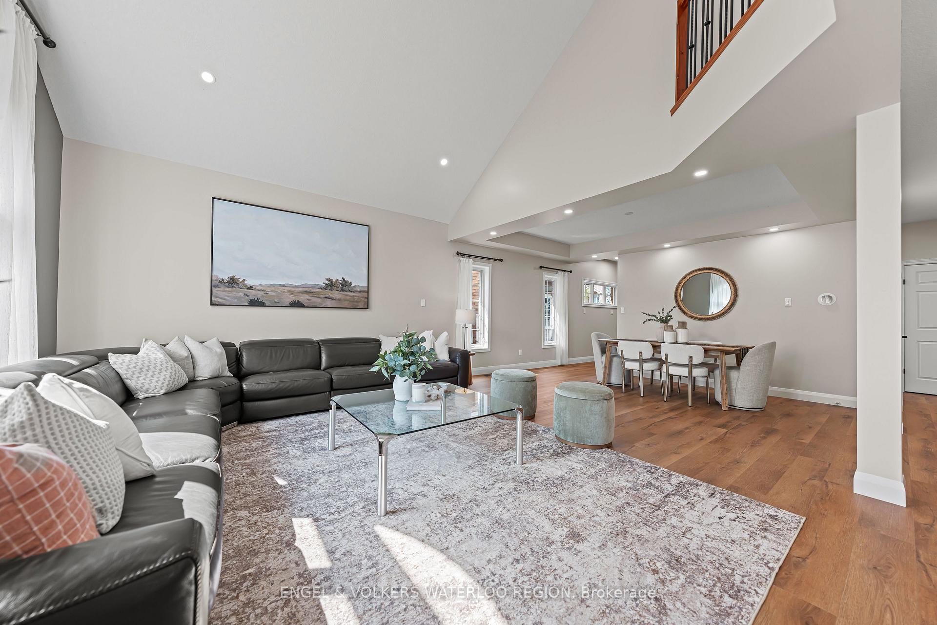 Welcome to a residence where elegance meets modern living. This 4-bedroom, 3-bathroom home offers nearly 2,500 sq. ft. of thoughtfully designed space, enriched with soaring ceilings, refined finishes, and an abundance of natural light.The grand main floor sets the tone with 9-foot ceilings, a private office, and a breathtaking 18-foot family room that creates an airy, dramatic centrepiece for gatherings. The kitchen has been reimagined in 2025 with sleek quartz countertops, designer cabinetry, and premium appliancesincluding a brand-new stovemaking it as functional as it is stunning. A sunlit dinnete area opens effortlessly to the newly re-stained party sized deck, perfect for seamless indoor-outdoor entertaining. Upstairs, four generously sized bedrooms provide serene retreats. The primary suite is complemented by hardwood floors and a spa-inspired bath, while additional bathrooms have been upgraded with quartz counters and contemporary fixtures. Every detail has been considered: no carpet throughout, with rich hardwood on the upper floor and luxury vinyl plank on the main, complemented by crisp new baseboards and fresh designer paint. Modern comforts extend throughout: Generating income Solar panels (2018, fully owned in 2023) for sustainable energy savings through 2038, Roof replaced in 2022 for peace of mind, Furnace and A/C serviced regularly, Water softener and reverse osmosis system (owned), Updated powder room and laundry with gas dryer, Rough-in for an additional bath in the spacious unfinished basement, offering limitless potential. This is more than a homeits a statement of style and sophistication, move-in ready and meticulously cared for. Every upgrade has been thoughtfully executed, creating a residence where luxury and practicality live in harmony.Perfectly situated with easy access to Highways 7/8 and 401, and close proximity to top-rated schools, parks, shopping centers, the upcoming new library, and essential amenities. Just Move-in and enjoy!