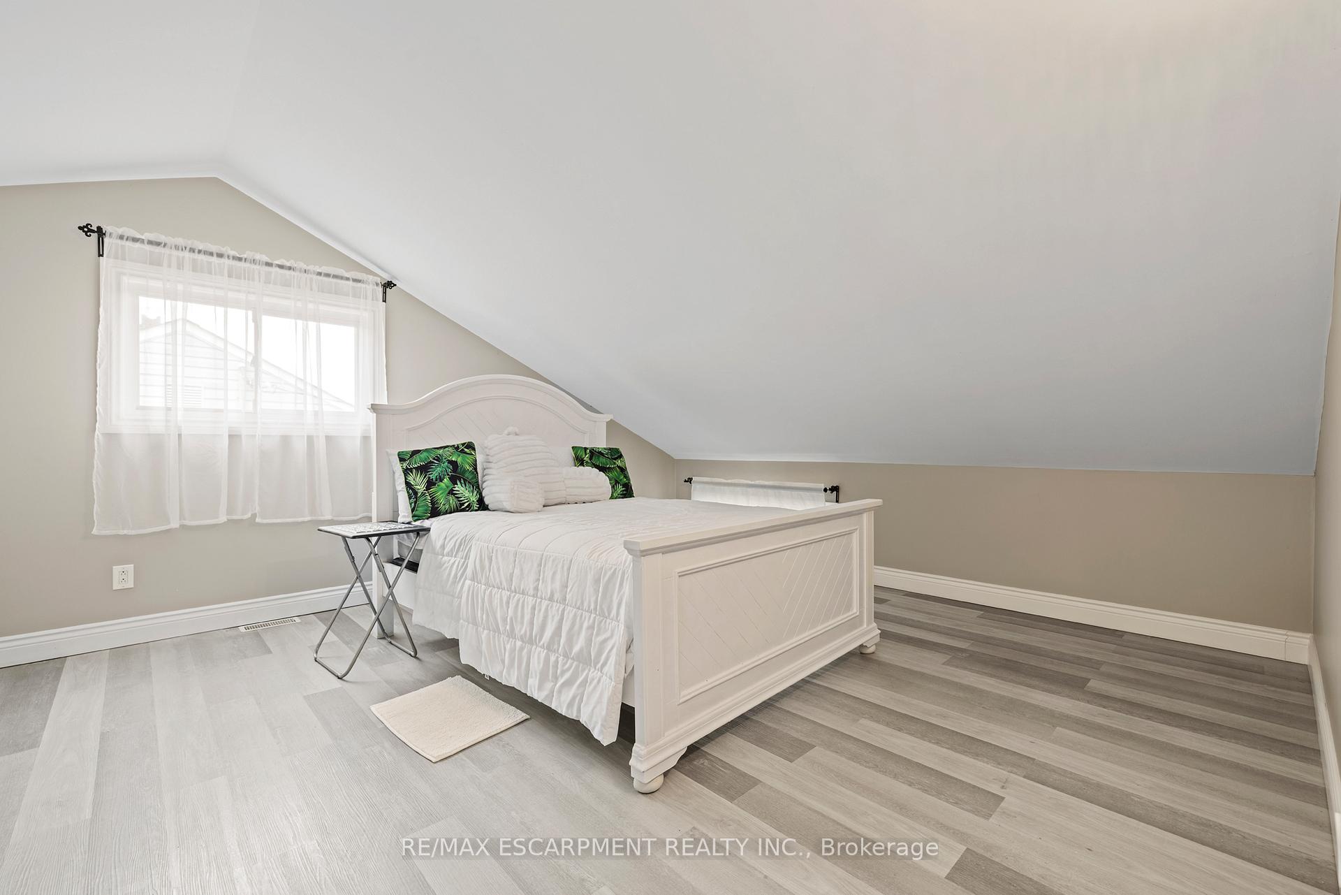 Welcome to this well-maintained 2-storey, 3-bedroom, 2-bathroom home. An excellent opportunity for first-time buyers or growing families. The main level features two bedrooms and a bright, open-concept living and dining area, ideal for everyday living and entertaining. The upper level offers a private primary suite complete with an ensuite bathroom, along with an additional versatile space that can be used as a home office, reading nook, playroom, or den. Cathedral ceilings enhance the sense of space and natural light throughout the home. Recent updates include a newer roof (2022) and a finished stucco exterior. The double driveway provides parking for up to four vehicles. Enjoy a fully fenced backyard with a built-in shed, offering both storage and a great setting for outdoor gatherings. Conveniently located just steps from Centre on Barton and minutes to Ottawa Street’s shops, cafés, and restaurants. Transit, highways, hospitals, and other key amenities are all nearby. A move-in ready home offering comfort, functionality, and an excellent location.