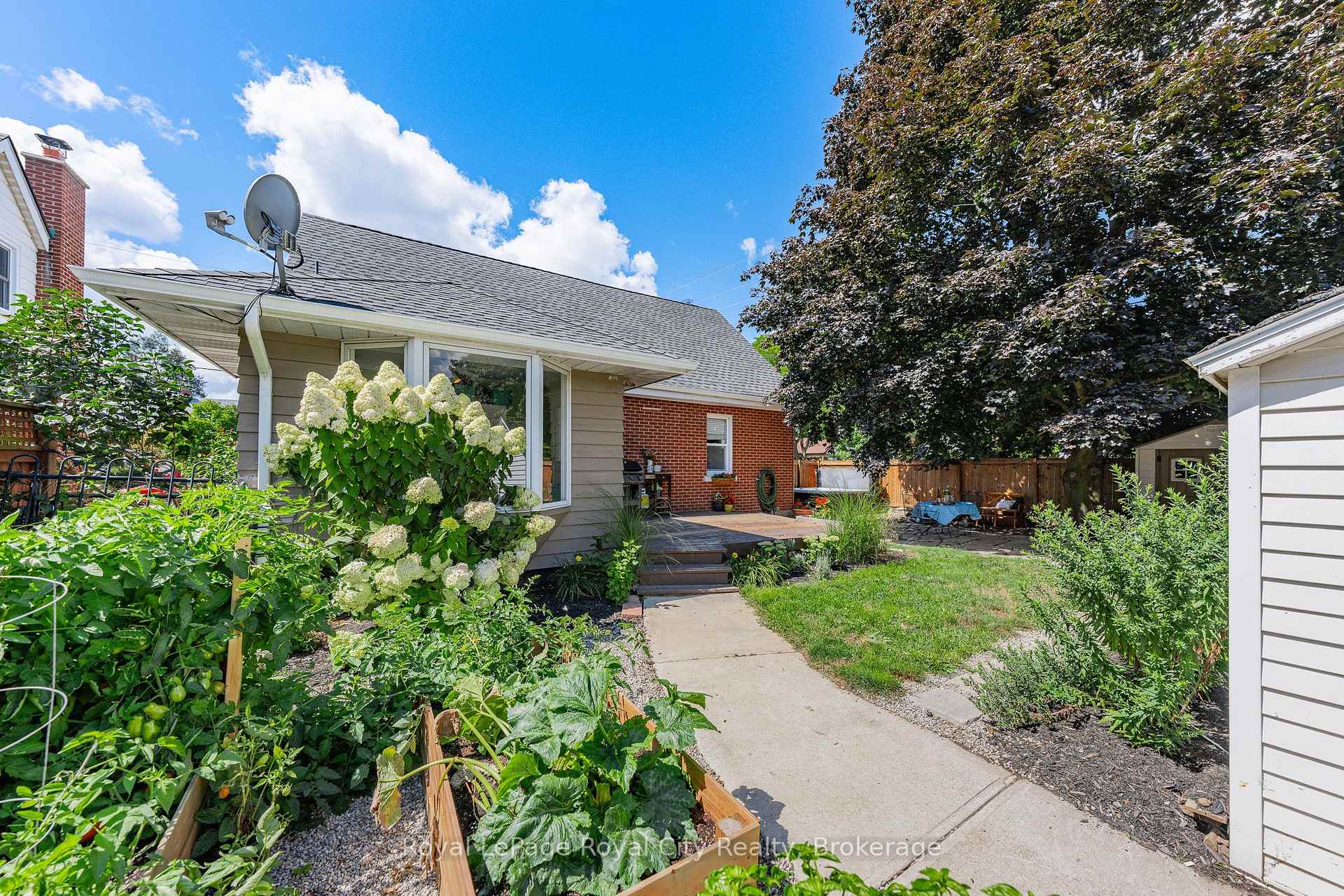 This home exudes charm and character from the inside out. A rare to find a 4+1 bedroom home! Two full bathrooms, bright living room with wood-burning fireplace, large eat-in kitchen, sun-filled mud room that could be used as a family room, and partially finished basement on a 50 x 100 foot corner lot. Big picture windows and cute touches throughout. Main floor bedroom is currently used as a home office with built-in desk and shelving. Many updates include flooring, paint, fencing, furnace and heat pump/air-conditioning, eaves and downspouts, and insulation in 2 of the upper bedrooms. The yard has an expansive deck, flagstone walkway, hot tub, vegetable gardens and additional sitting area under a partially enclosed gazebo. Garage and double wide private driveway. A lovely tree-lined residential neighbourhood situated within walking distance to schools, parks and trails.