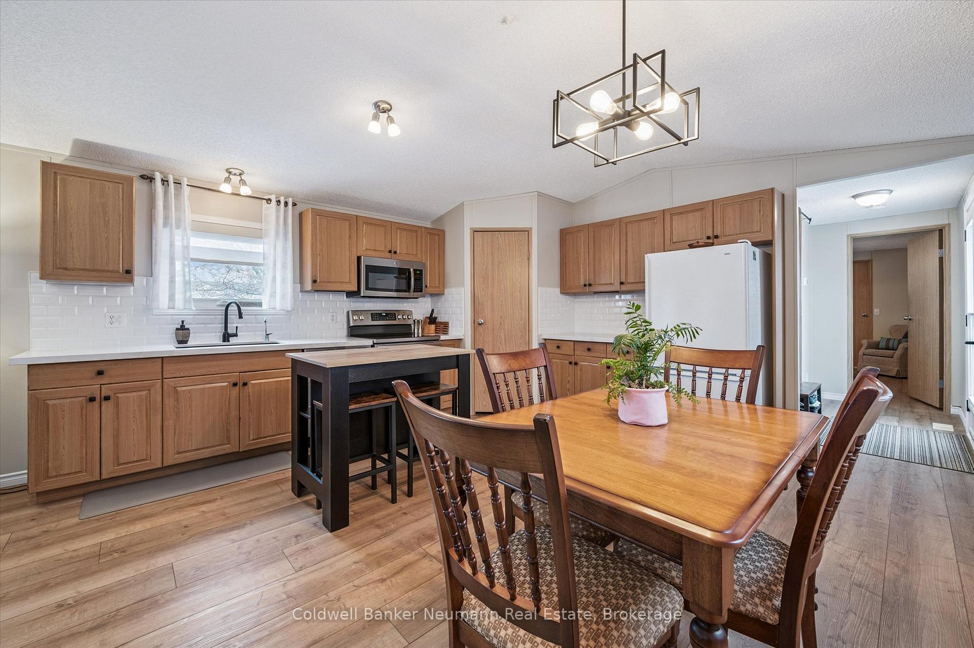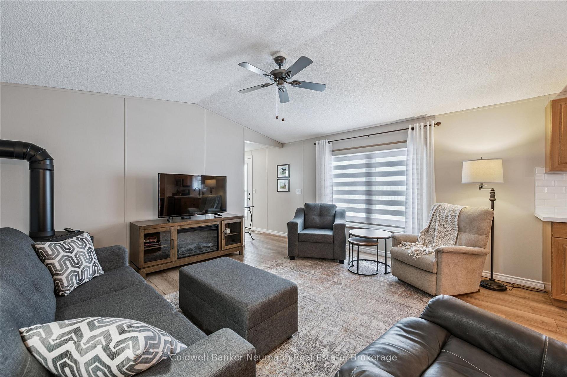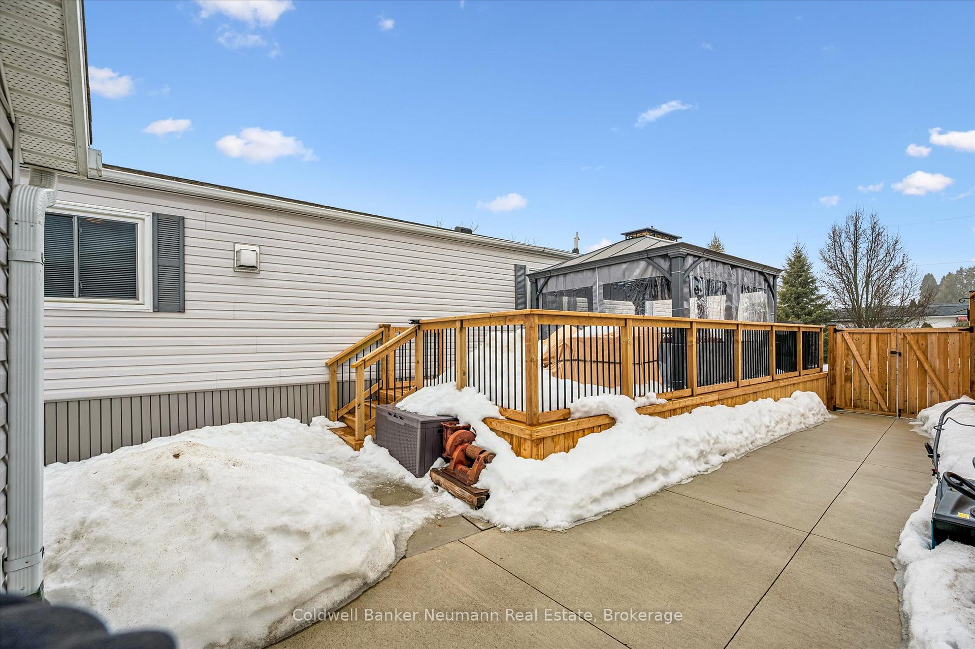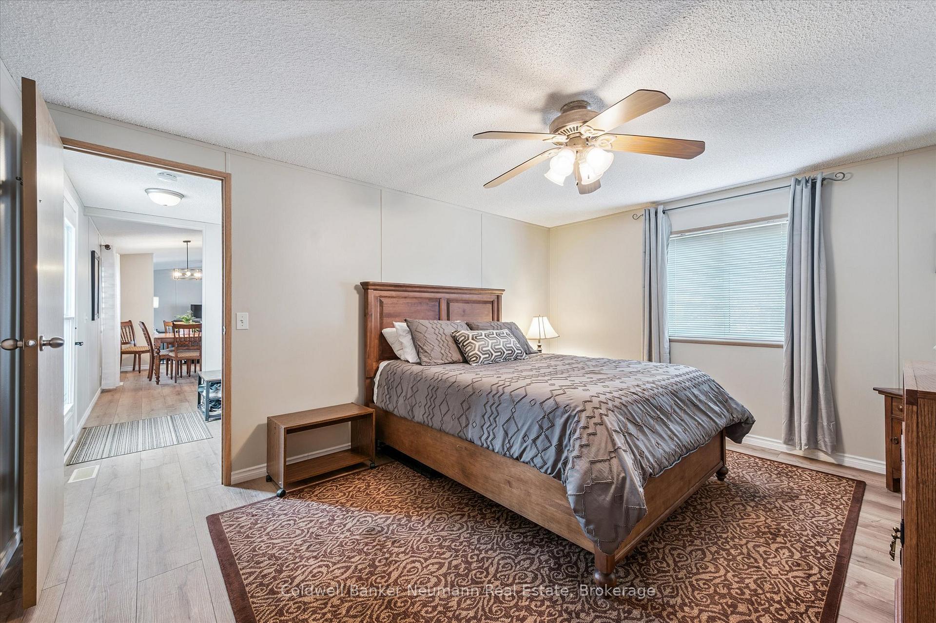 Welcome to this charming home in the sought after Mini Lakes community, ideally located on a desirable corner lot and just minutes from Highway 401, making commuting easy.This well maintained home offers 3 bedrooms and numerous updates have been completed in recent years, including new skirting/apron around the house (2020), all new windows (2021), and new LVP flooring throughout (2021). Additional upgrades include a new freestanding gas fireplace (2022), new roof shingles (2023), a new concrete driveway and walkway (2024), a new fenced backyard (2024), and a beautifully updated kitchen with quartz countertop, undermount sink, faucet, and tile backsplash (2024). The home also features new front and back doors (2025) and a new deck (2025). An insulated shed/workshop with hydro provides great space for hobbies, storage, or projects.Step outside to enjoy the outdoor patio with gazebo, extending your living space during the warmer months and creating a great space for relaxing or entertaining. The property also offers parking for up to 3 vehicles.Mini Lakes residents enjoy a vibrant lifestyle with excellent amenities including spring fed lakes and canals, a heated outdoor pool, community gardens, and scenic walking trails. Residents can also take part in activities such as fishing, swimming, bocce, darts, and card nights, making it easy to stay active and connect with neighbours.Enjoy peaceful community living with convenient access to Highway 401 and nearby amenities.
