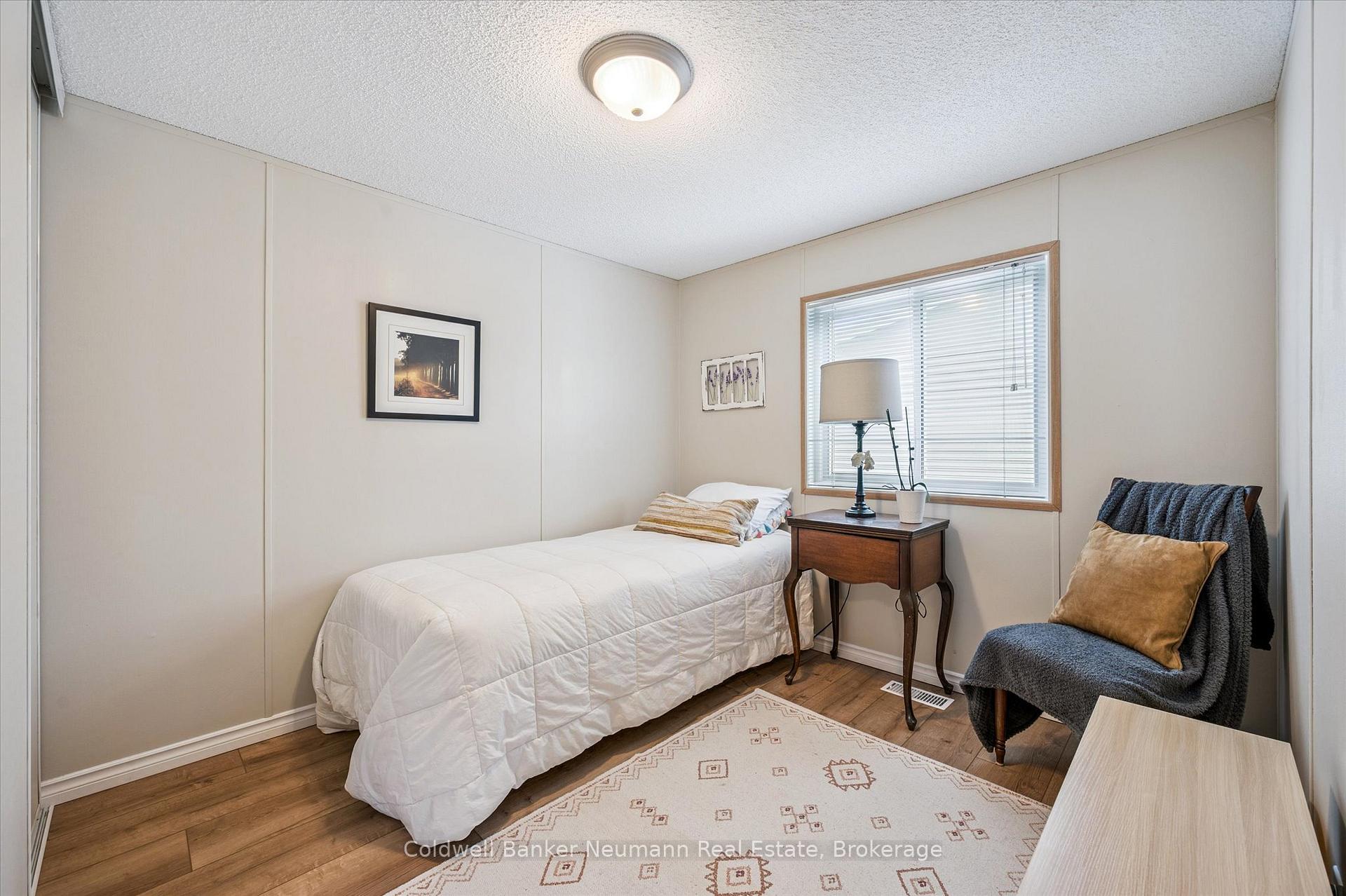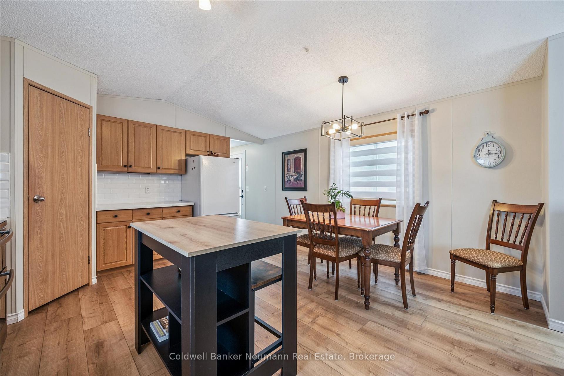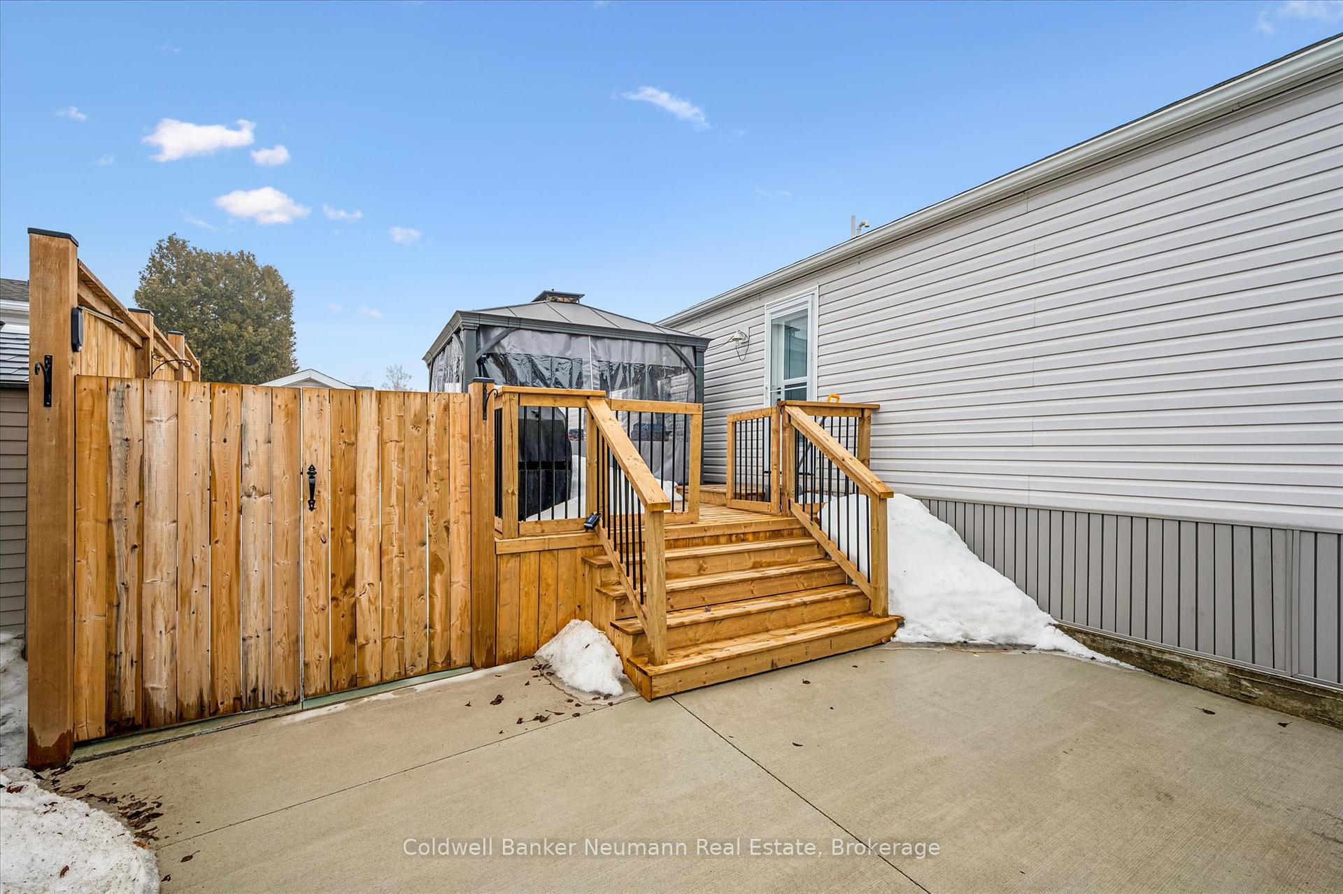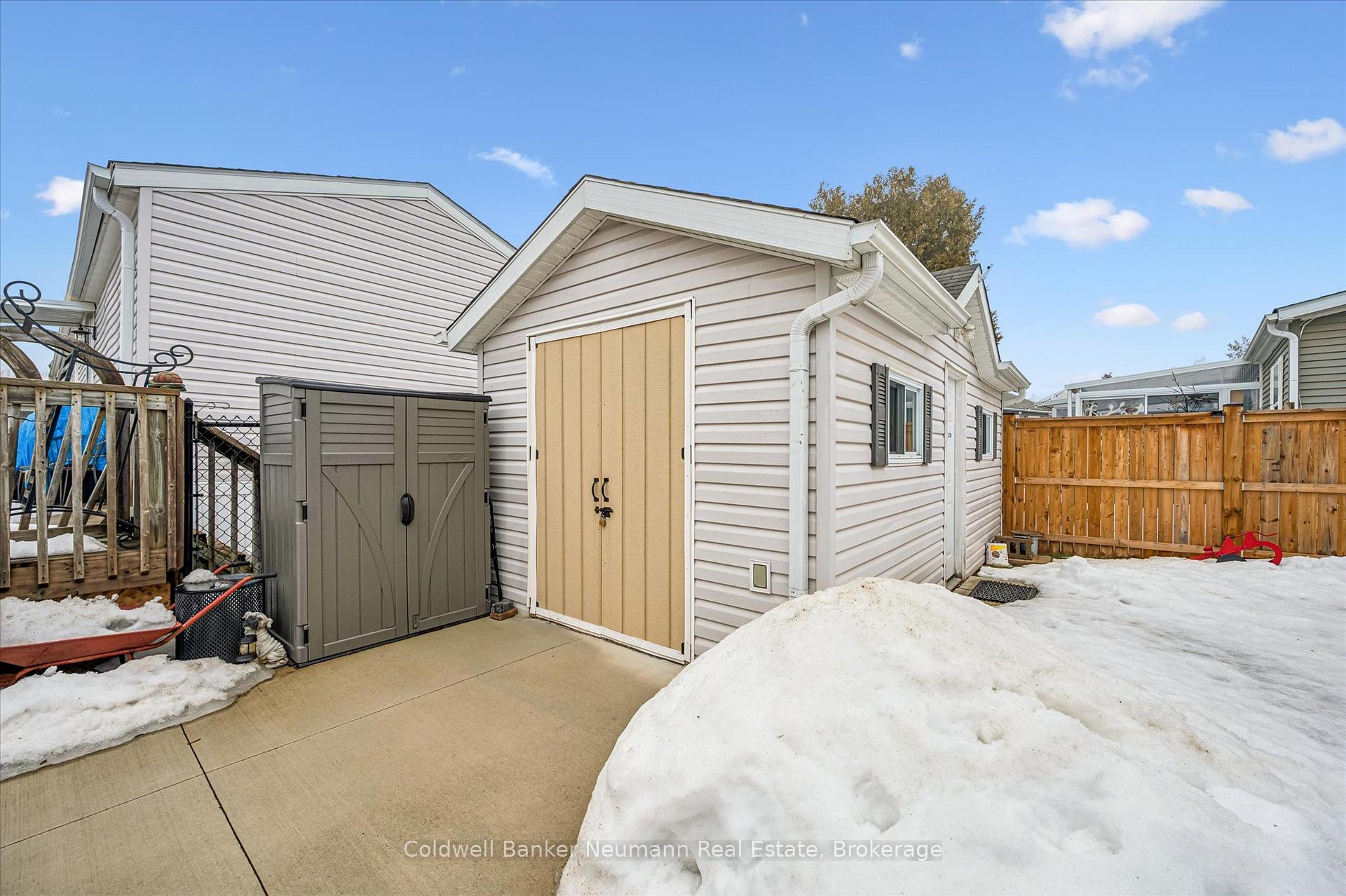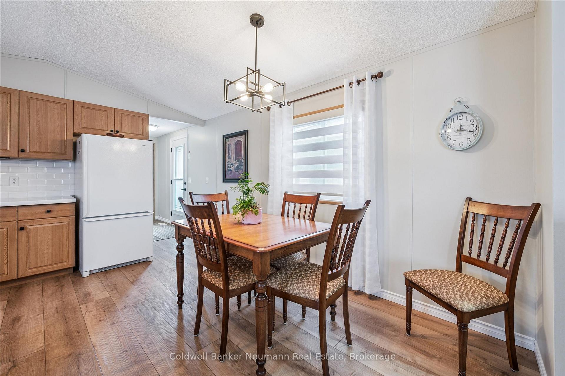 Welcome to this charming home in the sought after Mini Lakes community, ideally located on a desirable corner lot and just minutes from Highway 401, making commuting easy.This well maintained home offers 3 bedrooms and numerous updates have been completed in recent years, including new skirting/apron around the house (2020), all new windows (2021), and new LVP flooring throughout (2021). Additional upgrades include a new freestanding gas fireplace (2022), new roof shingles (2023), a new concrete driveway and walkway (2024), a new fenced backyard (2024), and a beautifully updated kitchen with quartz countertop, undermount sink, faucet, and tile backsplash (2024). The home also features new front and back doors (2025) and a new deck (2025). An insulated shed/workshop with hydro provides great space for hobbies, storage, or projects.Step outside to enjoy the outdoor patio with gazebo, extending your living space during the warmer months and creating a great space for relaxing or entertaining. The property also offers parking for up to 3 vehicles.Mini Lakes residents enjoy a vibrant lifestyle with excellent amenities including spring fed lakes and canals, a heated outdoor pool, community gardens, and scenic walking trails. Residents can also take part in activities such as fishing, swimming, bocce, darts, and card nights, making it easy to stay active and connect with neighbours.Enjoy peaceful community living with convenient access to Highway 401 and nearby amenities.