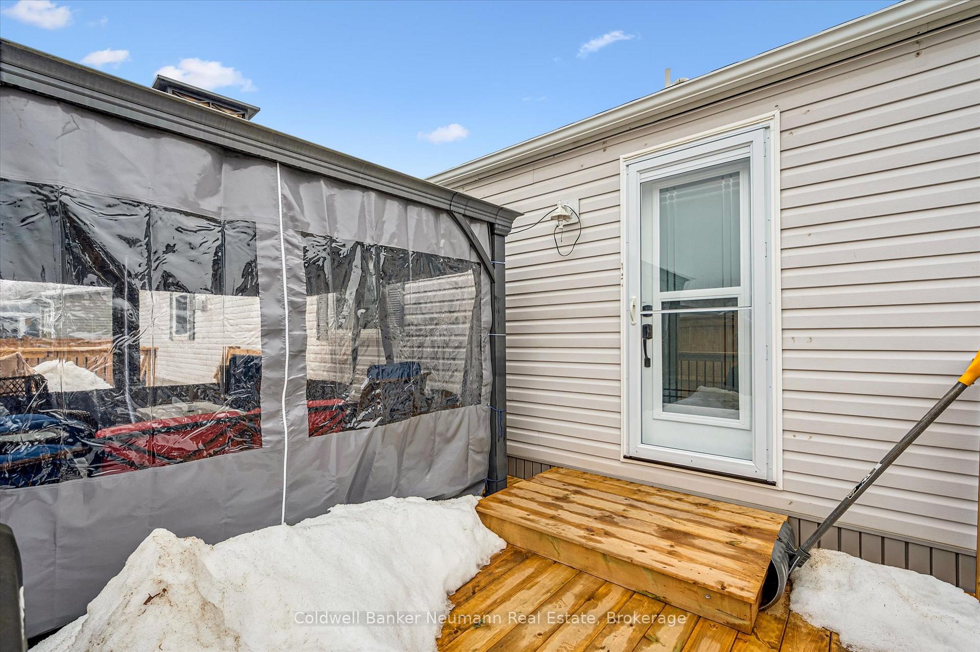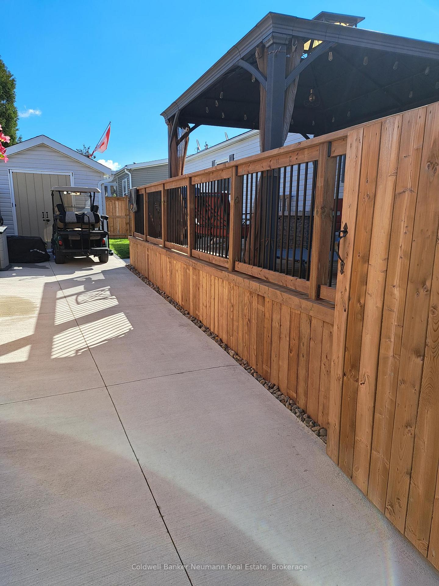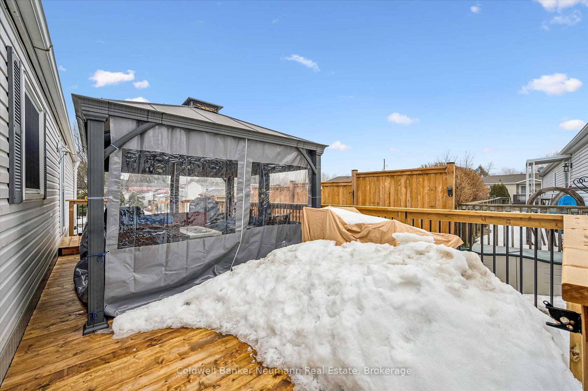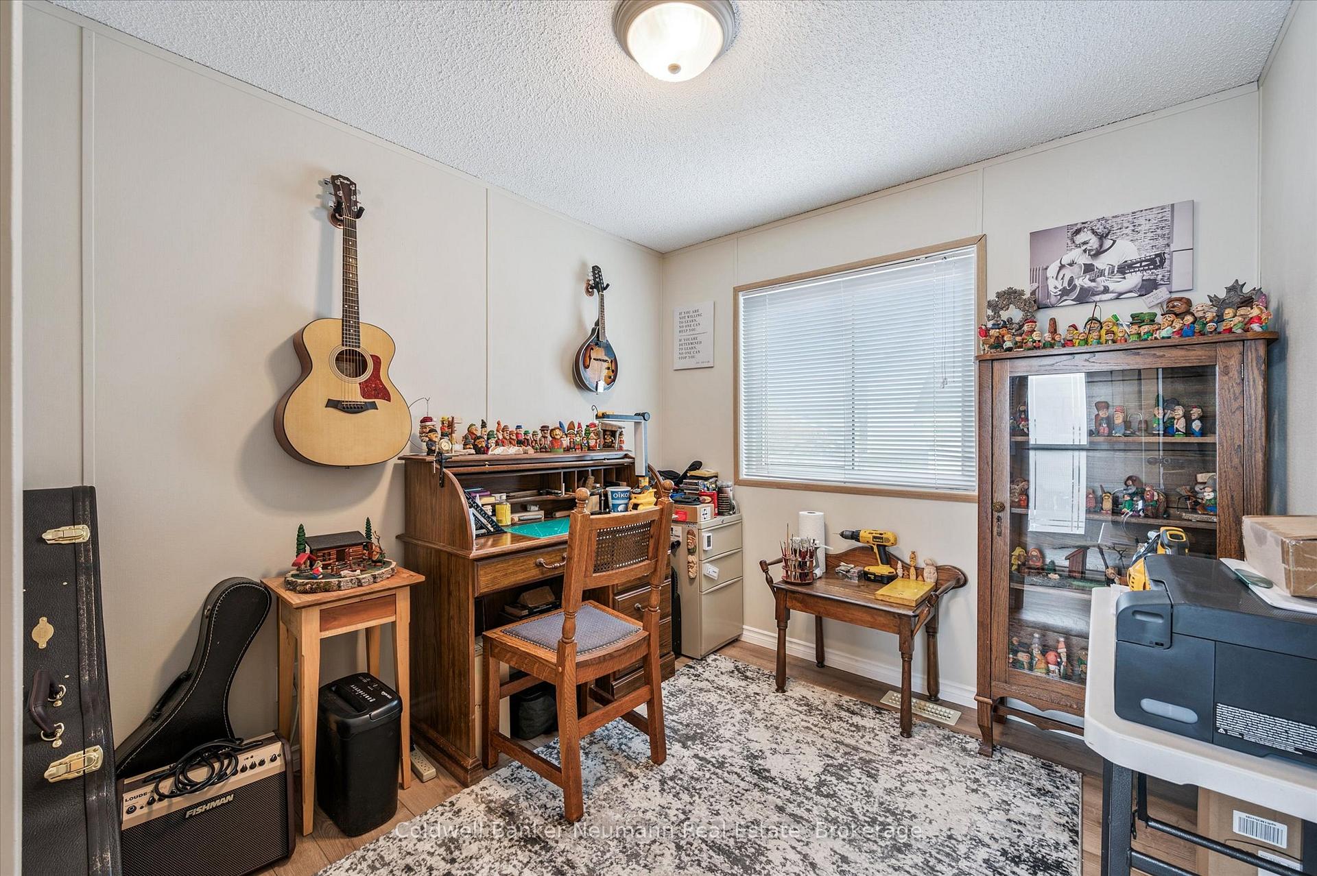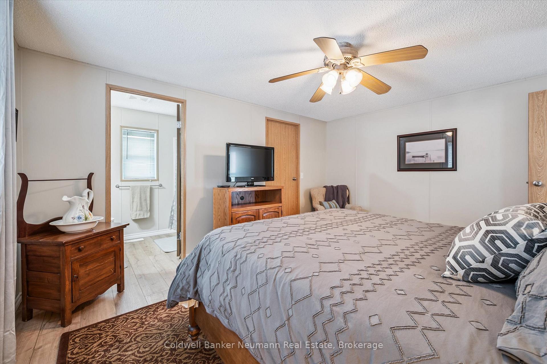 Welcome to this charming home in the sought after Mini Lakes community, ideally located on a desirable corner lot and just minutes from Highway 401, making commuting easy.This well maintained home offers 3 bedrooms and numerous updates have been completed in recent years, including new skirting/apron around the house (2020), all new windows (2021), and new LVP flooring throughout (2021). Additional upgrades include a new freestanding gas fireplace (2022), new roof shingles (2023), a new concrete driveway and walkway (2024), a new fenced backyard (2024), and a beautifully updated kitchen with quartz countertop, undermount sink, faucet, and tile backsplash (2024). The home also features new front and back doors (2025) and a new deck (2025). An insulated shed/workshop with hydro provides great space for hobbies, storage, or projects.Step outside to enjoy the outdoor patio with gazebo, extending your living space during the warmer months and creating a great space for relaxing or entertaining. The property also offers parking for up to 3 vehicles.Mini Lakes residents enjoy a vibrant lifestyle with excellent amenities including spring fed lakes and canals, a heated outdoor pool, community gardens, and scenic walking trails. Residents can also take part in activities such as fishing, swimming, bocce, darts, and card nights, making it easy to stay active and connect with neighbours.Enjoy peaceful community living with convenient access to Highway 401 and nearby amenities.
