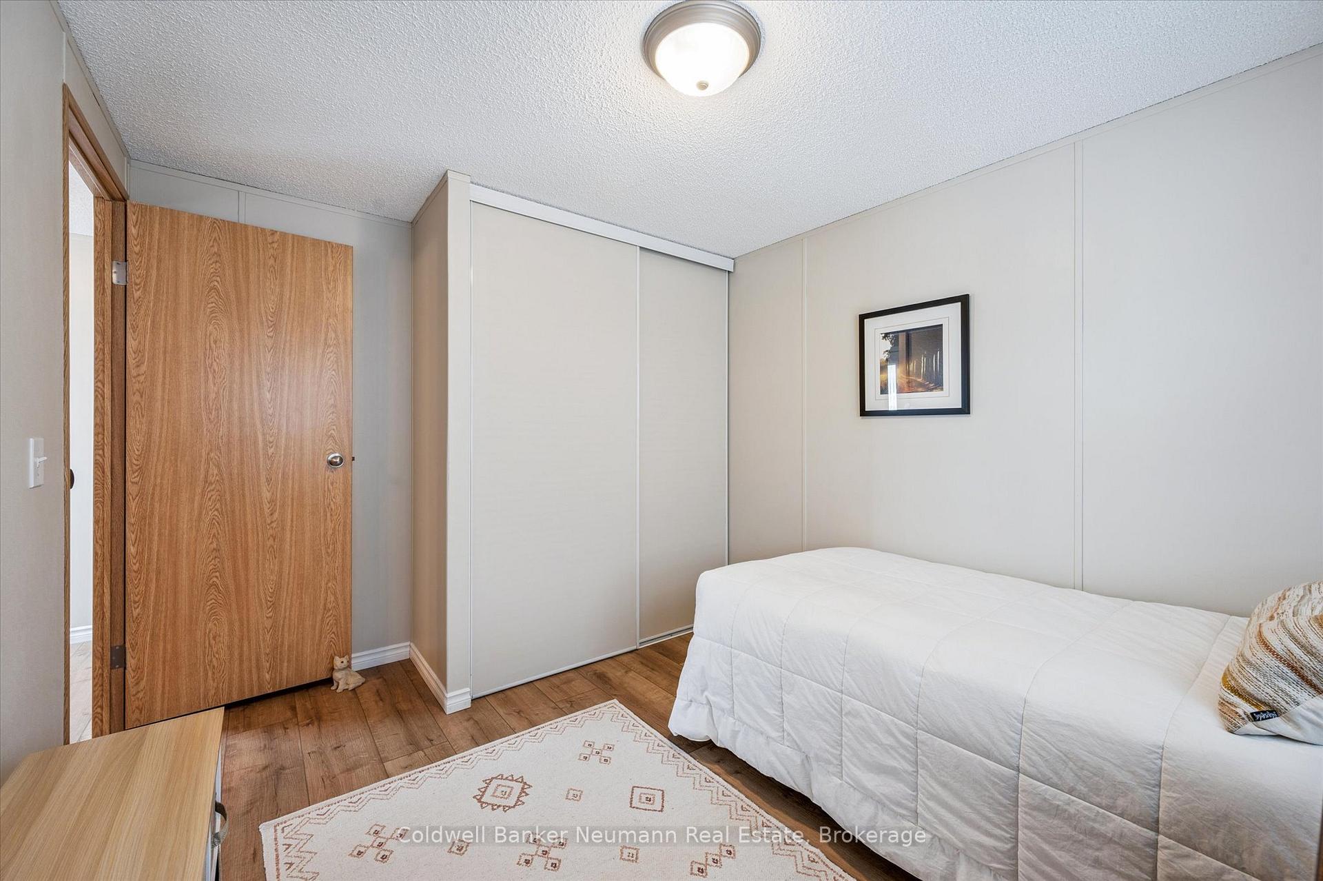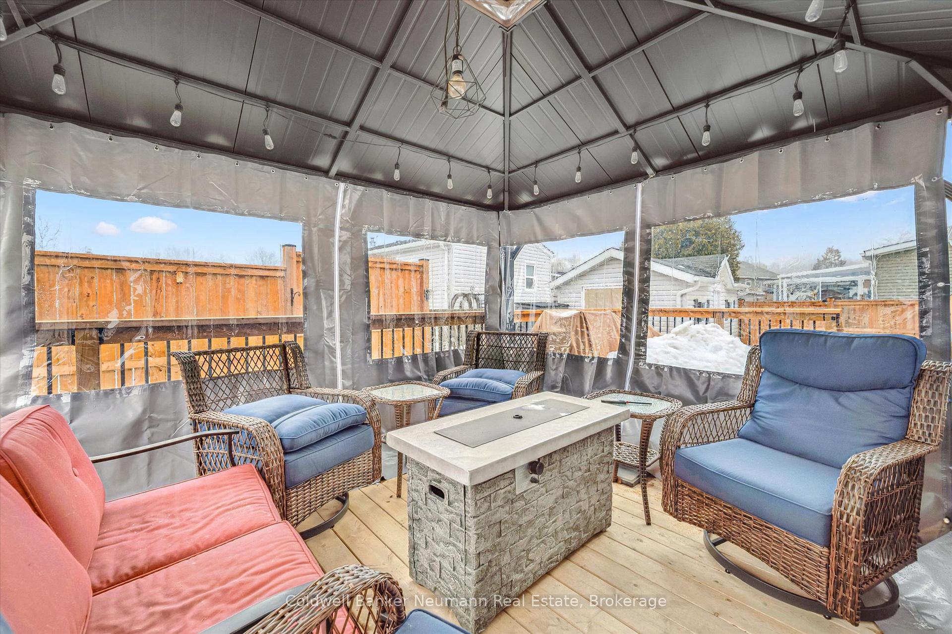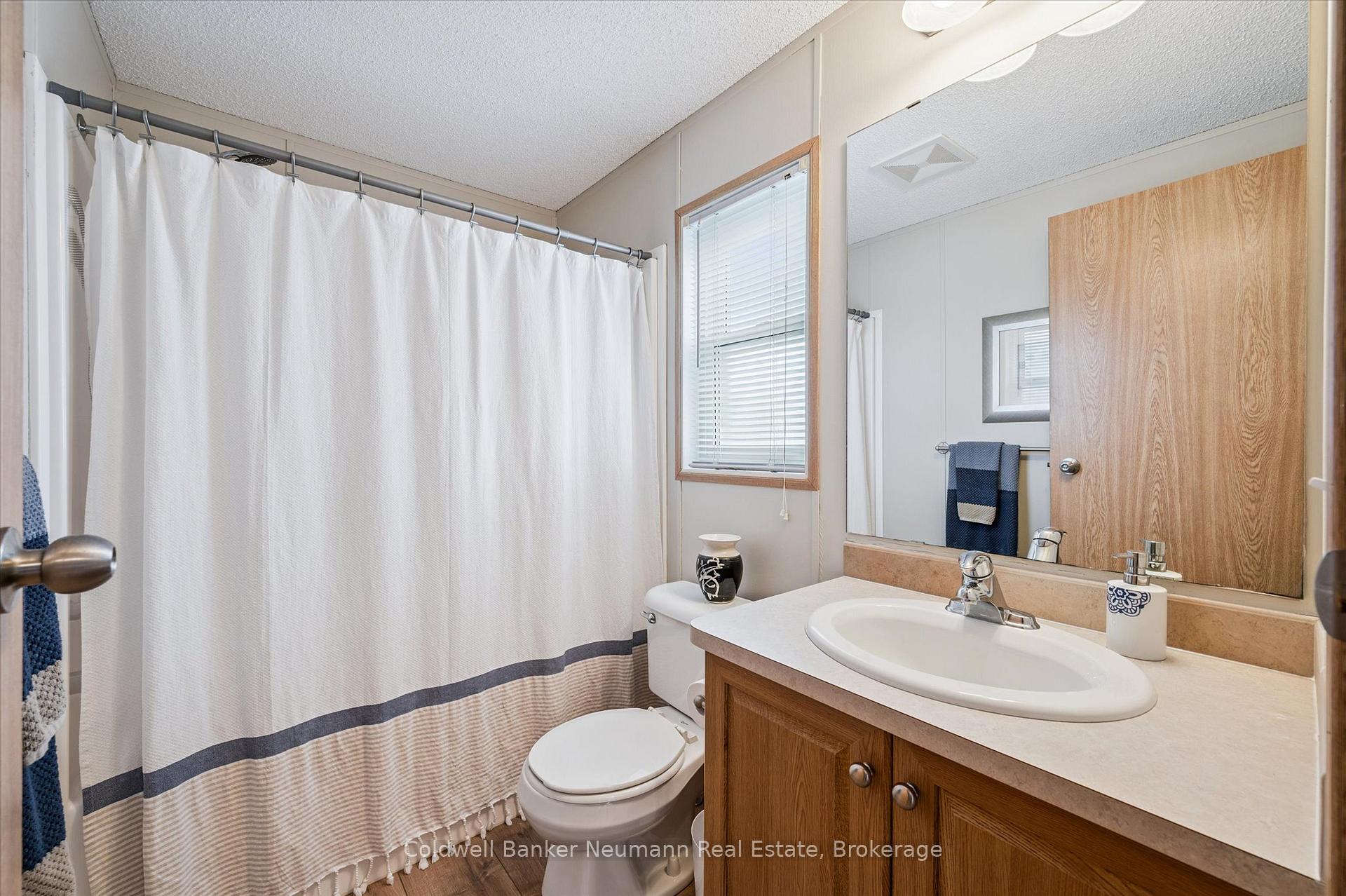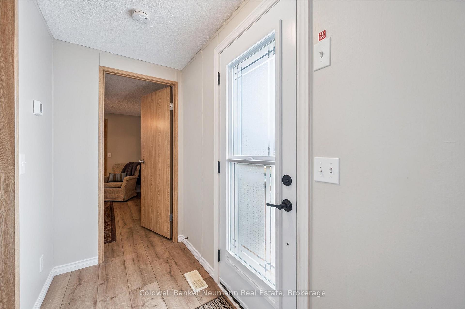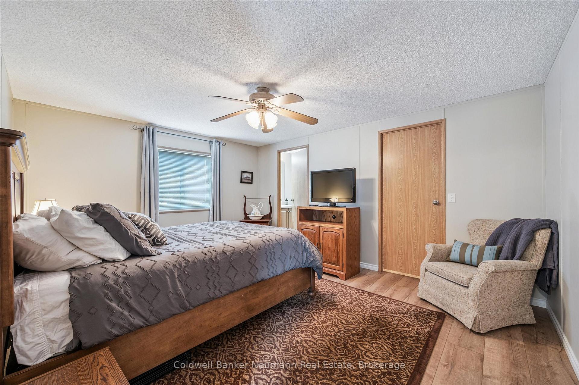 Welcome to this charming home in the sought after Mini Lakes community, ideally located on a desirable corner lot and just minutes from Highway 401, making commuting easy.This well maintained home offers 3 bedrooms and numerous updates have been completed in recent years, including new skirting/apron around the house (2020), all new windows (2021), and new LVP flooring throughout (2021). Additional upgrades include a new freestanding gas fireplace (2022), new roof shingles (2023), a new concrete driveway and walkway (2024), a new fenced backyard (2024), and a beautifully updated kitchen with quartz countertop, undermount sink, faucet, and tile backsplash (2024). The home also features new front and back doors (2025) and a new deck (2025). An insulated shed/workshop with hydro provides great space for hobbies, storage, or projects.Step outside to enjoy the outdoor patio with gazebo, extending your living space during the warmer months and creating a great space for relaxing or entertaining. The property also offers parking for up to 3 vehicles.Mini Lakes residents enjoy a vibrant lifestyle with excellent amenities including spring fed lakes and canals, a heated outdoor pool, community gardens, and scenic walking trails. Residents can also take part in activities such as fishing, swimming, bocce, darts, and card nights, making it easy to stay active and connect with neighbours.Enjoy peaceful community living with convenient access to Highway 401 and nearby amenities.