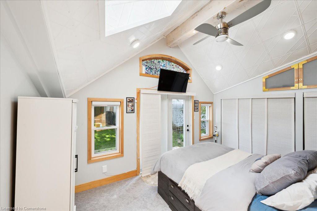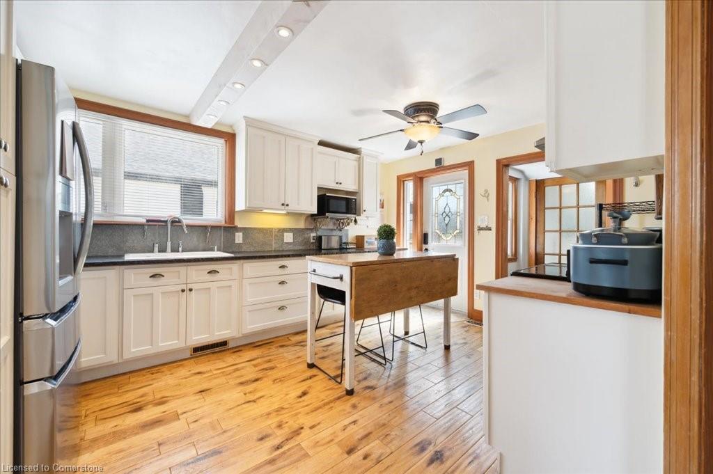 15 Jarvis St is a fantastic 3-bdrm bungalow offering bright & beautifully remodeled space nestled on quiet dead-end street in the heart of Cambridge! This is the perfect home for downsizers, first-time buyers, young families or investors. As you approach you’ll immediately notice the newer metal roof (approx. 2021) & private concrete driveway. Step into spacious living room where solid hardwood floors, crown moulding & 3 large windows invite natural light to fill the space—ideal spot to relax & unwind. Open-concept kitchen is truly the heart of the home featuring leathered granite counters & backsplash, high-end white cabinetry W/dedicated pantry cupboard, S/S appliances & rustic wood beam W/ample pot lighting. 2 main-floor bdrms including standout primary W/striking wood feature wall, vaulted ceiling with skylight, full wall of closets & garden doors leading directly to the backyard. Completing this level is 4pc bath W/deep soaker tub, separate shower & modern vanity. Downstairs the fully finished basement provides add’l living space W/welcoming rec room & 3rd bdrm. Step outside to fully fenced backyard that’s made for enjoying summer evenings complete W/brand new 12 X 10 patio (2024) & large shed W/hydro—perfect for hobbyists or storage.
