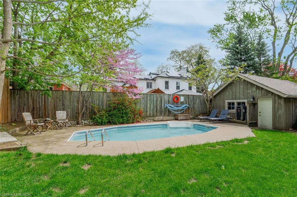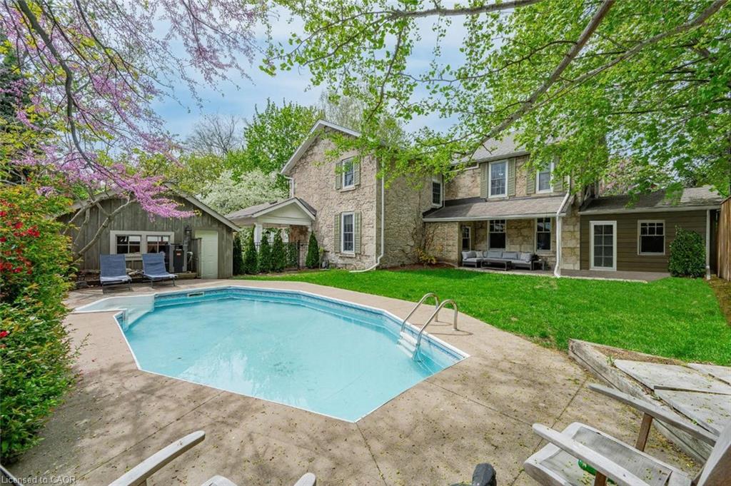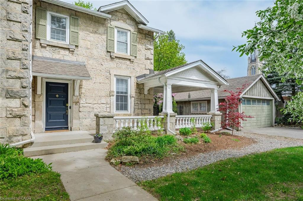 15 Liverpool is a timeless 3226sqft home that blends rich history W/thoughtful renovations nestled on one of Guelph’s most beloved streets just steps from vibrant downtown! Beyond its striking curb appeal & original limestone exterior this property offers a backyard oasis W/heated inground pool, perfect place to unwind & entertain! Built in 1850 & expanded over the decades, this 5-bdrm home retains key elements of its historic charm. 2 original Italian marble fireplaces imported in 1850s remain beautifully preserved-testament to the homes craftsmanship & legacy. Yet at every turn it’s clear this home has been updated for modern living. Custom kitchen is designed W/entertaining & everyday life in mind W/quartz counters, Paragon cabinetry, high-end appliances & radiant in-floor heating. Off the kitchen is bright mudroom, 2pc bath & laundry also W/heated floors. Formal living & dining rooms are elegant & inviting W/hardwood, soaring ceilings, high baseboards & oversized windows. Upstairs, 5 spacious bdrms provide room to grow, host or work from home. Large windows brighten every room while thoughtfully added closets offer rare storage for a home of this era. One bdrm has custom B/I shelving perfect for book lovers or collectors. 2 full baths offer timeless design W/beautifully tiled main bath W/glass shower & soaker tub. Fenced backyard oasis W/heated in-ground pool recently upgraded W/new pump, sand filter, heater & custom safety cover, turn-key for summer enjoyment! Detached 2-car garage at end of long driveway includes storage & EV-ready. Major updates have been completed: new hydro line, updated insulation, full drainage system, multi-zone heating/cooling & high-efficiency boiler. 2-min walk from downtown Guelph W/restaurants, shops, entertainment & GO Station. This home has been deeply cared for, one that honours its roots while embracing rhythm of modern family life. You’re not just buying a house you’re joining a story that’s been unfolding for more than 170yrs