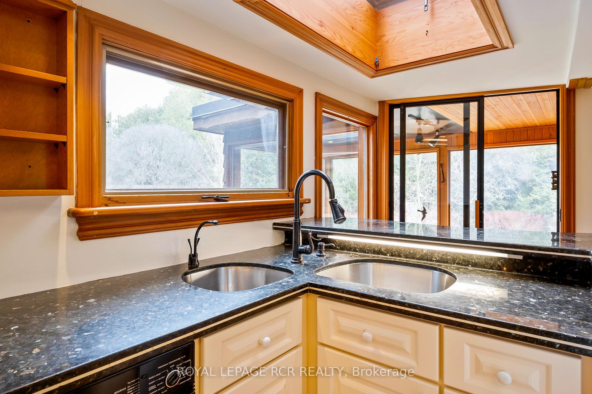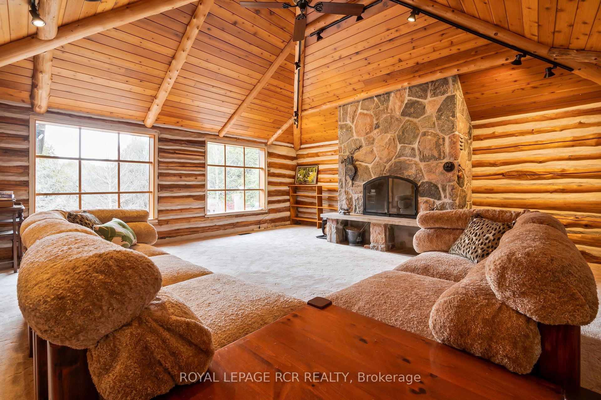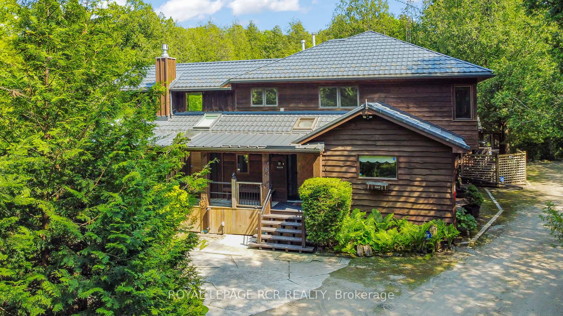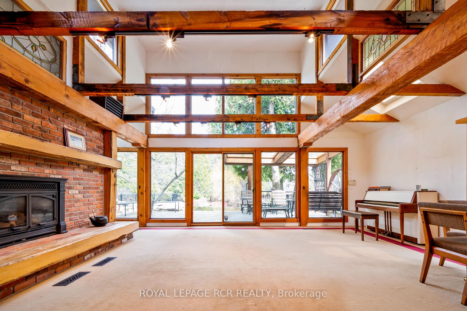 Tucked away on a secluded road, 15 River Bluff Path offers an extraordinary sanctuary blending natural beauty, creative energy, and quiet seclusion. Set on 13 acres with over 750 feet along the Eramosa River, this property presents a once-in-a-lifetime opportunity, with many unique features grandfathered in by the GRCA. The winding drive leads through a forest of mature trees to an almost otherworldly scene where a breathtaking infinity pool appears to spill into the river, surrounded by tranquil vistas and lush vegetation. Enjoy the scenery from the tiered deck, relax in the indoor hot tub, or watch wildlife such as deer, herons, and turtles. The private trail system leads to whimsical outbuildings, including a screened wooden pergola, a Japanese Maple Zen garden, and an outdoor privy. Once owned by a renowned Canadian naturalist, the property brims with creativity and inspiration. Inside, the great room captivates with soaring ceilings, stained glass accents, rustic wood beams, and a dramatic gas fireplace. A wall of windows connects the indoors to the breathtaking river view. The adjoining dining nook is perfect for gatherings, while the spacious kitchen features ample storage, a skylight, and an iconic AGA gas cooker. The main floor includes a vaulted-ceiling bedroom, a dressing/hobby room, two three-piece bathrooms (one wheelchair accessible), and a large laundry room. Upstairs, a loft-style theatre room provides an ideal space for entertainment, and two additional bedrooms share an impressive four-piece bathroom with heated floors and a spacious walk-in glass shower. With a two-car garage and an intercom system throughout, this retreat guarantees comfort and connectivity. Despite its privacy, it’s just minutes from Rockwood’s amenities and easily accessible to Guelph, Milton, and Pearson Airport. 15 River Bluff Path is more than just a home – it’s a legacy property rooted in nature and creativity, where every moment feels extraordinary.