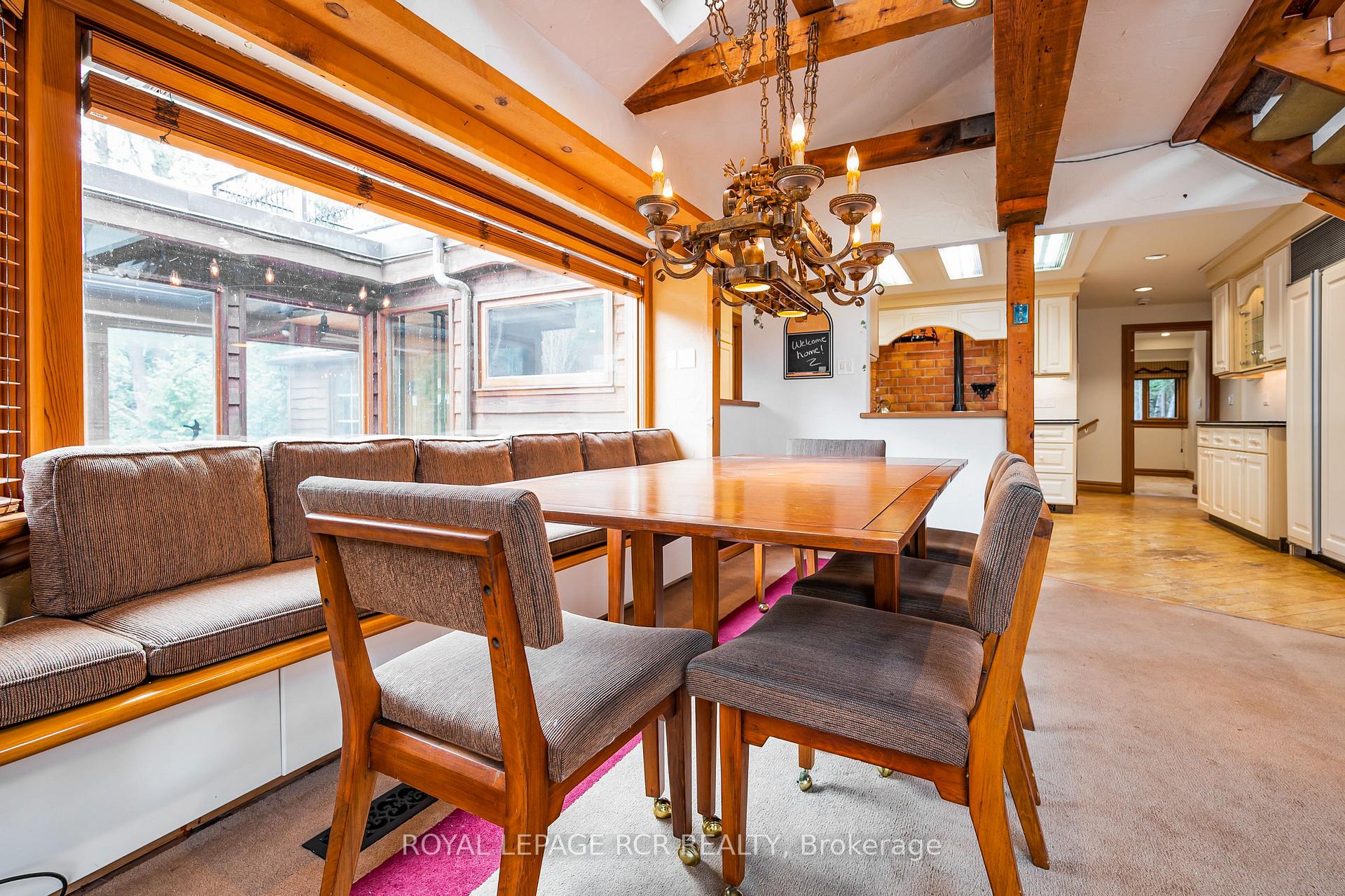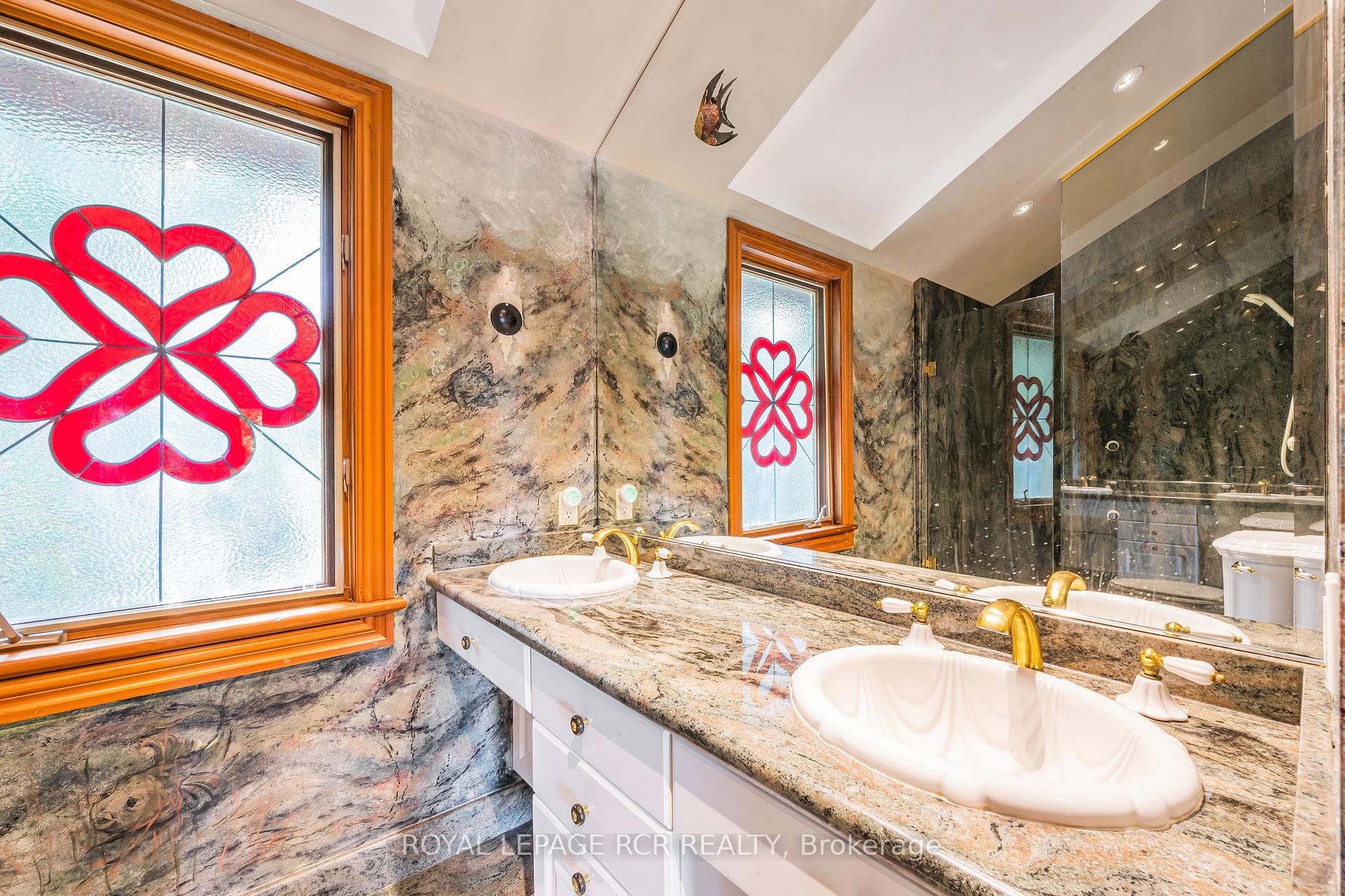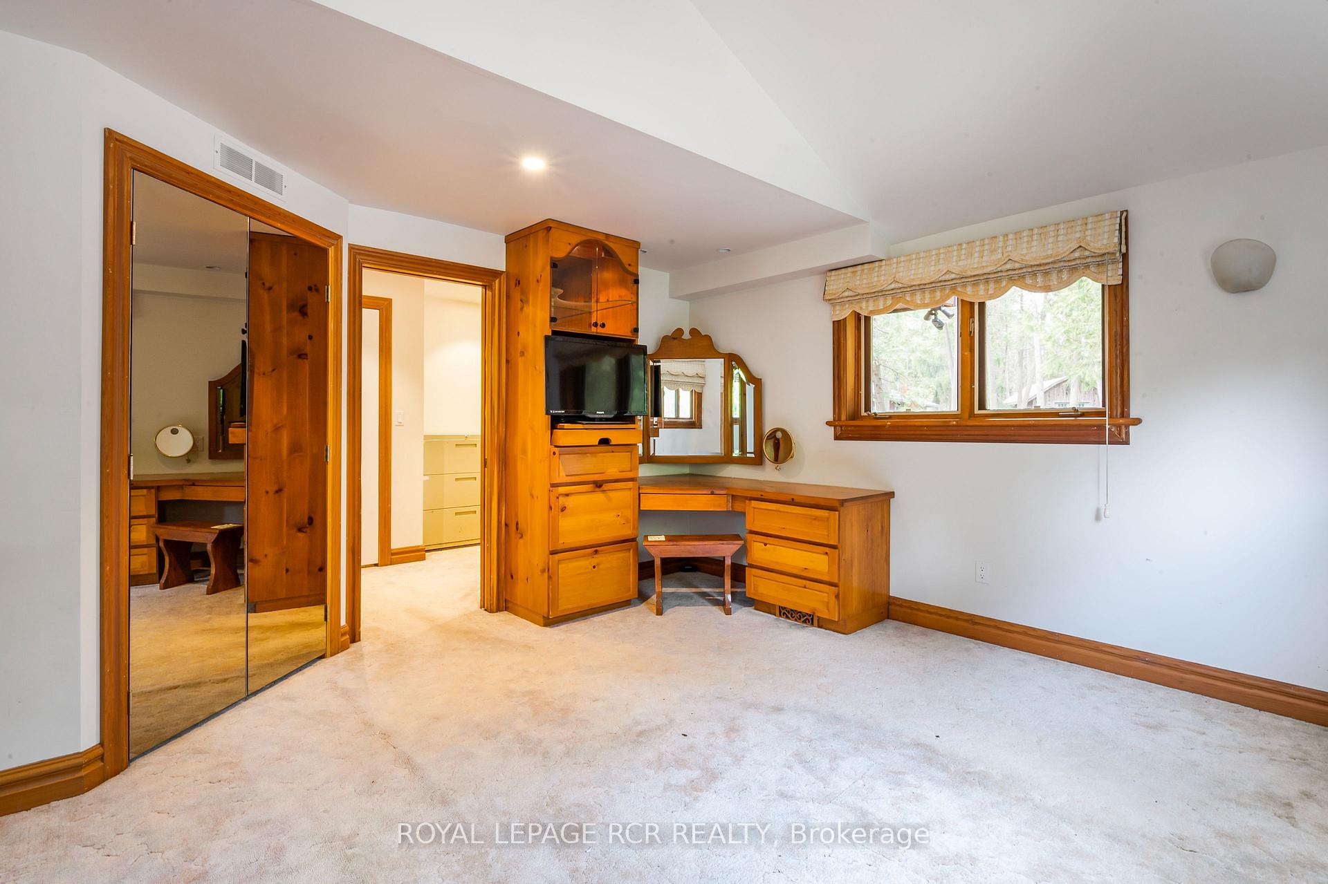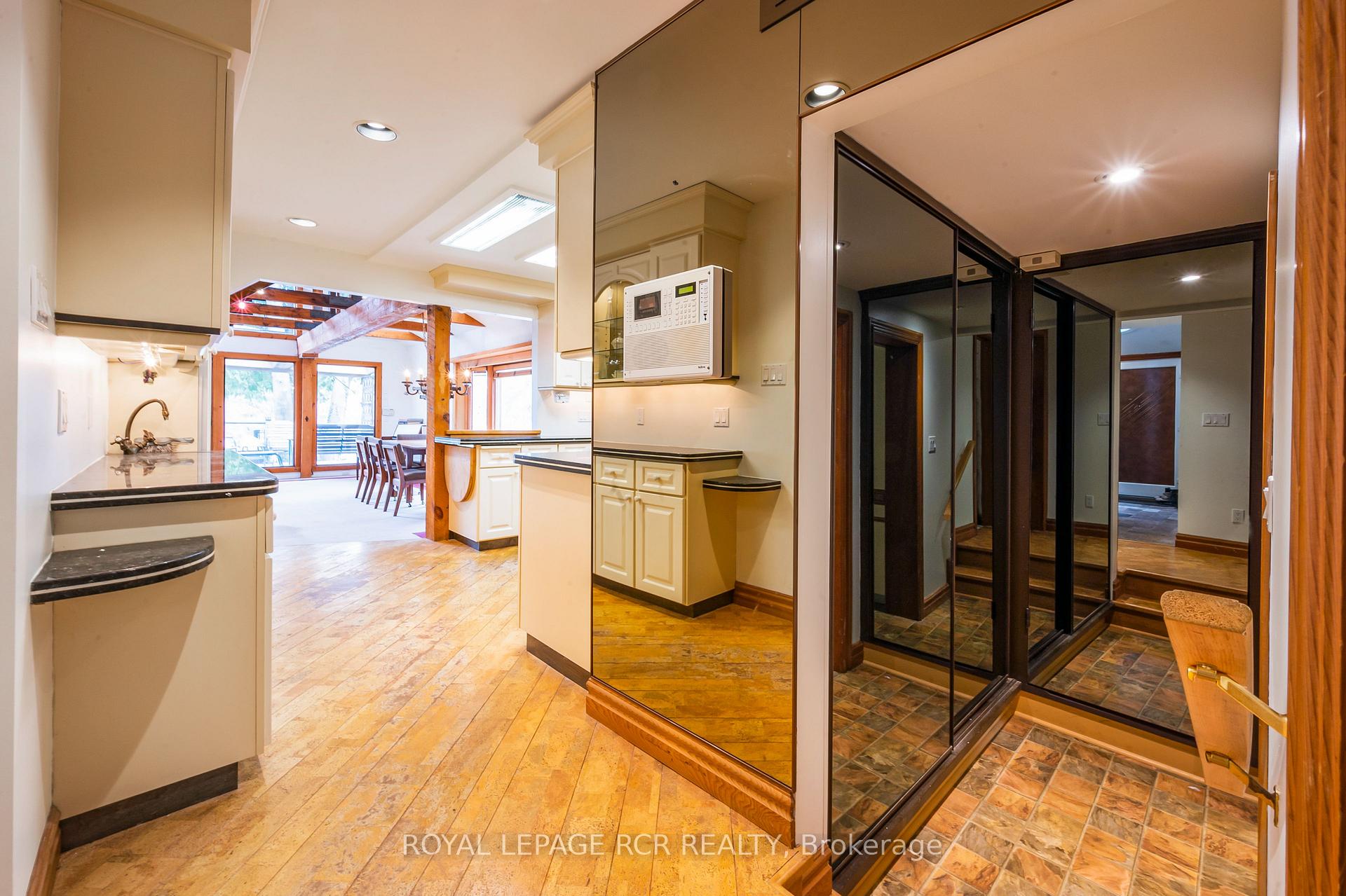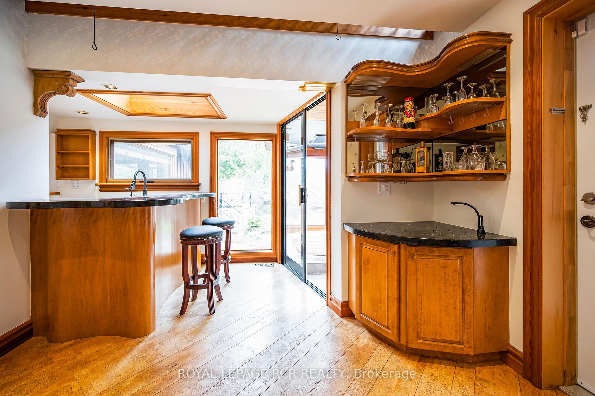 Tucked away on a secluded road, 15 River Bluff Path offers an extraordinary sanctuary blending natural beauty, creative energy, and quiet seclusion. Set on 13 acres with over 750 feet along the Eramosa River, this property presents a once-in-a-lifetime opportunity, with many unique features grandfathered in by the GRCA. The winding drive leads through a forest of mature trees to an almost otherworldly scene where a breathtaking infinity pool appears to spill into the river, surrounded by tranquil vistas and lush vegetation. Enjoy the scenery from the tiered deck, relax in the indoor hot tub, or watch wildlife such as deer, herons, and turtles. The private trail system leads to whimsical outbuildings, including a screened wooden pergola, a Japanese Maple Zen garden, and an outdoor privy. Once owned by a renowned Canadian naturalist, the property brims with creativity and inspiration. Inside, the great room captivates with soaring ceilings, stained glass accents, rustic wood beams, and a dramatic gas fireplace. A wall of windows connects the indoors to the breathtaking river view. The adjoining dining nook is perfect for gatherings, while the spacious kitchen features ample storage, a skylight, and an iconic AGA gas cooker. The main floor includes a vaulted-ceiling bedroom, a dressing/hobby room, two three-piece bathrooms (one wheelchair accessible), and a large laundry room. Upstairs, a loft-style theatre room provides an ideal space for entertainment, and two additional bedrooms share an impressive four-piece bathroom with heated floors and a spacious walk-in glass shower. With a two-car garage and an intercom system throughout, this retreat guarantees comfort and connectivity. Despite its privacy, it’s just minutes from Rockwood’s amenities and easily accessible to Guelph, Milton, and Pearson Airport. 15 River Bluff Path is more than just a home – it’s a legacy property rooted in nature and creativity, where every moment feels extraordinary.
