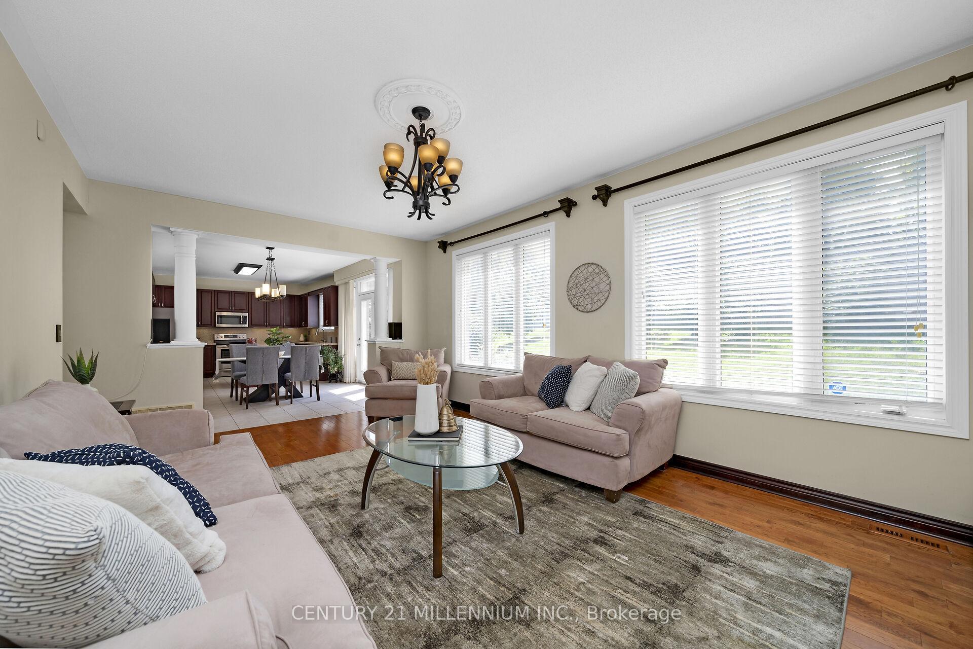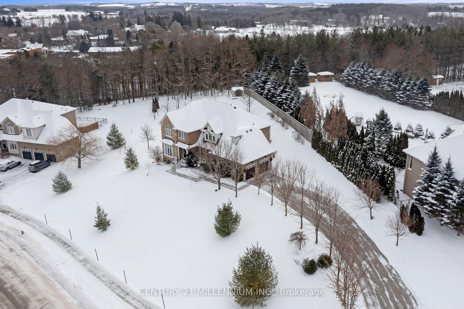 If space is what you are looking for, then look no further! Drive up the long driveway into this huge 0.8-acre lot, full of privacy and lovely landscaping. Wander up the front walkway to the double door entrance and walk into over 2,900 square feet of above grade space. Floor to ceiling windows bring in all the warm sunlight with 9-foot ceilings for open, airy living. Open combination of dining and living room with gleaming hardwood floors. Kitchen is as functional as it is beautiful with quartz counters and stainless-steel appliances. Lots of room for a kitchen table that walks out to the patio or into the warm, cozy family room. Also on the main floor is a powder room, laundry and mudroom to garage. A super cool private little porch is accessed from the front hall. Upstairs is an enormous primary and ensuite, plus walk-in closet. 3 more generous bedrooms and a full bath. The basement is just ready for your creative juices to flow. Perched up high in this family friendly neighborhood, only 40 minutes to the GTA and 20 to the GO train. Small town living in a big space! **EXTRAS** AC (2023), Freshly Painted Throughout (2024), Roof (2022), Quartz Countertops in Kitchen (2016), Deck (2015)