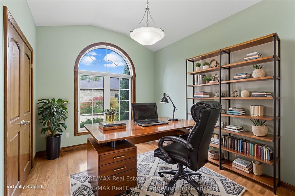 Set within the exclusive Valley Road Estates, 15 Valley Road Unit 19 offers an exceptional opportunity to own a beautifully crafted custom bungalow on one of Guelph’s most sought-after streets. With over **3,500 square feet of finished living space**, this home delivers an impressive balance of refined finishes, thoughtful design, and everyday livability. Designed to accommodate both relaxed family living and effortless entertaining, the layout features **3+2 bedrooms and 3 full bathrooms**. The main floor is anchored by a light-filled Great Room, where expansive windows invite the outdoors in and a gas fireplace adds warmth and character. The adjacent kitchen is a true showpiece-appointed with rich maple cabinetry, granite countertops, a generous centre island with seating, and heated ceramic tile flooring-making it as functional as it is inviting. Step outside to the oversized rear deck, complete with a gas BBQ hookup, offering the perfect setting for summer gatherings or quiet evenings surrounded by nature. The main level also includes three spacious bedrooms, highlighted by a tranquil primary retreat featuring a spa-inspired 4-piece ensuite with air-jet tub and heated floors. Main-floor laundry is conveniently located just off the entrance from the double car garage. Downstairs, the fully finished lower level expands the living space with two additional bedrooms, a 3-piece bathroom, and a welcoming recreation room centred around a second gas fireplace-ideal for guests, hobbies, or movie nights. Throughout the home, quality craftsmanship is evident in the hardwood flooring, solid oak doors and trim, and carefully selected finishes. Nestled among mature trees in a quiet, established enclave, this property offers privacy and serenity while remaining close to all of Guelph’s amenities. Homes of this calibre in Valley Road Estates are rarely offered-this is a truly special place to call home.