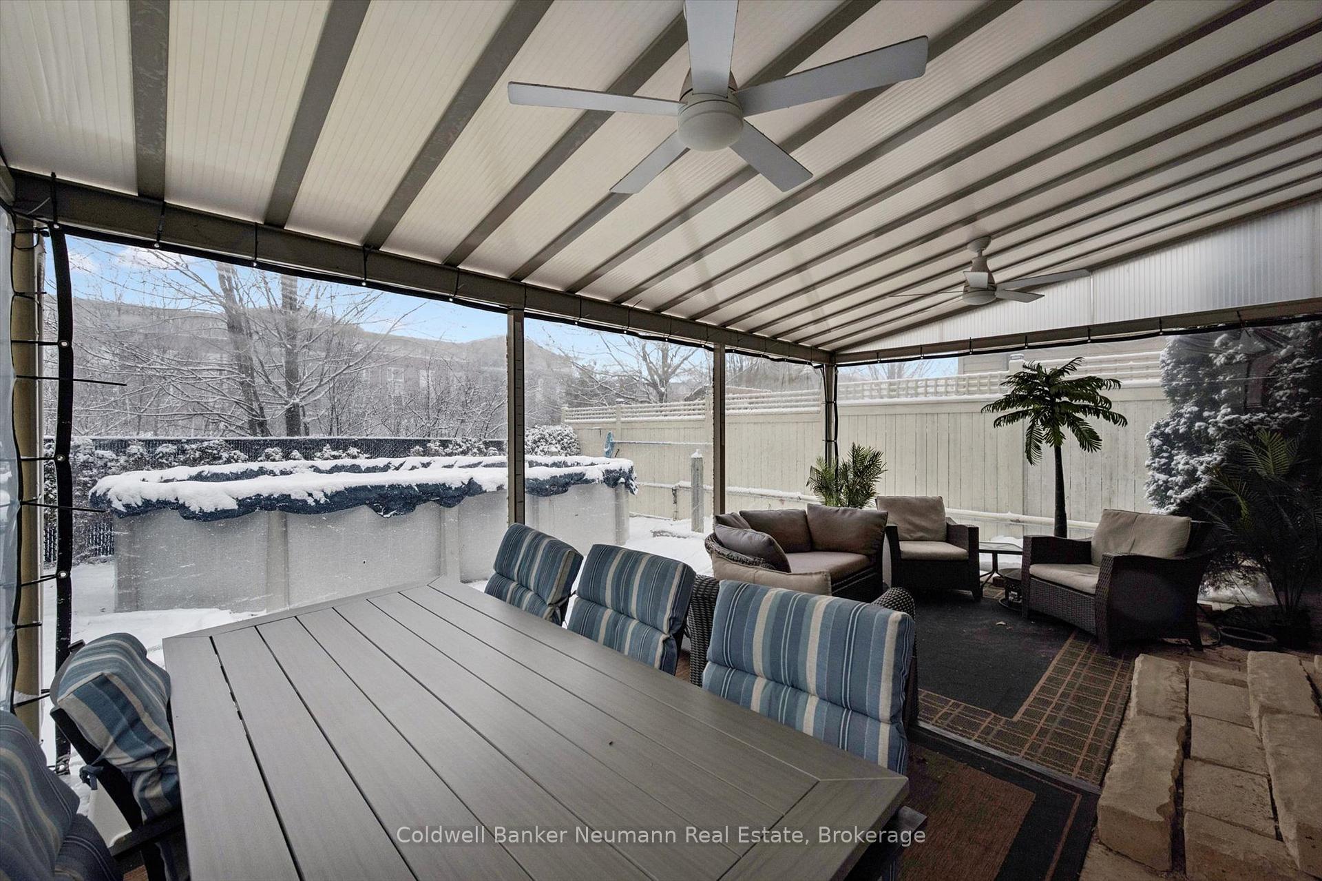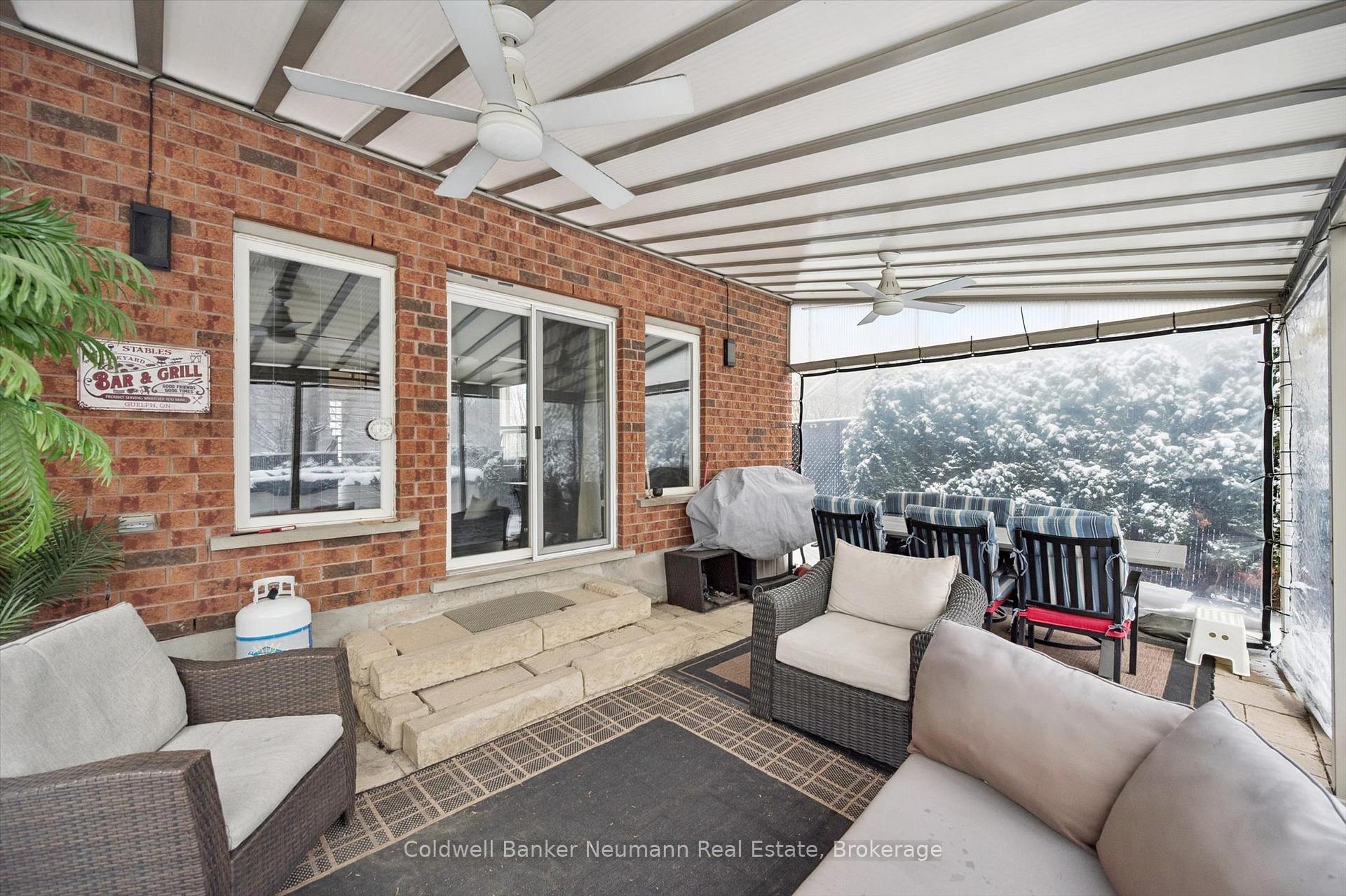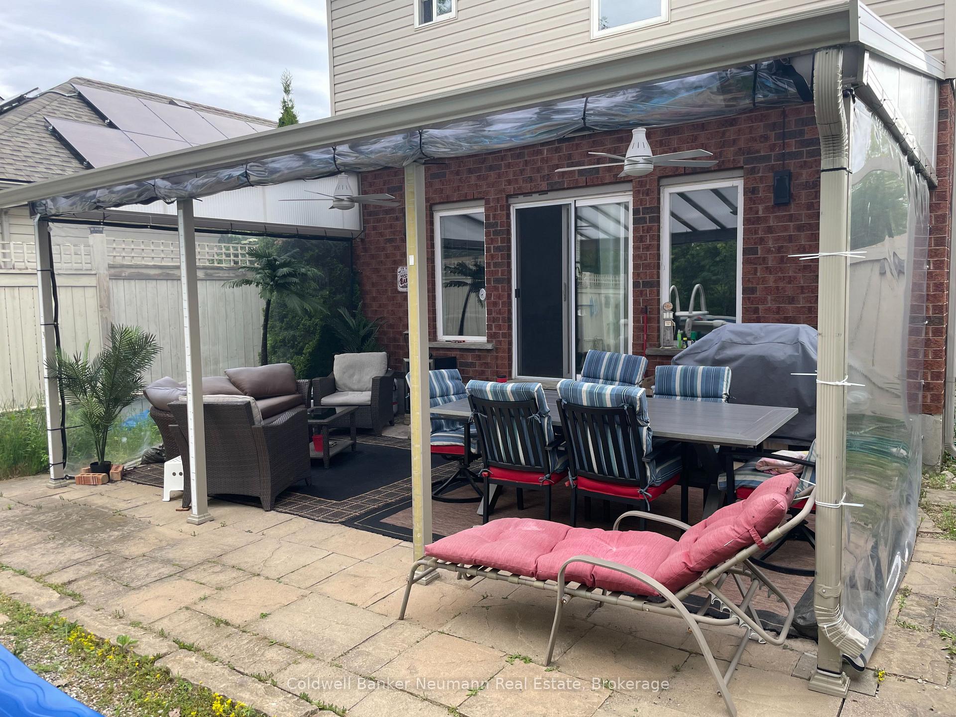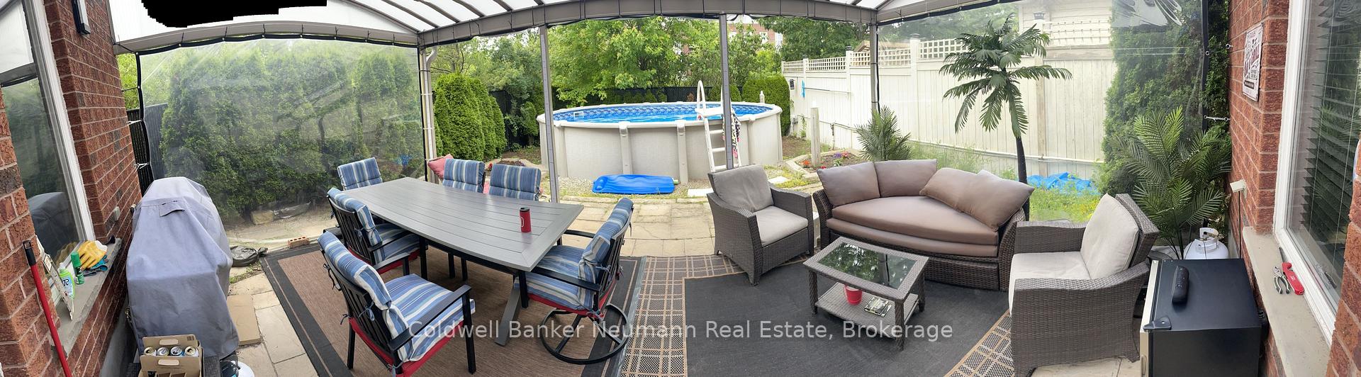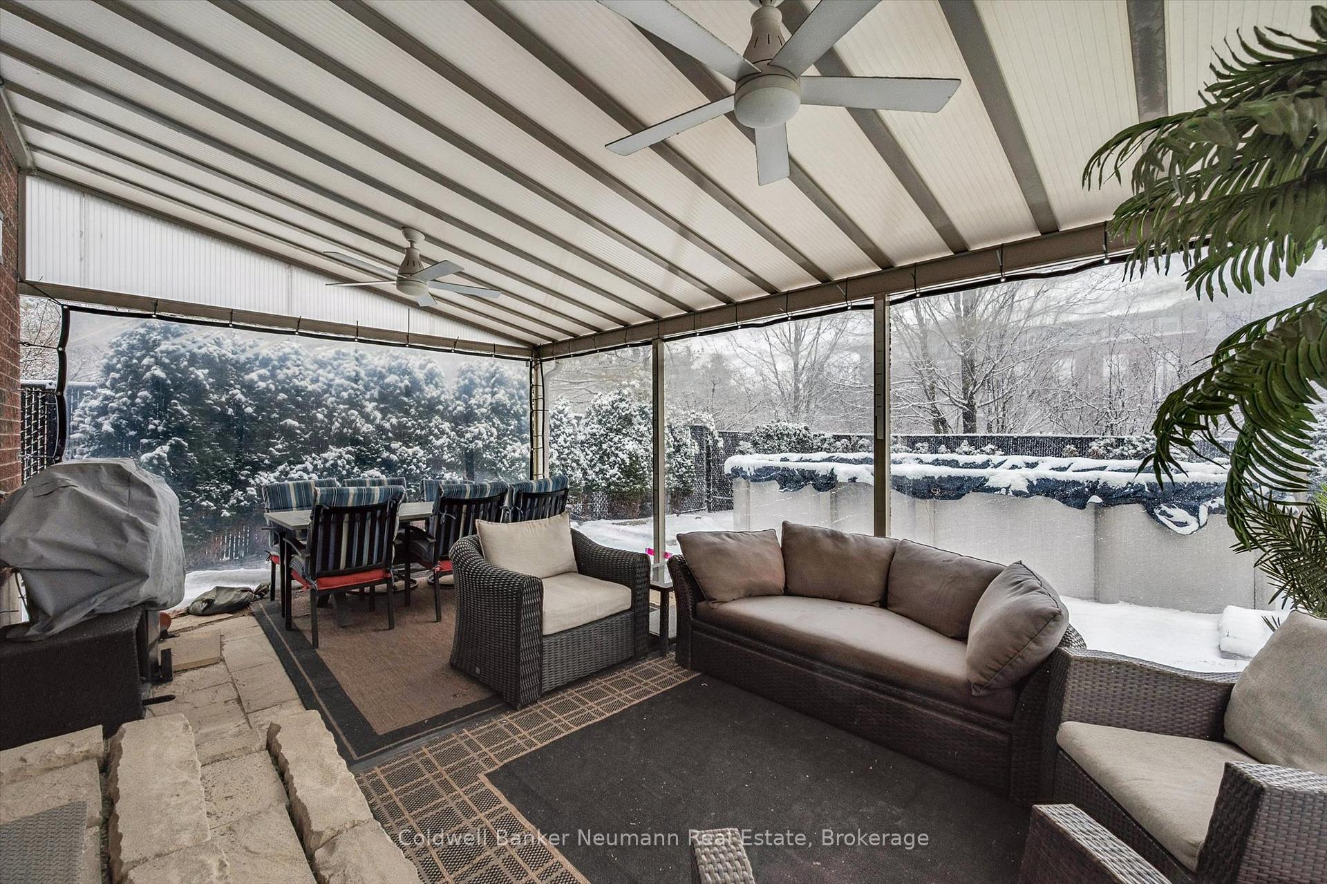Welcome to this bright and well maintained 3 bedroom home located in Guelph’s desirable south end, close to schools, parks, and everyday amenities. The main floor offers a spacious and sun filled layout where the kitchen opens into a cozy sunken living room, creating a warm and inviting space that is ideal for both everyday living and entertaining.From the living room, step directly outside to your backyard retreat. Surrounded by mature maple trees and cedars that provide beautiful privacy when in full bloom, the yard offers a peaceful outdoor setting. The outdoor enclosure allows you to enjoy the space regardless of the weather, while the above ground heated salt water pool is perfect for warm summer days. A gas BBQ hookup makes outdoor entertaining easy.The fully finished basement adds valuable living space and features a dedicated home theatre, perfect for movie nights, watching the big game, or relaxing with family and friends.Located at the end of the street with only one neighbouring home, this property offers a quiet and private setting while still being just minutes from shopping, restaurants, and other south end amenities.Recent updates include a new furnace and air conditioner (2024), roof (2019), 14 x 20 acrylic patio roof (2020), above ground heated salt water pool (2015) with new liner, salt cell and heater, and a beautifully renovated ensuite featuring a glass shower and floating vanity.