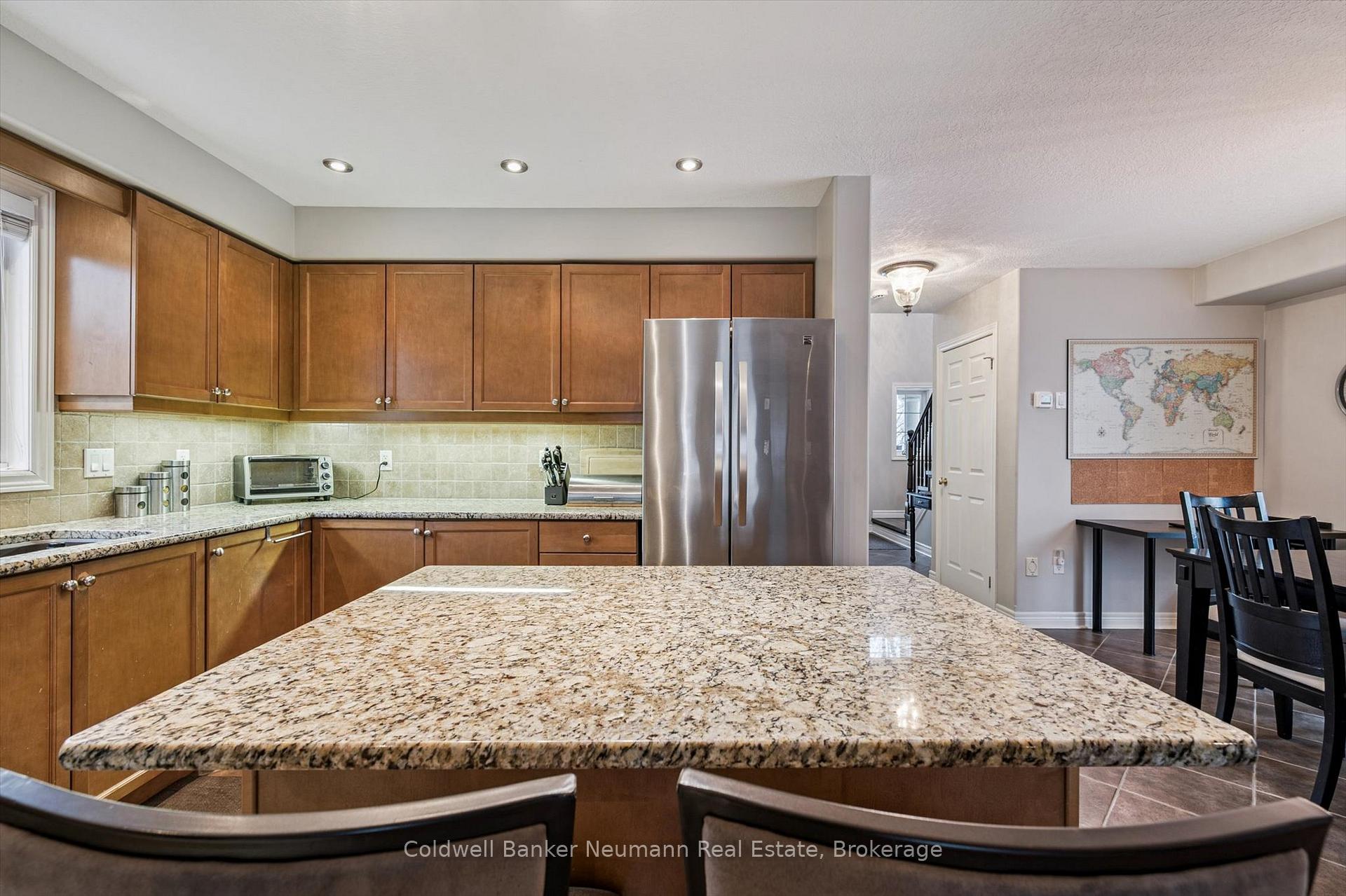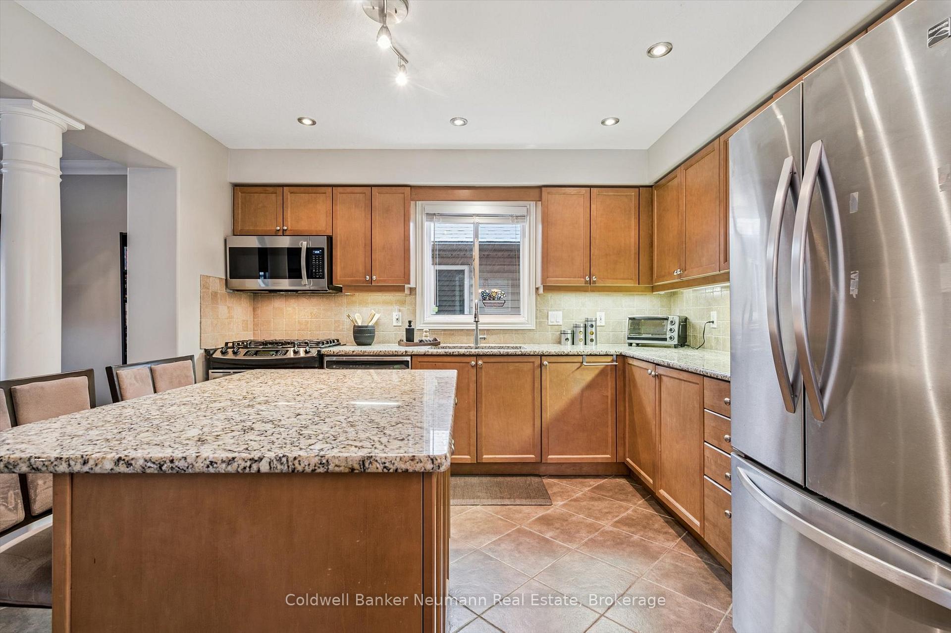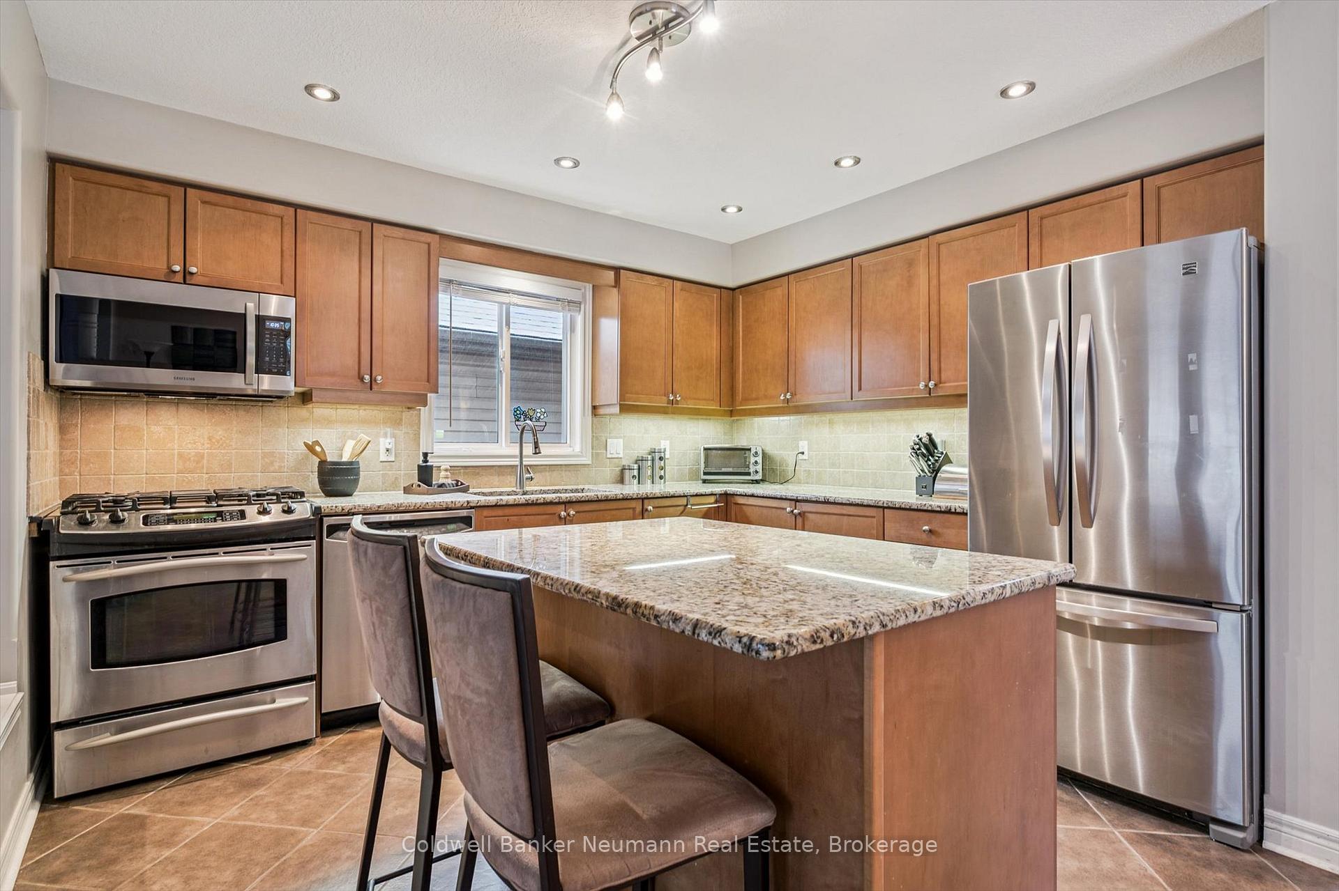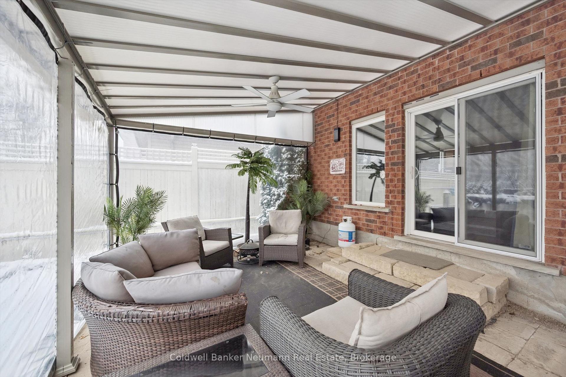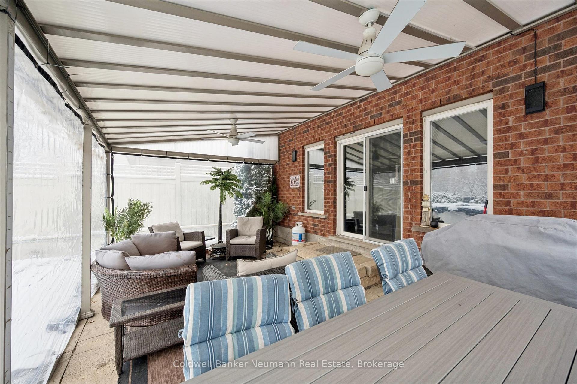 Welcome to this bright and well maintained 3 bedroom home located in Guelph’s desirable south end, close to schools, parks, and everyday amenities. The main floor offers a spacious and sun filled layout where the kitchen opens into a cozy sunken living room, creating a warm and inviting space that is ideal for both everyday living and entertaining.From the living room, step directly outside to your backyard retreat. Surrounded by mature maple trees and cedars that provide beautiful privacy when in full bloom, the yard offers a peaceful outdoor setting. The outdoor enclosure allows you to enjoy the space regardless of the weather, while the above ground heated salt water pool is perfect for warm summer days. A gas BBQ hookup makes outdoor entertaining easy.The fully finished basement adds valuable living space and features a dedicated home theatre, perfect for movie nights, watching the big game, or relaxing with family and friends.Located at the end of the street with only one neighbouring home, this property offers a quiet and private setting while still being just minutes from shopping, restaurants, and other south end amenities.Recent updates include a new furnace and air conditioner (2024), roof (2019), 14 x 20 acrylic patio roof (2020), above ground heated salt water pool (2015) with new liner, salt cell and heater, and a beautifully renovated ensuite featuring a glass shower and floating vanity.