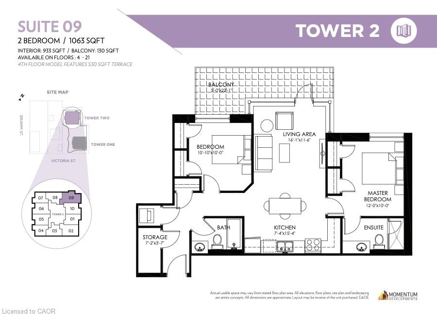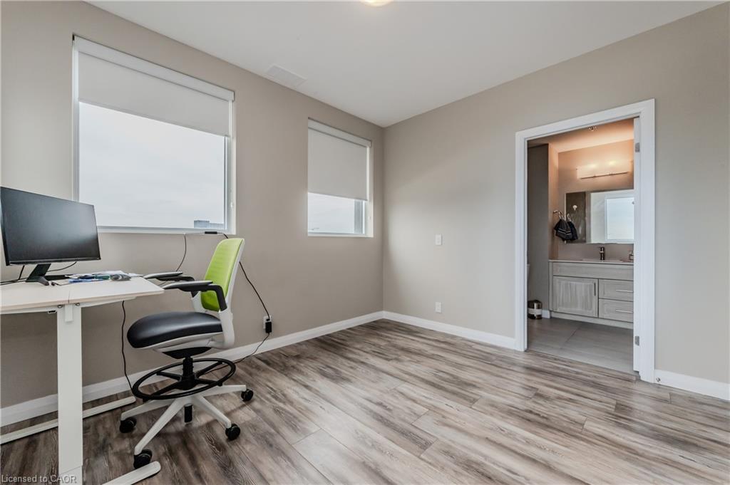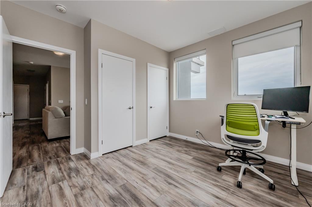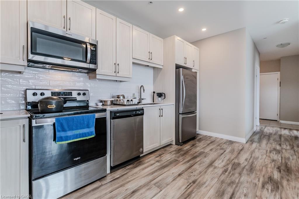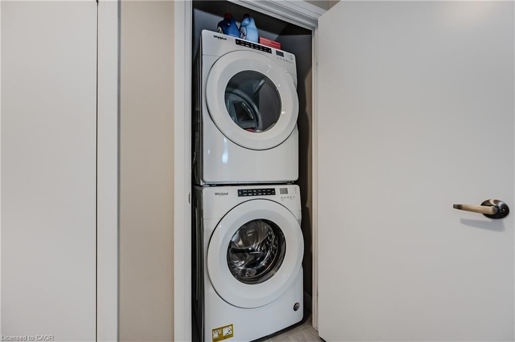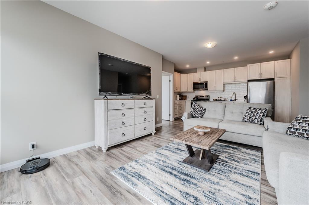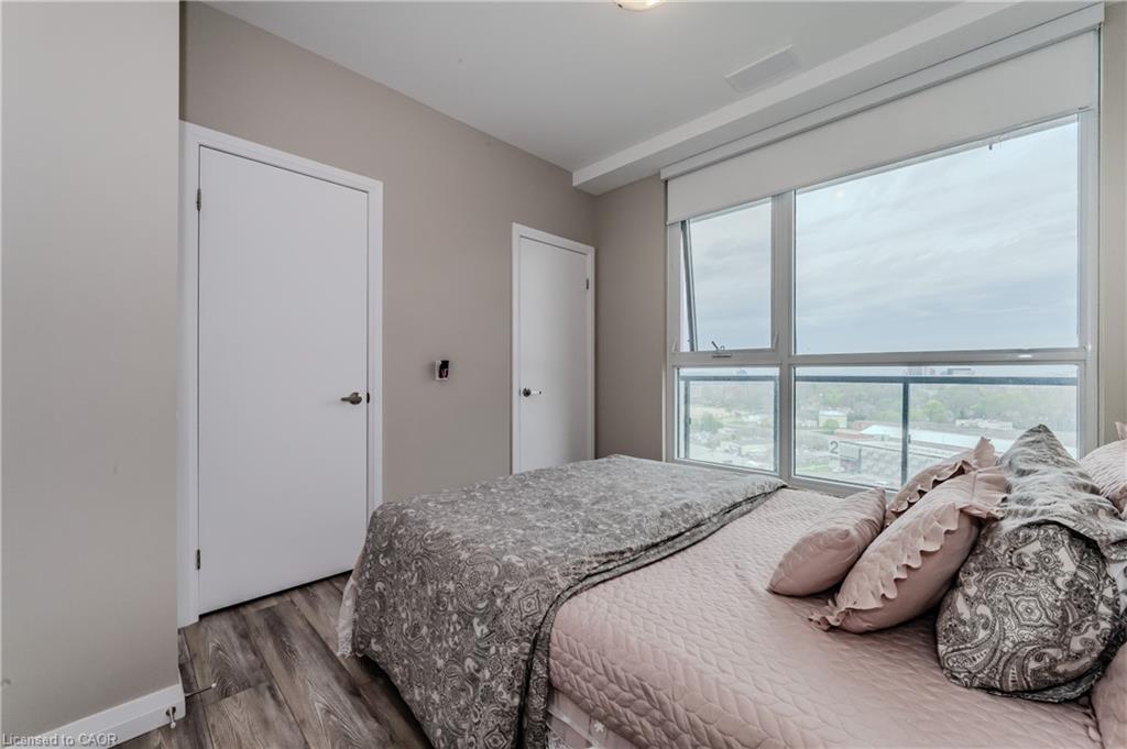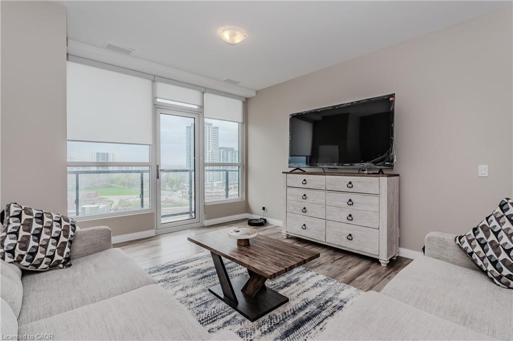 Welcome to the desirable 104 Garment St building, where you will find this elegant 2bed + 2bath condo! This spacious unit is sure to meet all your lifestyle needs. The open concept floor plan is ideal for entertaining, relaxing or working from home. This unit features a spacious kitchen, with lots of storage including a built in pantry cabinet. The sleek stainless steel appliances and stone countertop put the finishing touches on this well thought space. Just off the kitchen is a spacious living room, with large windows letting in lots of natural light. Looking to enjoy relaxing or dinner on the balcony? This large North West facing balcony is the perfect place to enjoy. Off the main living spaces, find two large bedrooms. The primary bedroom features dual closets and a 3 pc ensuite bathroom. The best part about the 104 Garment street condos is the bonus 7’x3’7″ storage room, perfect to store and pack seasonal decor and so much more. Experience the luxury amenities this condo has to offer including a media room, party room, fully equipped gym and gorgeous rooftop patio complete with BBQ’s and loungers; you will definitely want to spend summer nights watching the sunset here. Just moments outside of the building, see all that downtown Kitchener has to offer, with local eats, shopping, boutiques and so much more within walking reach. You are not going to want to miss out on this opportunity, so book a showing today to see all this modern condo unit has to offer you!