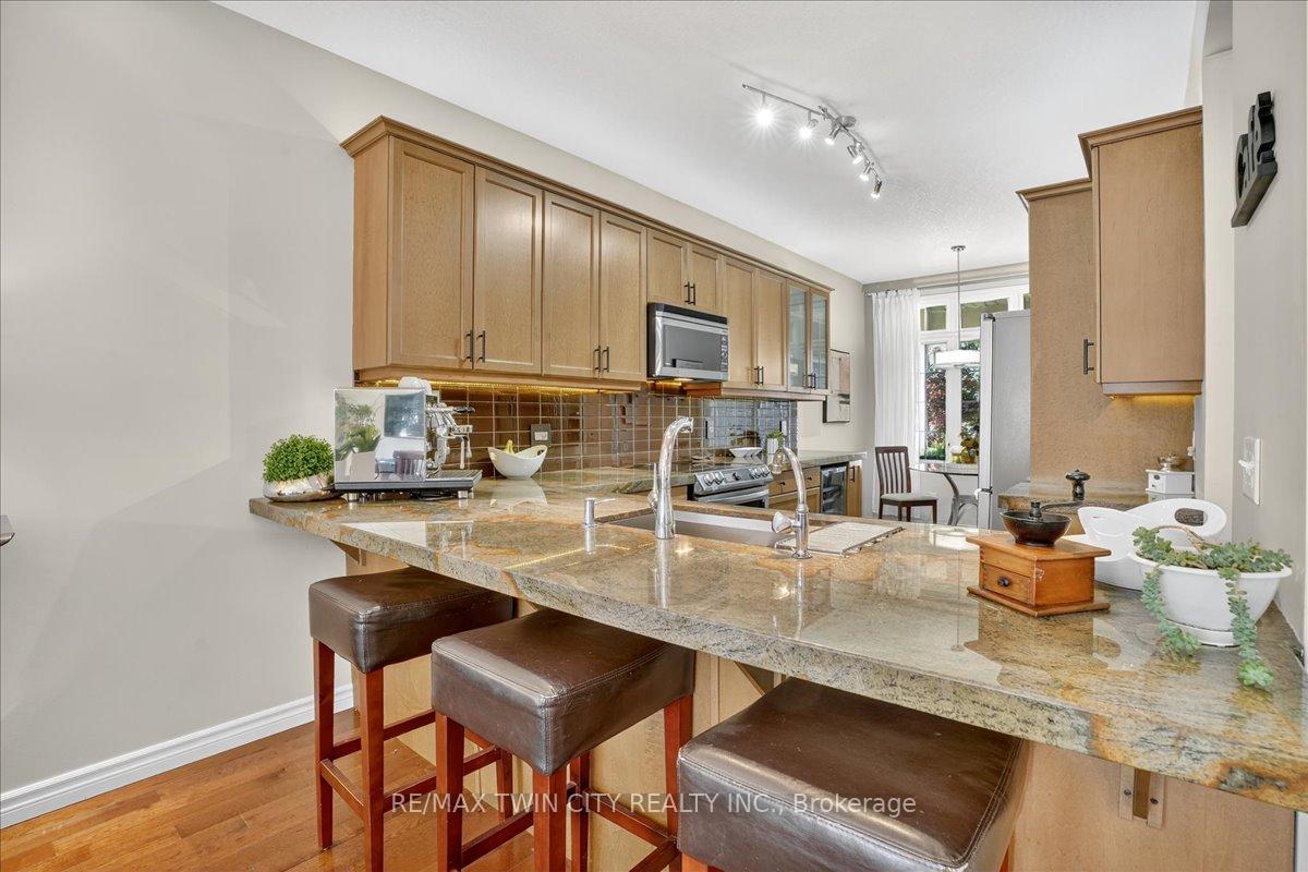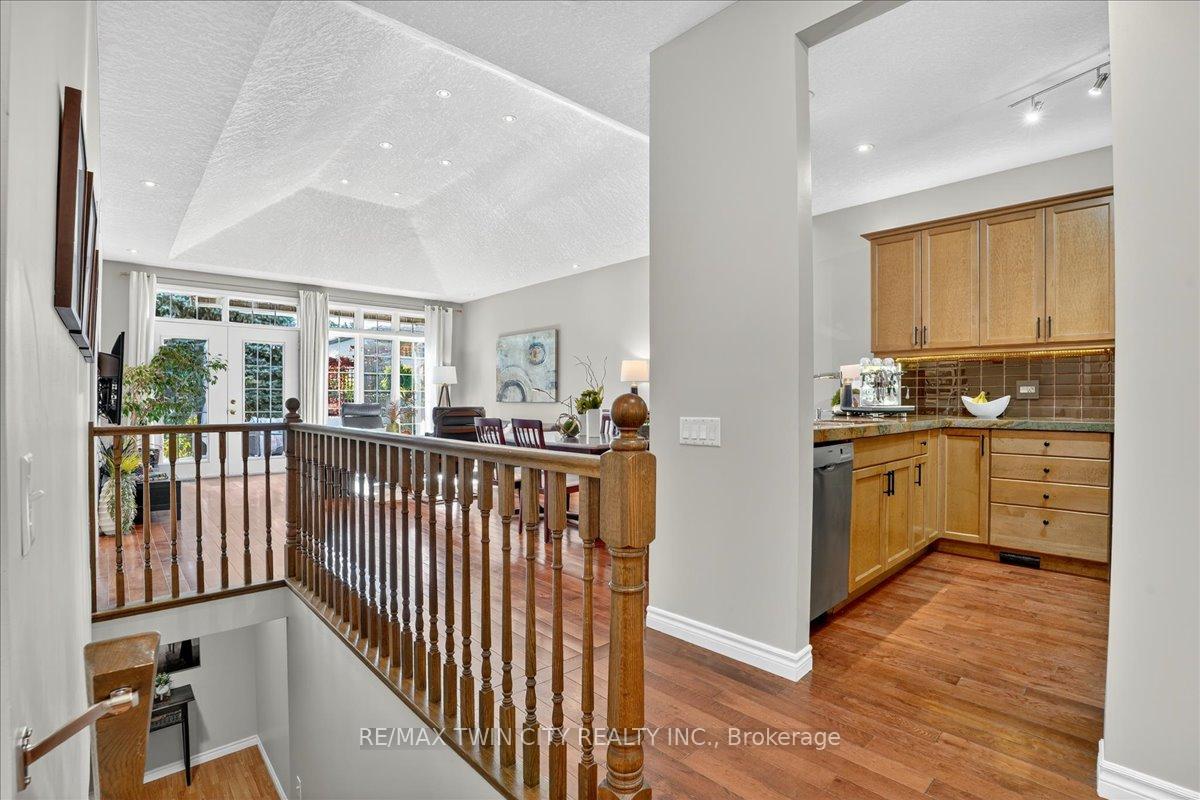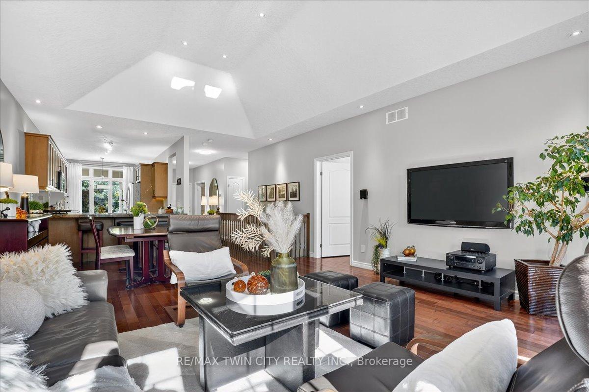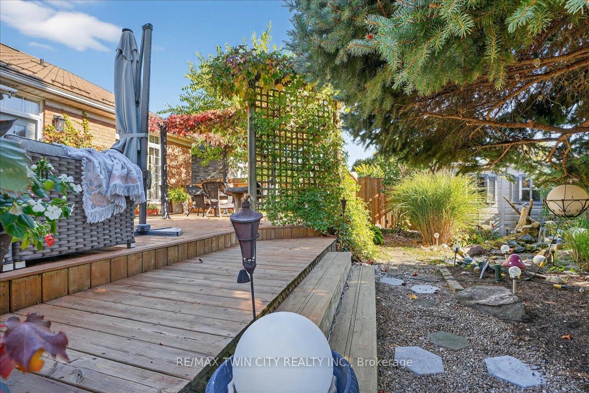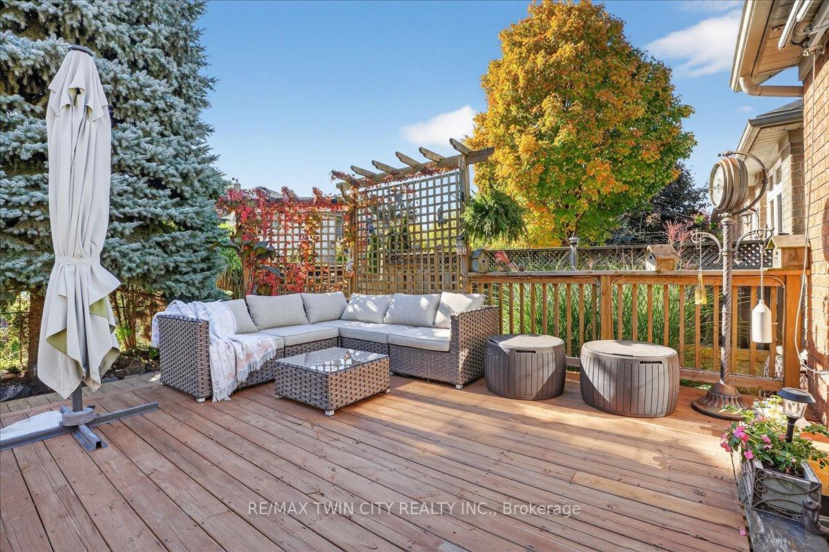 Immaculate, solid brick/stone bungalow located in Waterloo’s sought after Beechwood Family Neighbourhood. Nestled on a quiet, private court with walking trails and natural parks. Custom built by Cook Homes with special consideration given to wheelchair accessibility, including open concept design, wide hallways & doors throughout the main floor. Nearly 2700 square feet of beautifully finished living space with 4 bedrooms, 3 full bathrooms and a fully finished basement. Meticulously maintained by the original owner offering modern comfort and traditional elegance. The 9′ ceiling and the large transom windows on the main floor create an expansive and airy atmosphere throughout. The gourmet eat-in Kitchen features an abundance of cabinetry with beautiful granite countertops, 5 Stainless Steel appliances and large peninsula/breakfast bar that opens to vaulted ceiling Great Room/Dining Room and seamlessly connects to a tranquil landscaped rear yard oasis with huge 30 x 20 foot deck, decorative lattices and pergola with climbing plants and cascading water feature. Perfect for outdoor entertaining and peaceful relaxation. The spacious Primary Bedroom overlooks the backyard and includes well appointed 4 piece Ensuite and walk-in closet. The 2nd Bedroom has 2nd Ensuite privileges with wheelchair accessible shower and wide pocket doors. The fully finished lower level offers 2 additional Bedrooms and 3 piece Bathroom, cozy Recroom, wet bar/kitchenette, large Laundry Room, storage rooms, cold cellar and a convenient walkup to 2 car garage. Updates include freshly painted (2024) steel roof (2018) with transferrable warranty, furnace & AC (2019), new asphalt driveway for 4 cars (2025). Located minutes from Boardwalk shopping, groceries, transit, both Universities, Westmount Golf & Country Club, parks & schools. Offers a great lifestyle opportunity for families, professionals or downsizers looking for quality, low maintenance landscaping for maximum enjoyment with minimal effort.