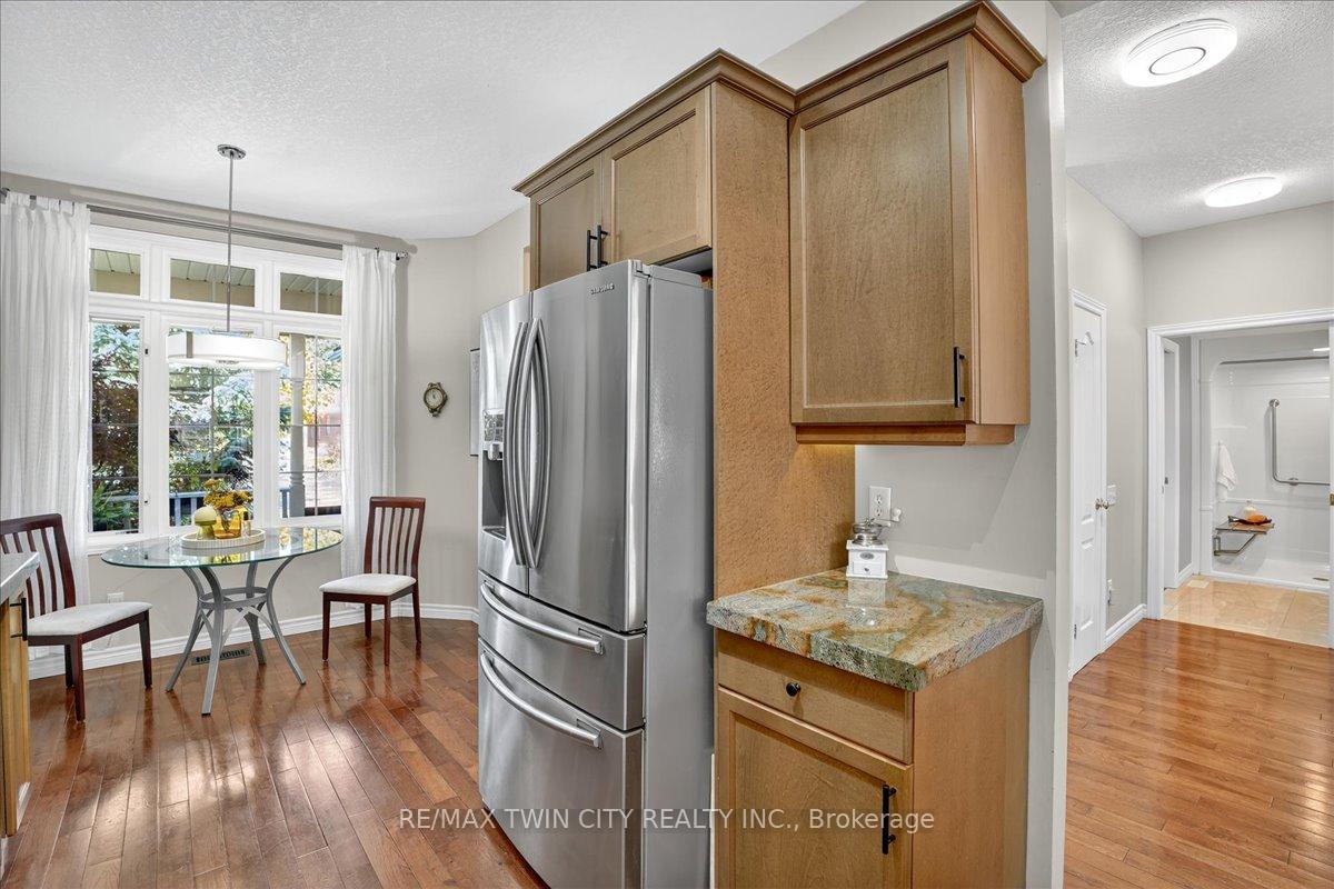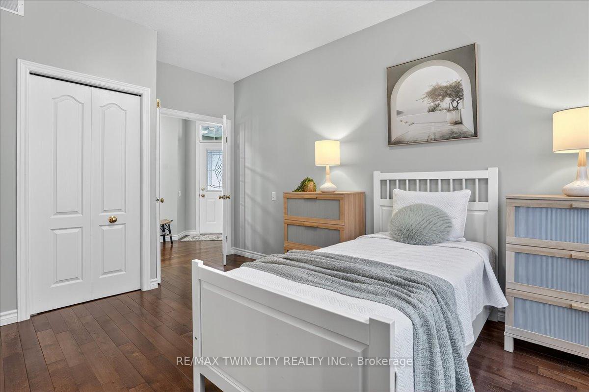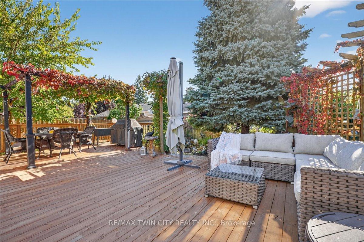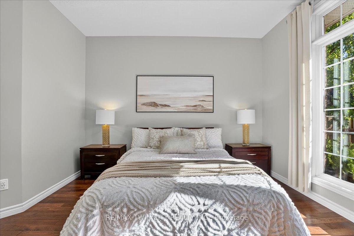 Immaculate, solid brick/stone bungalow located in Waterloo’s sought after Beechwood Family Neighbourhood. Nestled on a quiet, private court with walking trails and natural parks. Custom built by Cook Homes with special consideration given to wheelchair accessibility, including open concept design, wide hallways & doors throughout the main floor. Nearly 2700 square feet of beautifully finished living space with 4 bedrooms, 3 full bathrooms and a fully finished basement. Meticulously maintained by the original owner offering modern comfort and traditional elegance. The 9′ ceiling and the large transom windows on the main floor create an expansive and airy atmosphere throughout. The gourmet eat-in Kitchen features an abundance of cabinetry with beautiful granite countertops, 5 Stainless Steel appliances and large peninsula/breakfast bar that opens to vaulted ceiling Great Room/Dining Room and seamlessly connects to a tranquil landscaped rear yard oasis with huge 30 x 20 foot deck, decorative lattices and pergola with climbing plants and cascading water feature. Perfect for outdoor entertaining and peaceful relaxation. The spacious Primary Bedroom overlooks the backyard and includes well appointed 4 piece Ensuite and walk-in closet. The 2nd Bedroom has 2nd Ensuite privileges with wheelchair accessible shower and wide pocket doors. The fully finished lower level offers 2 additional Bedrooms and 3 piece Bathroom, cozy Recroom, wet bar/kitchenette, large Laundry Room, storage rooms, cold cellar and a convenient walkup to 2 car garage. Updates include freshly painted (2024) steel roof (2018) with transferrable warranty, furnace & AC (2019), new asphalt driveway for 4 cars (2025). Located minutes from Boardwalk shopping, groceries, transit, both Universities, Westmount Golf & Country Club, parks & schools. Offers a great lifestyle opportunity for families, professionals or downsizers looking for quality, low maintenance landscaping for maximum enjoyment with minimal effort.