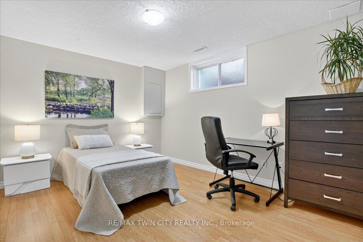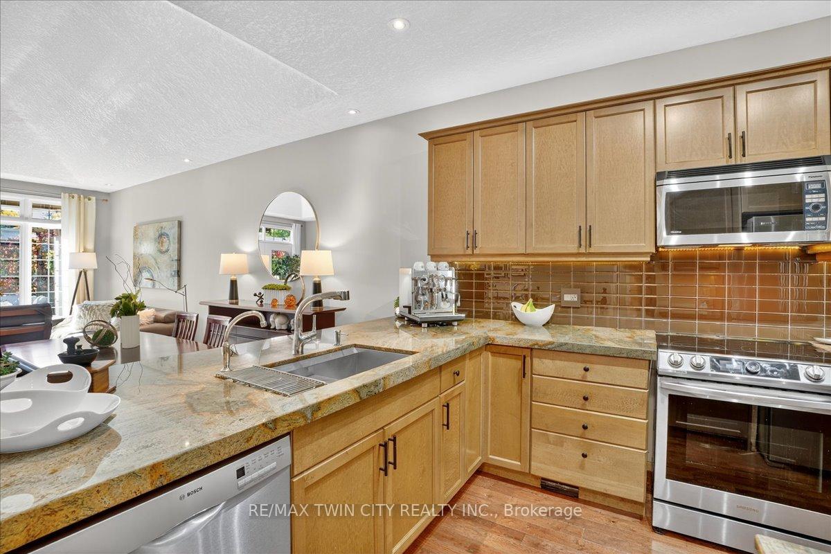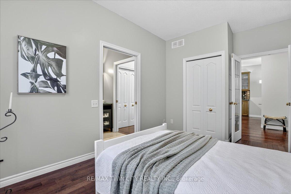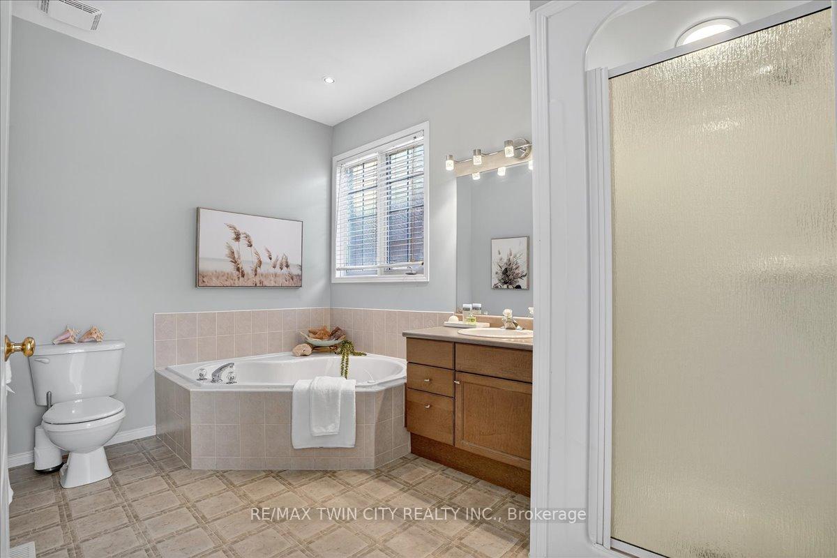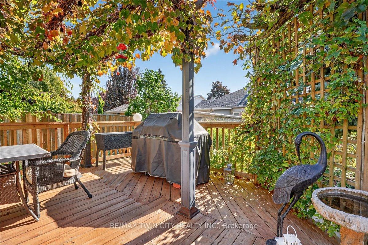 Immaculate, solid brick/stone bungalow located in Waterloo’s sought after Beechwood Family Neighbourhood. Nestled on a quiet, private court with walking trails and natural parks. Custom built by Cook Homes with special consideration given to wheelchair accessibility, including open concept design, wide hallways & doors throughout the main floor. Nearly 2700 square feet of beautifully finished living space with 4 bedrooms, 3 full bathrooms and a fully finished basement. Meticulously maintained by the original owner offering modern comfort and traditional elegance. The 9′ ceiling and the large transom windows on the main floor create an expansive and airy atmosphere throughout. The gourmet eat-in Kitchen features an abundance of cabinetry with beautiful granite countertops, 5 Stainless Steel appliances and large peninsula/breakfast bar that opens to vaulted ceiling Great Room/Dining Room and seamlessly connects to a tranquil landscaped rear yard oasis with huge 30 x 20 foot deck, decorative lattices and pergola with climbing plants and cascading water feature. Perfect for outdoor entertaining and peaceful relaxation. The spacious Primary Bedroom overlooks the backyard and includes well appointed 4 piece Ensuite and walk-in closet. The 2nd Bedroom has 2nd Ensuite privileges with wheelchair accessible shower and wide pocket doors. The fully finished lower level offers 2 additional Bedrooms and 3 piece Bathroom, cozy Recroom, wet bar/kitchenette, large Laundry Room, storage rooms, cold cellar and a convenient walkup to 2 car garage. Updates include freshly painted (2024) steel roof (2018) with transferrable warranty, furnace & AC (2019), new asphalt driveway for 4 cars (2025). Located minutes from Boardwalk shopping, groceries, transit, both Universities, Westmount Golf & Country Club, parks & schools. Offers a great lifestyle opportunity for families, professionals or downsizers looking for quality, low maintenance landscaping for maximum enjoyment with minimal effort.