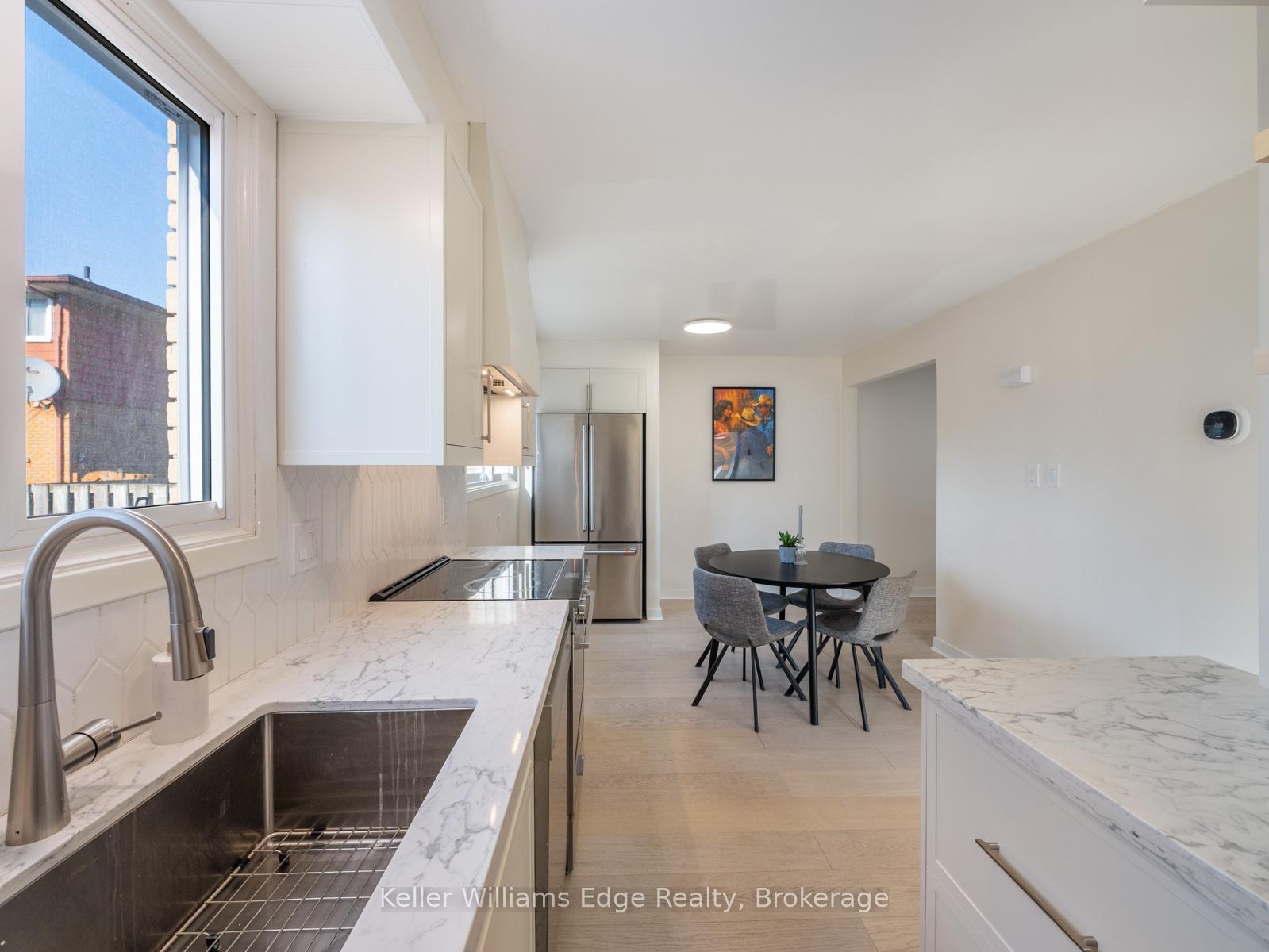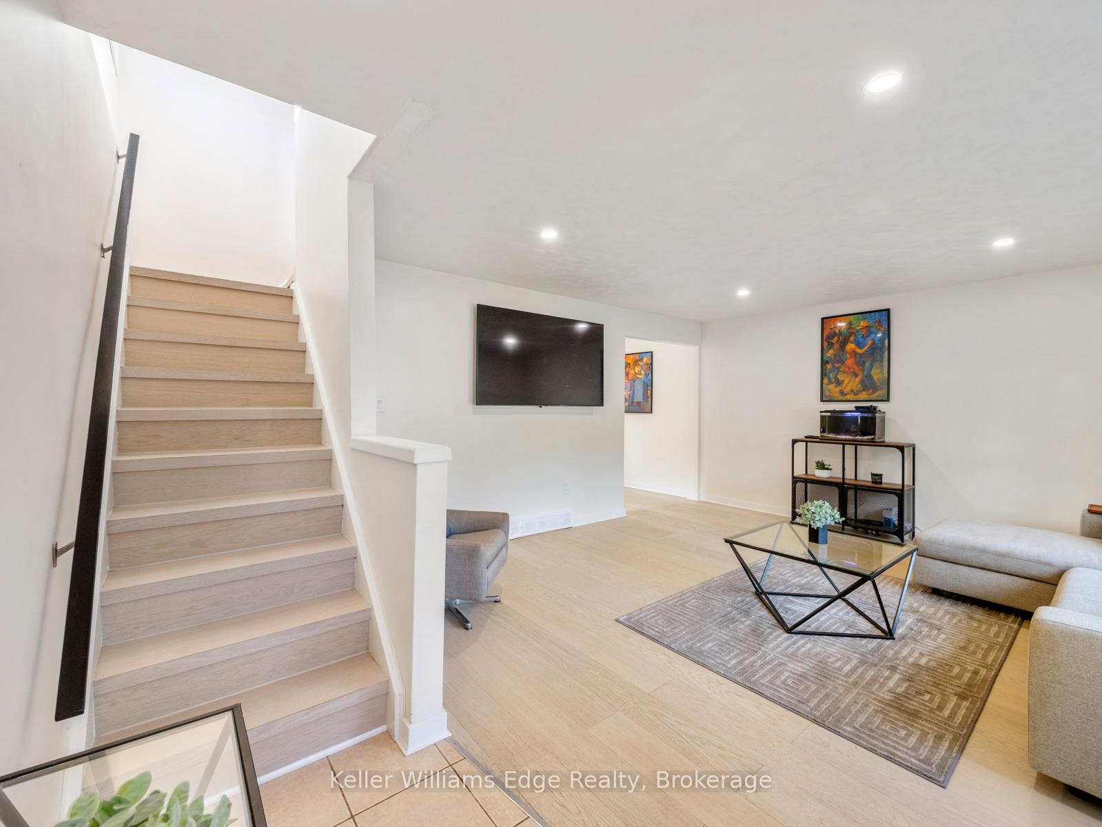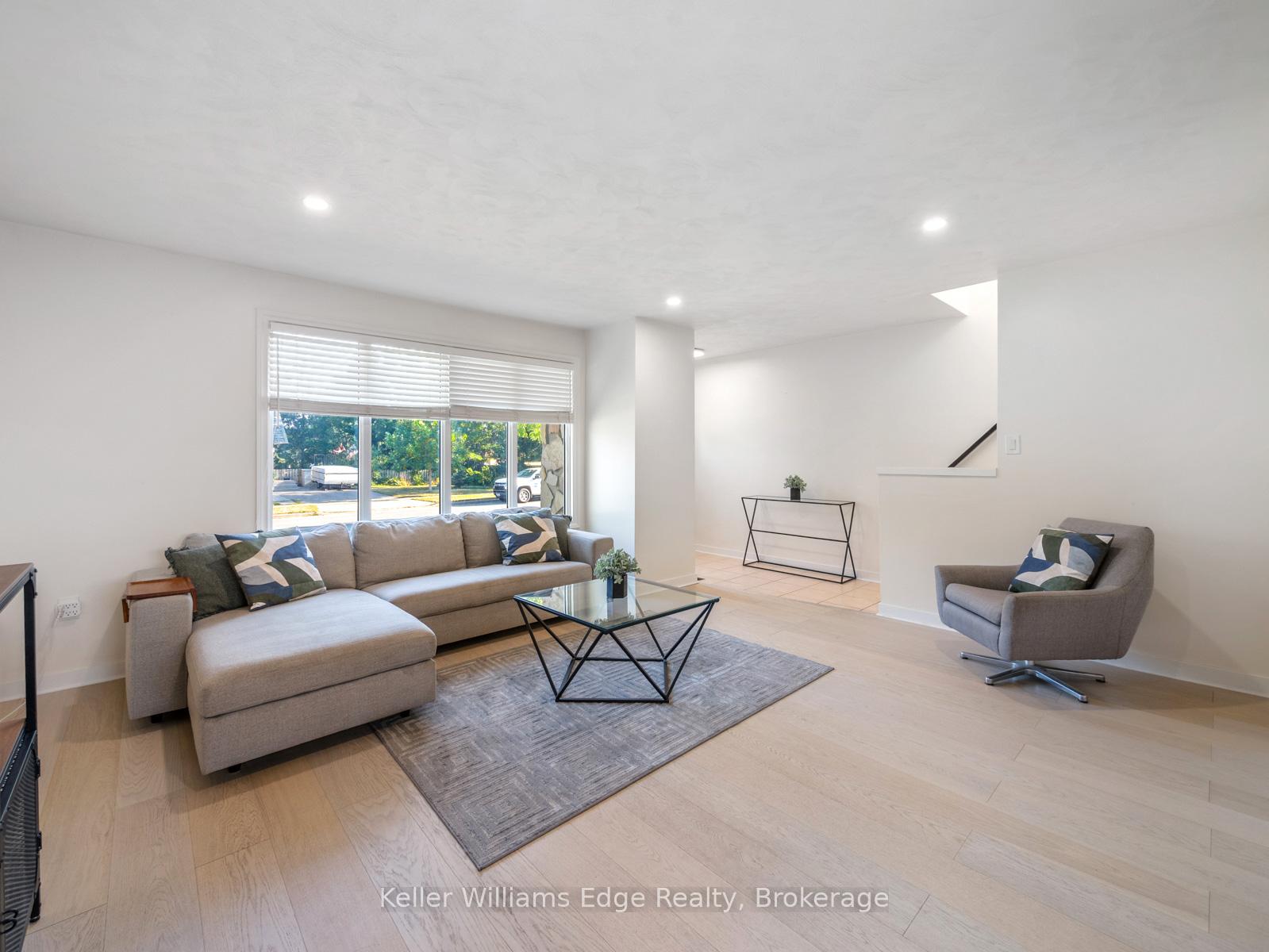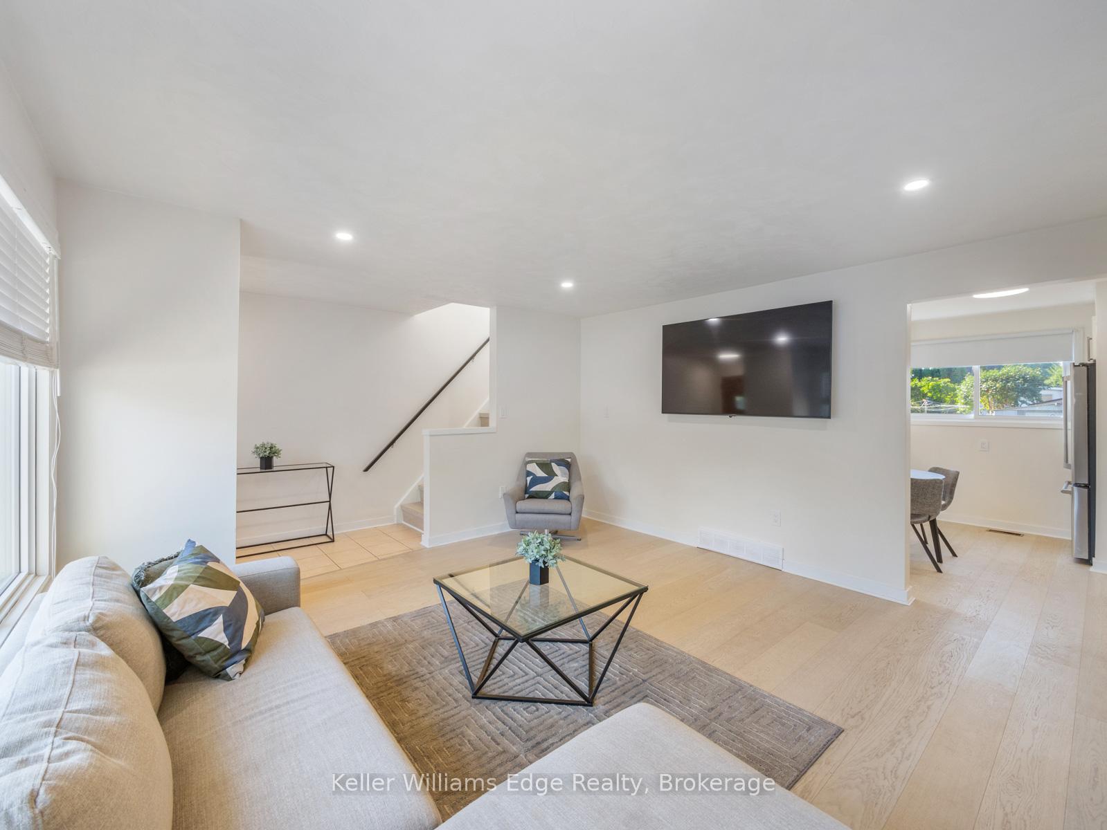 A semi that lives like a detached. This fully renovated home offers rare space and privacy with features you won’t find anywhere else. The bright, oversized living room fits a full sofa set with room to spare, while the kitchen and dining area easily host a proper dining table. Upstairs, three generous bedrooms all accommodate queen beds with furnishings, and the lower level boasts a massive family room with a full bath, perfect for entertaining, an in-law suite, or rental. All common walls have been professionally soundproofed with Sonopan and an air gap, giving unmatched quiet and privacy. Major systems are updated for peace of mind: 200-amp panel, roof, furnace & A/C, hot water heater and water softener. Stylish upgrades include White Oak engineered hardwood, LED pot lights, a new kitchen with smart appliances, and a spa-inspired bath with dual sinks and a glass shower. Set on a 72+ ft wide lot with RS1 zoning, there is potential to sever and build a custom detached home. Enjoy the renovated property today while planning tomorrow’s development. Minutes to Downtown Galt, parks, schools, shopping, and Highway 401, this is a rare opportunity combining lifestyle and investment.
