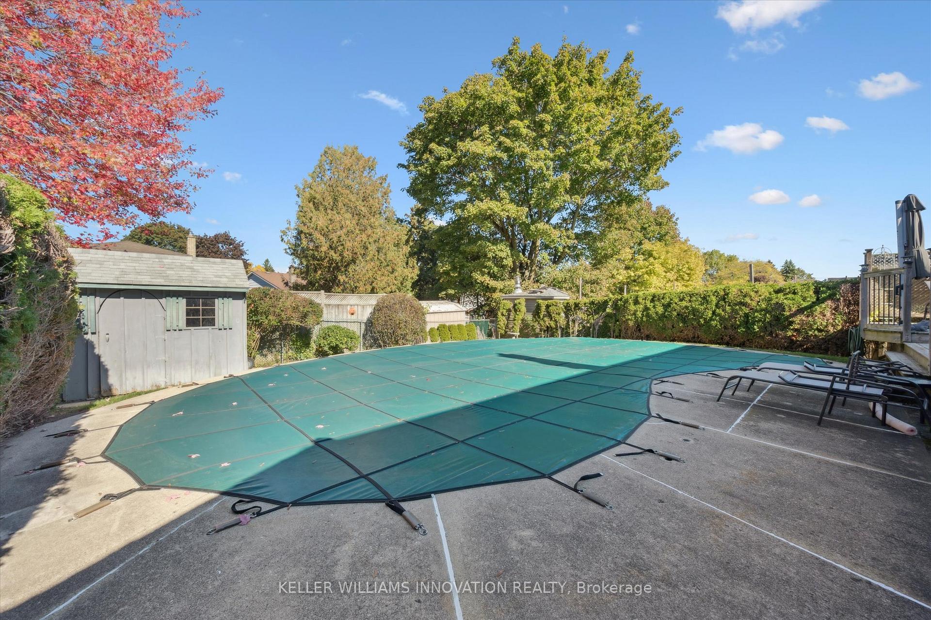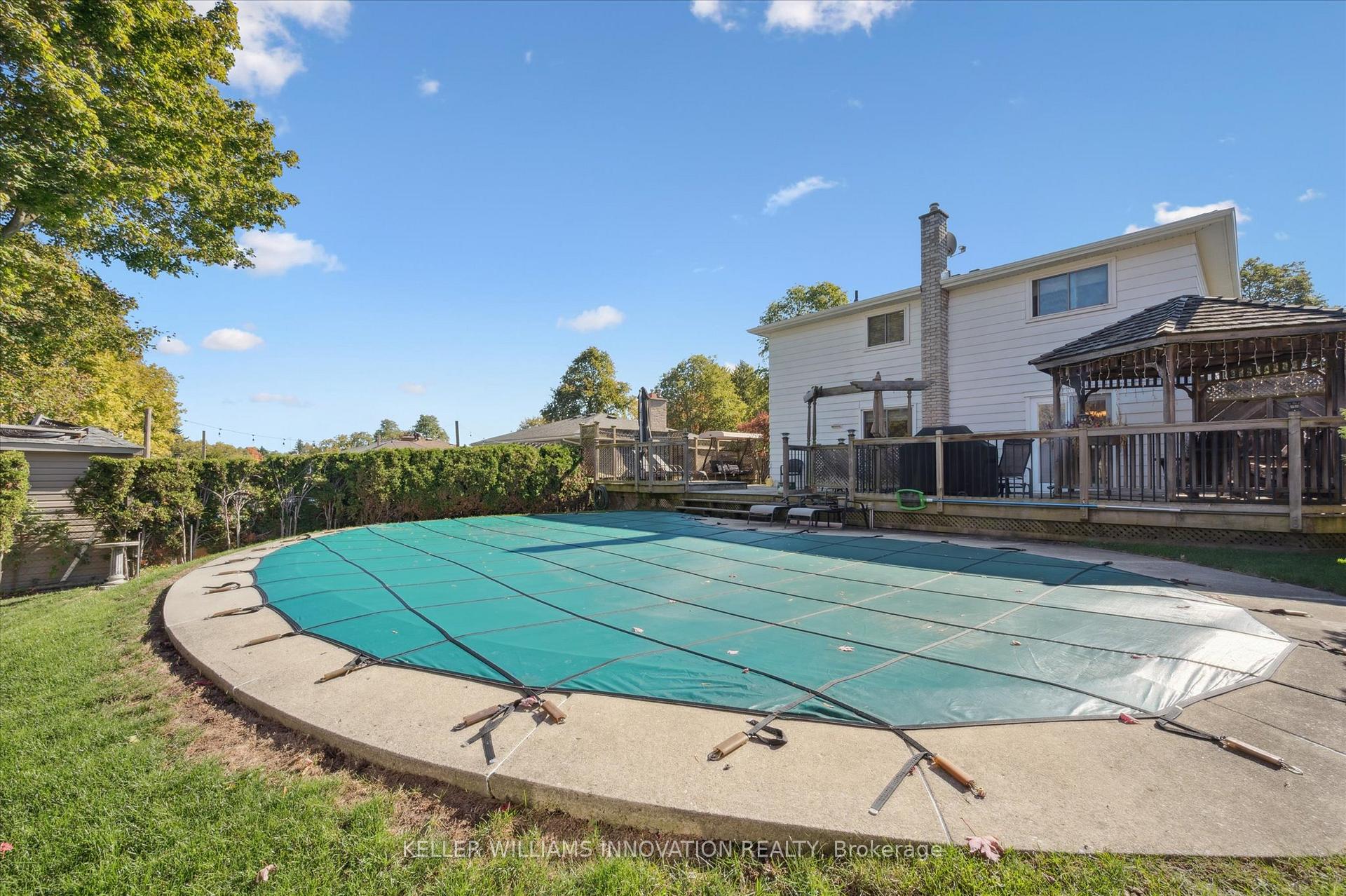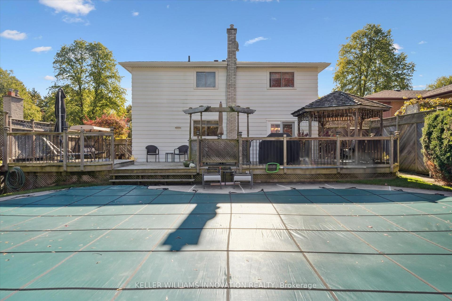 First time ever offered for sale! This lovely 2 storey home in Forest Heights has over 2,409 sq ft of total living space, 4 bedrooms and 3 bathrooms – It’s move in ready! The bright living room has a large front bay window and hardwood flooring that leads into the dining room with sliding glass doors leading to the back deck. The white kitchen with granite countertops, has plenty of cupboard space and a large island with breakfast bar, perfect for getting the kids fed on a busy school morning . Along with an additional side entrance, there is a main floor 2 piece powder room. Upstairs features 4 bedrooms, a large 4 piece main bathroom with jetted jacuzzi tub. The primary bedroom has walk-in closet space and 2 piece ensuite which could be renovated into a bigger bathroom if you’re desiring a private ensuite bath. The basement is fully finished with a sizeable rec room, laundry room and an additional room, perfect for a workshop, office or 5th bedroom. The backyard is built for summer fun with an 18’x36′ heated kidney shaped pool and a huge two tired deck with built-in gazebo! This home has a great location with easy access to The Boardwalk, Conestoga Parkway and HWY 401 – this could be your family’s perfect home.