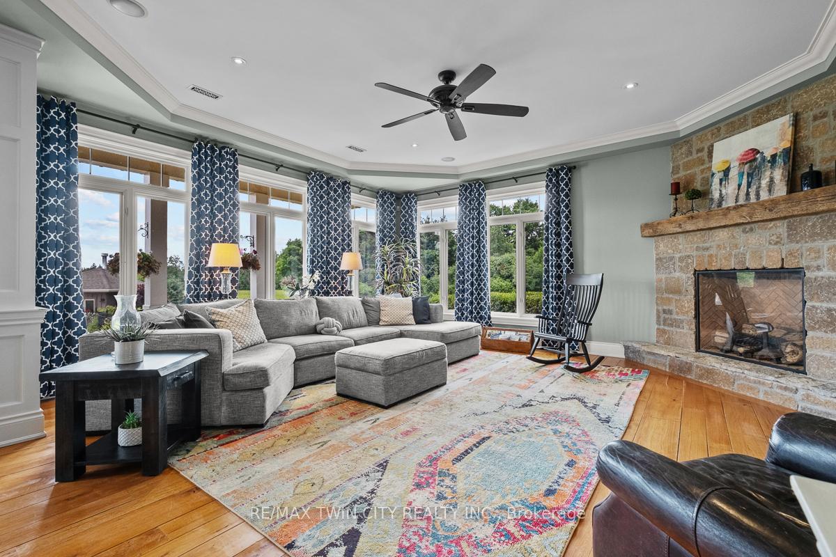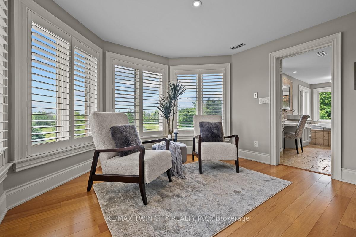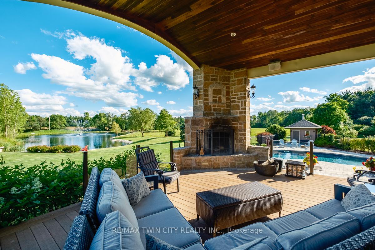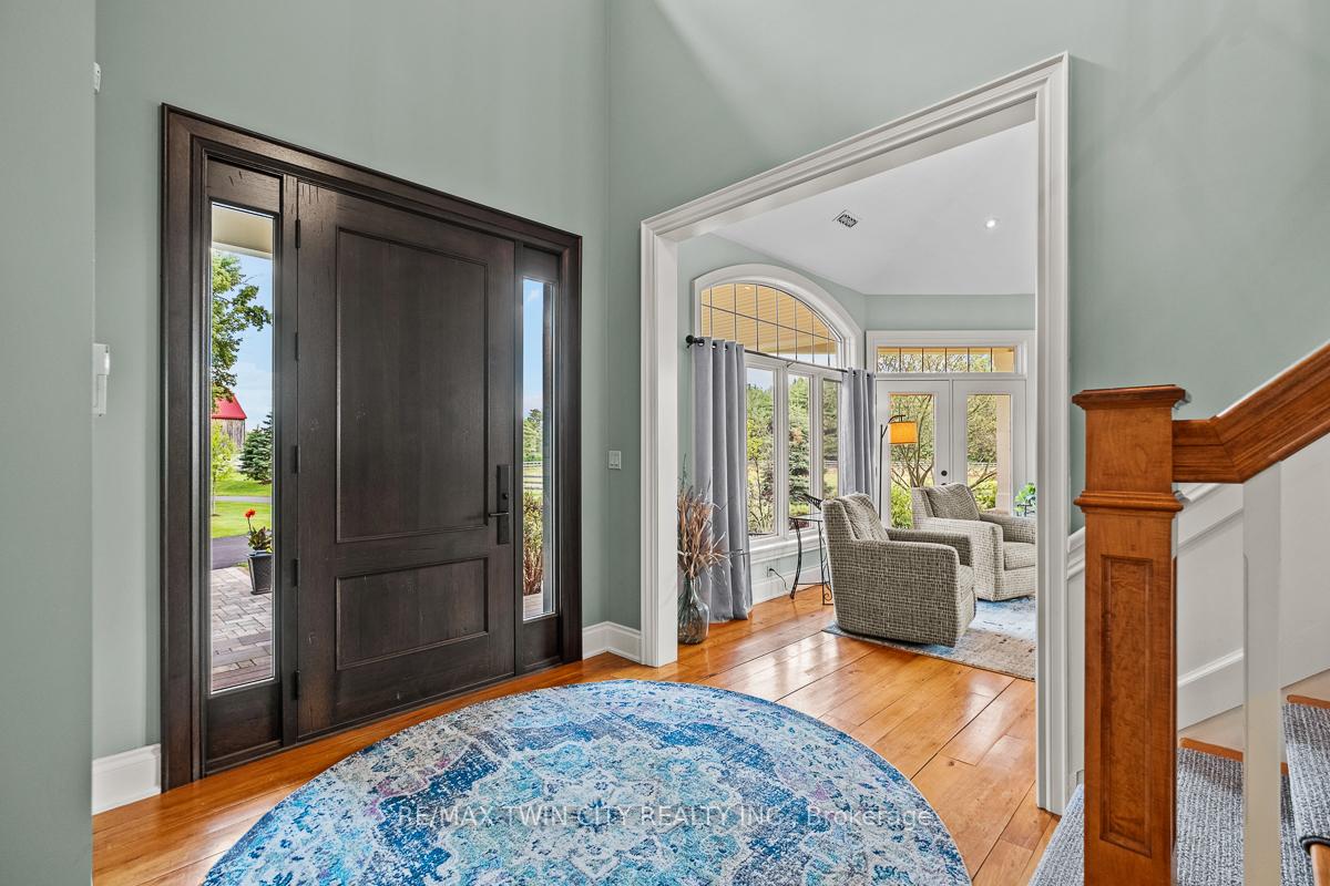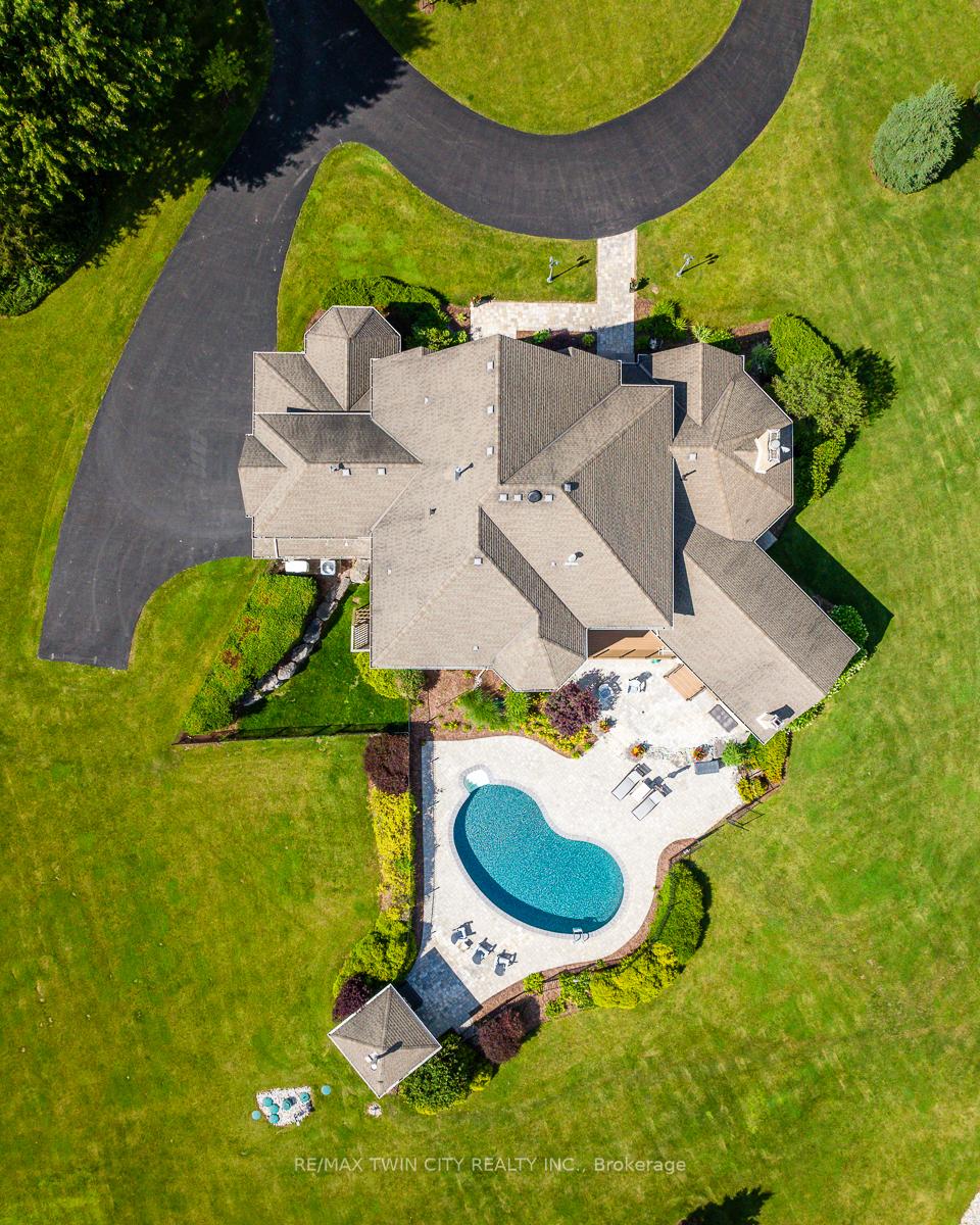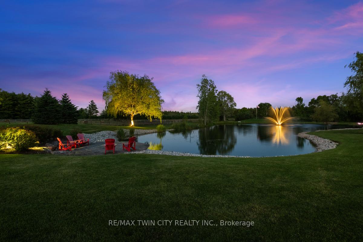 Scenic Flamborough is a part of southwestern Ontario known for farms and horse ranches. Located between Cambridge and Hamilton is this completely private, calendar book property on 90 acres. The home is set back from the main road with mature natural beauty as a buffer. A manicured tree line separates the driveway from the paddocks leading up to the home with approximately 15 acres of cultivable land, pastures, and gardens. The barn is suited for horses, complete with hydro, running water, four stalls, tack room, and massive hay loft. Attached to it is an oversized 3 bay garage providing space for utility vehicle storage and a workshop. In the centre of the property is a beautiful two story home at over 6800 square feet of finished space including the basement, with in-floor heating throughout the entire home and subdivided triple car garage. The board and batten/stone skirt exterior, wrap around porch, large windows, and soaring ceilings give the home its luxury farmhouse feel. It offers capacity for living and entertaining with 3 bedrooms plus a spa like primary suite, 6 bathrooms, beautiful living room with stunning fireplace, gourmet kitchen with butler pantry, and oversized dining room open to the nook and family room also featuring an elegant stone fireplace with timber mantel. The main floor office and laundry offer convenience. The basement was designed with recreation in mind offering a games room, wet bar and home theatre with surround sound and projection system. The basement level is also directly accessible from the garage via the second staircase. Relaxation extends to the outdoors with a backyard heated saltwater pool, 20′ x 30′ Muskoka room and wood burning stone fireplace and chimney. The views are gorgeous in every direction; to the south it overlooks a private acre pond complete with beach and aerating fountain, and behind it over 74 acres of forest with a 4 km network of trails for walking and riding. A truly stunning property!