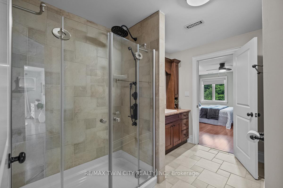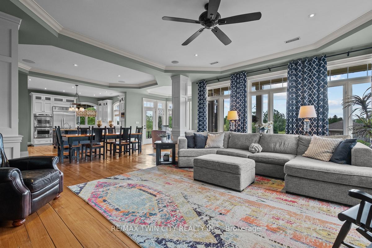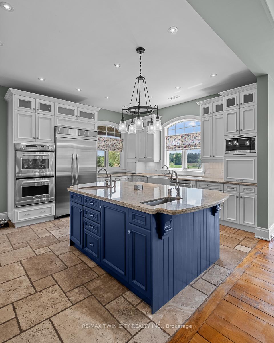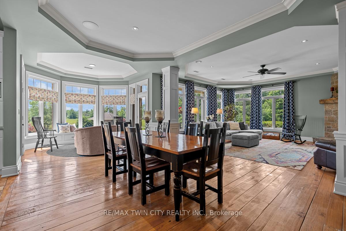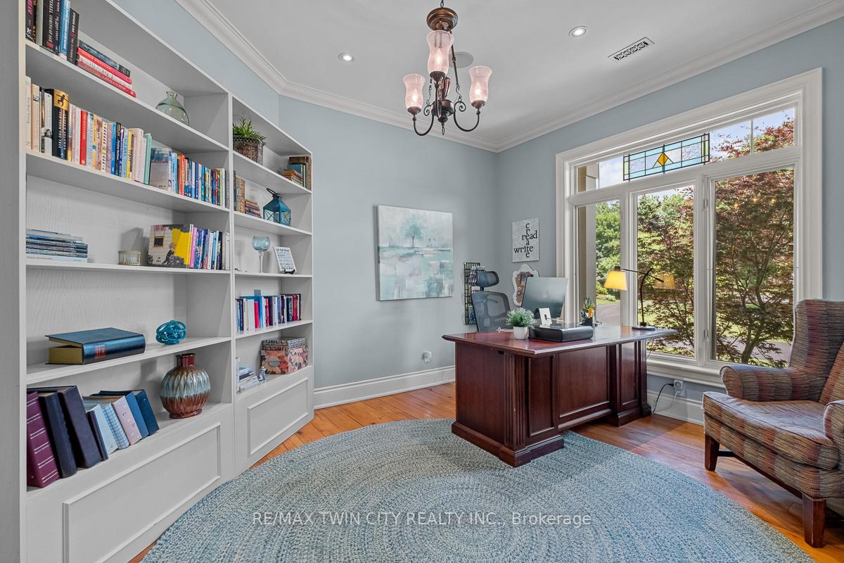 Scenic Flamborough is a part of southwestern Ontario known for farms and horse ranches. Located between Cambridge and Hamilton is this completely private, calendar book property on 90 acres. The home is set back from the main road with mature natural beauty as a buffer. A manicured tree line separates the driveway from the paddocks leading up to the home with approximately 15 acres of cultivable land, pastures, and gardens. The barn is suited for horses, complete with hydro, running water, four stalls, tack room, and massive hay loft. Attached to it is an oversized 3 bay garage providing space for utility vehicle storage and a workshop. In the centre of the property is a beautiful two story home at over 6800 square feet of finished space including the basement, with in-floor heating throughout the entire home and subdivided triple car garage. The board and batten/stone skirt exterior, wrap around porch, large windows, and soaring ceilings give the home its luxury farmhouse feel. It offers capacity for living and entertaining with 3 bedrooms plus a spa like primary suite, 6 bathrooms, beautiful living room with stunning fireplace, gourmet kitchen with butler pantry, and oversized dining room open to the nook and family room also featuring an elegant stone fireplace with timber mantel. The main floor office and laundry offer convenience. The basement was designed with recreation in mind offering a games room, wet bar and home theatre with surround sound and projection system. The basement level is also directly accessible from the garage via the second staircase. Relaxation extends to the outdoors with a backyard heated saltwater pool, 20′ x 30′ Muskoka room and wood burning stone fireplace and chimney. The views are gorgeous in every direction; to the south it overlooks a private acre pond complete with beach and aerating fountain, and behind it over 74 acres of forest with a 4 km network of trails for walking and riding. A truly stunning property!