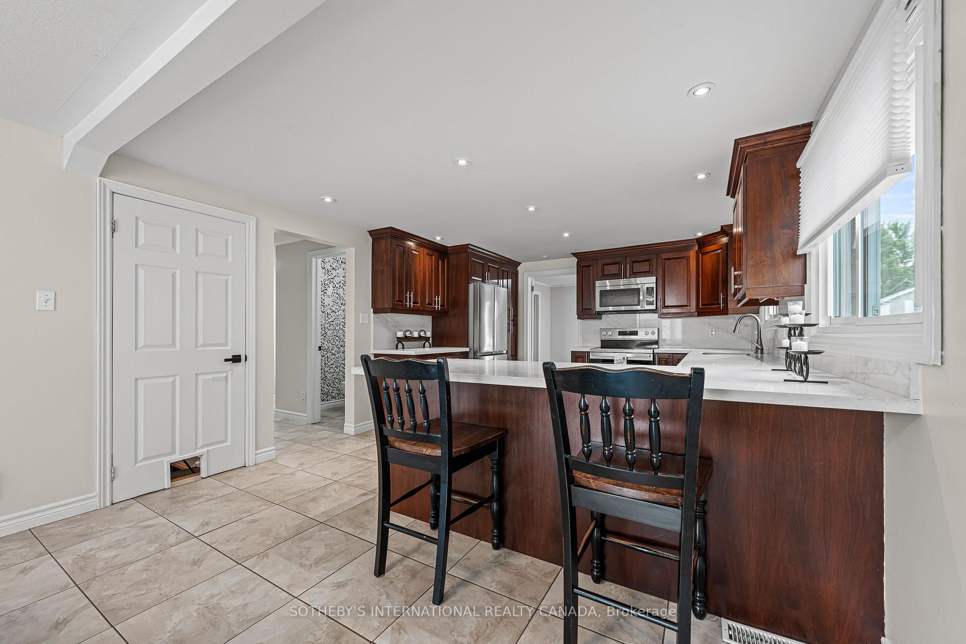 Welcome to 154 Covington Crescent. Quietly located on a corner lot in the Forest Hill neighbourhood of Kitchener. This beautifully maintained home offers over 2,000 SF of living space with modern updates throughout. Greeted by the warm and inviting living room with a gas fireplace- great for entertaining. Leading you into a flex/bonus room for an additional family room, den or home office. The stunning kitchen features Quartz counters and backsplash, beautiful walnut cabinetry with SS appliances overlooking the dining area with glass sliding doors to the rear yard. Heading to the upper level you will find upgraded stairs and railings, a spacious primary bedroom featuring large double closets, three additional generously sized bedrooms with an updated five piece bathroom- perfect for your family’s comfort. The partially finished lower level features a recreation room for more living space, a rough-in for a bathroom, utility room with laundry facility and lots of storage space. A newer oversized deck in the backyard for all your hosting needs and/or outdoor dining experience. The fully fenced spacious yard offers plenty of space to add a playground or pool in the future. Notable features include: roof (2019), driveway (2022), deck (2022) and eavestrough (2022), bathroom & kitchen (2025). Conveniently close to schools, parks, public transit, shopping and amenities. Don’t miss your opportunity to live at 154 Covington Crescent, completely move-in ready for any growing family.