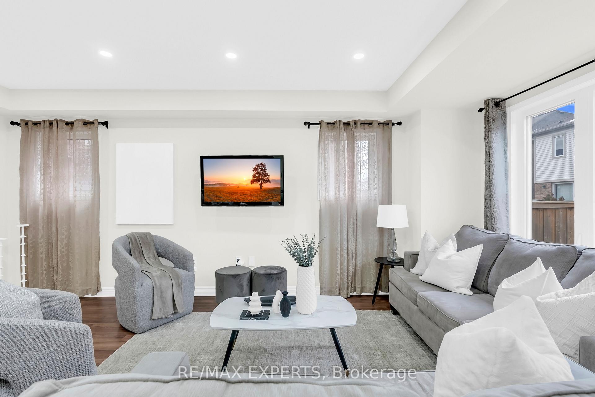 Experience pride of ownership in this bright, spacious, and meticulously maintained end unit, offering the privacy and feel of a semi-detached home. With approximately 2,000 sq ft of functional living space, this home is perfectly situated in Milton’s family-friendly Clarke neighbourhood. The main level features durable laminate flooring, Pot lights, Freshly painted, Big windows, enhancing the bright, open-concept layout. You are welcomed into a large foyer with a walk-in closet and large living room perfect for entertainment. The Great room flows seamlessly into the dining area, which boasts large windows and a convenient walkout to the private backyard. The Large Kitchen is designed for functionality, featuring a breakfast bar, complementing backsplash, upgraded stainless steel appliances, and ample custom cabinetry. Upstairs, you will find four generously sized bedrooms and two full washrooms. The layout is ideal for a growing family, ensuring comfort and privacy for everyone. The spacious, untouched basement offers a unique opportunity to create a separate side entrance, perfect for developing a future in-law suite or generating additional rental income. This property is truly turn-key and move-in ready, located close to highly rated schools, extensive shopping, dining, and entertainment options. Its location is highly desired for its quick access to the 401 and all major commuter routes, making daily travel effortless. Don’t miss this exceptional starter home!