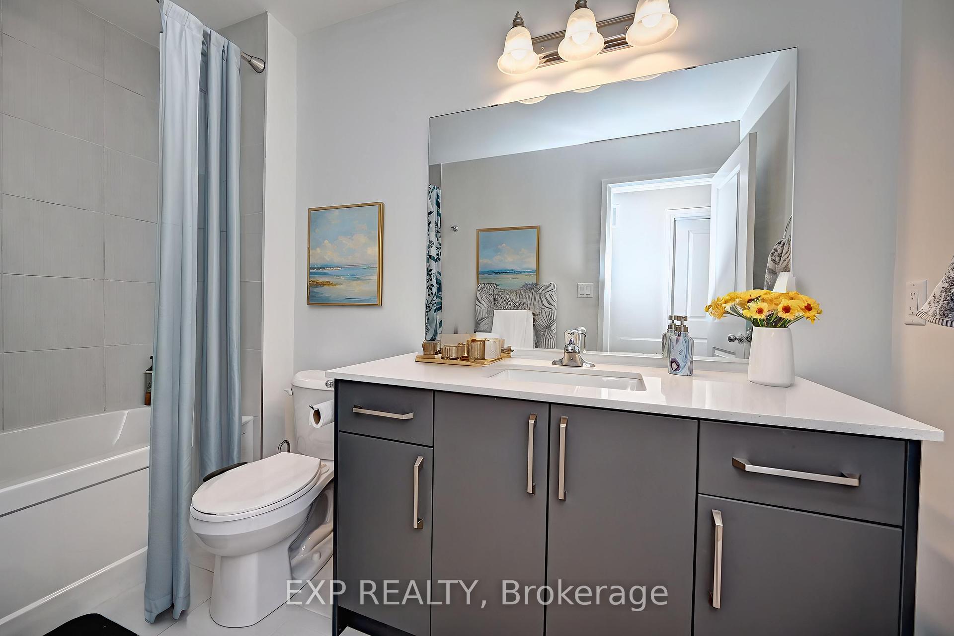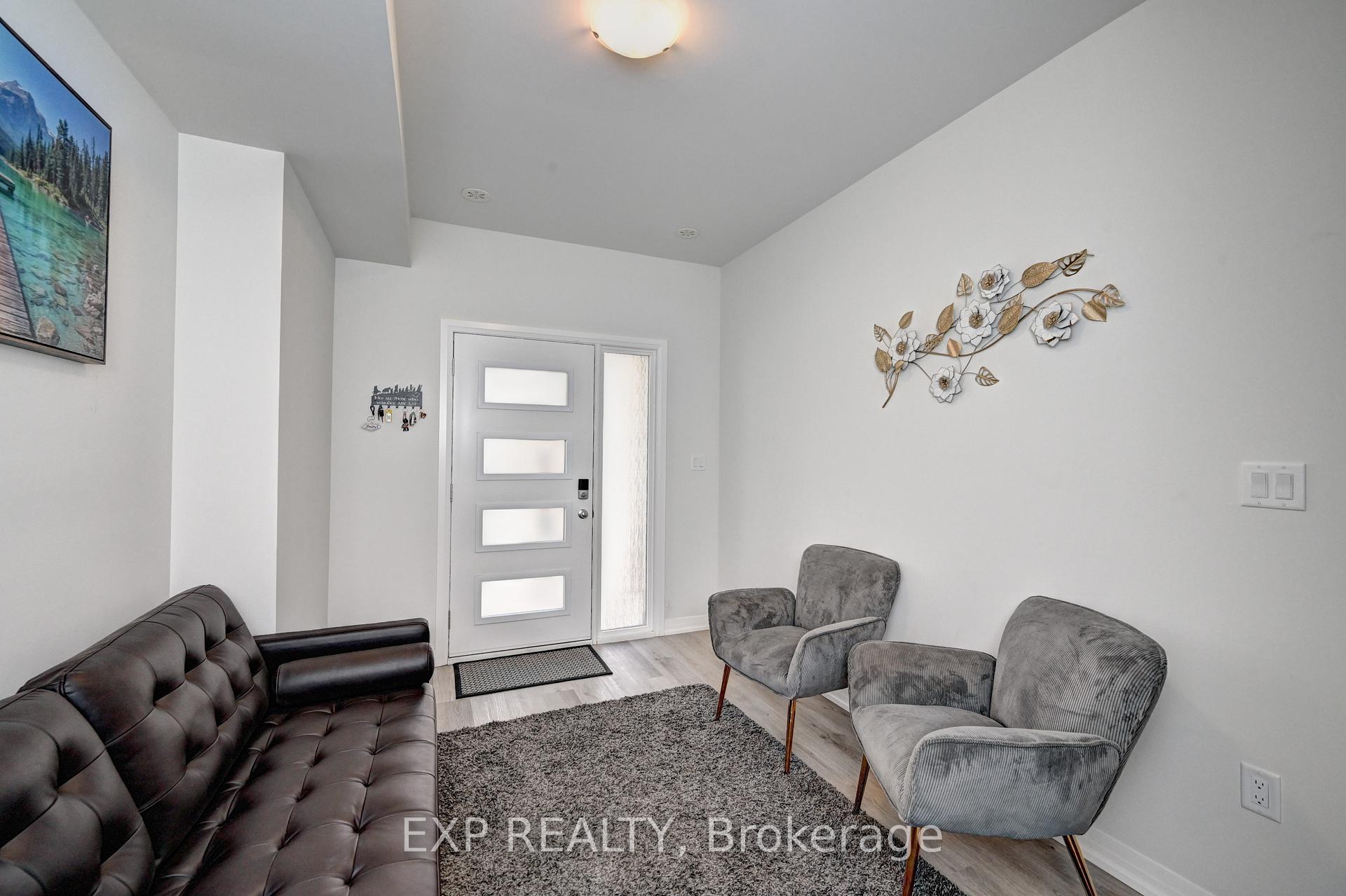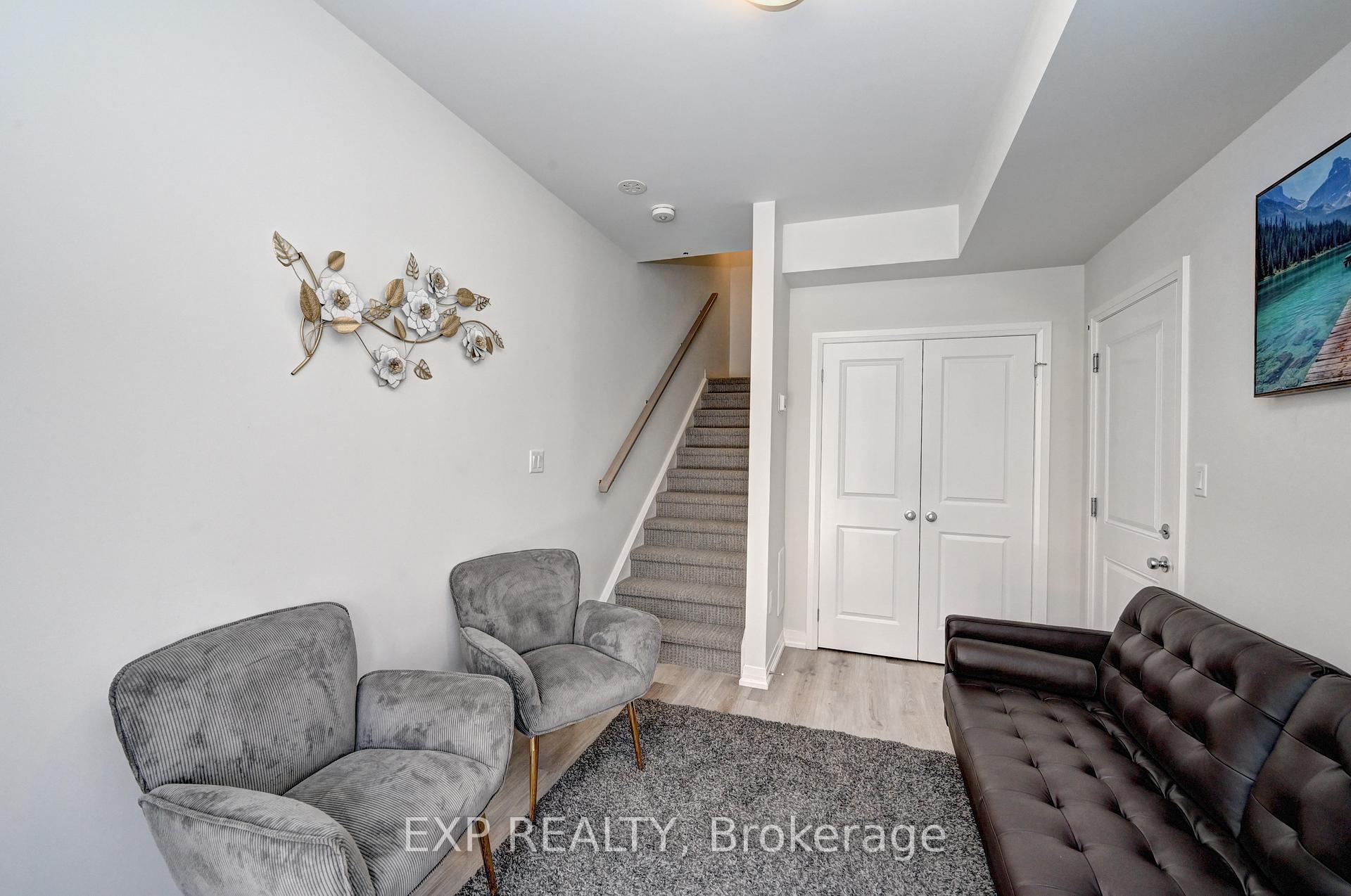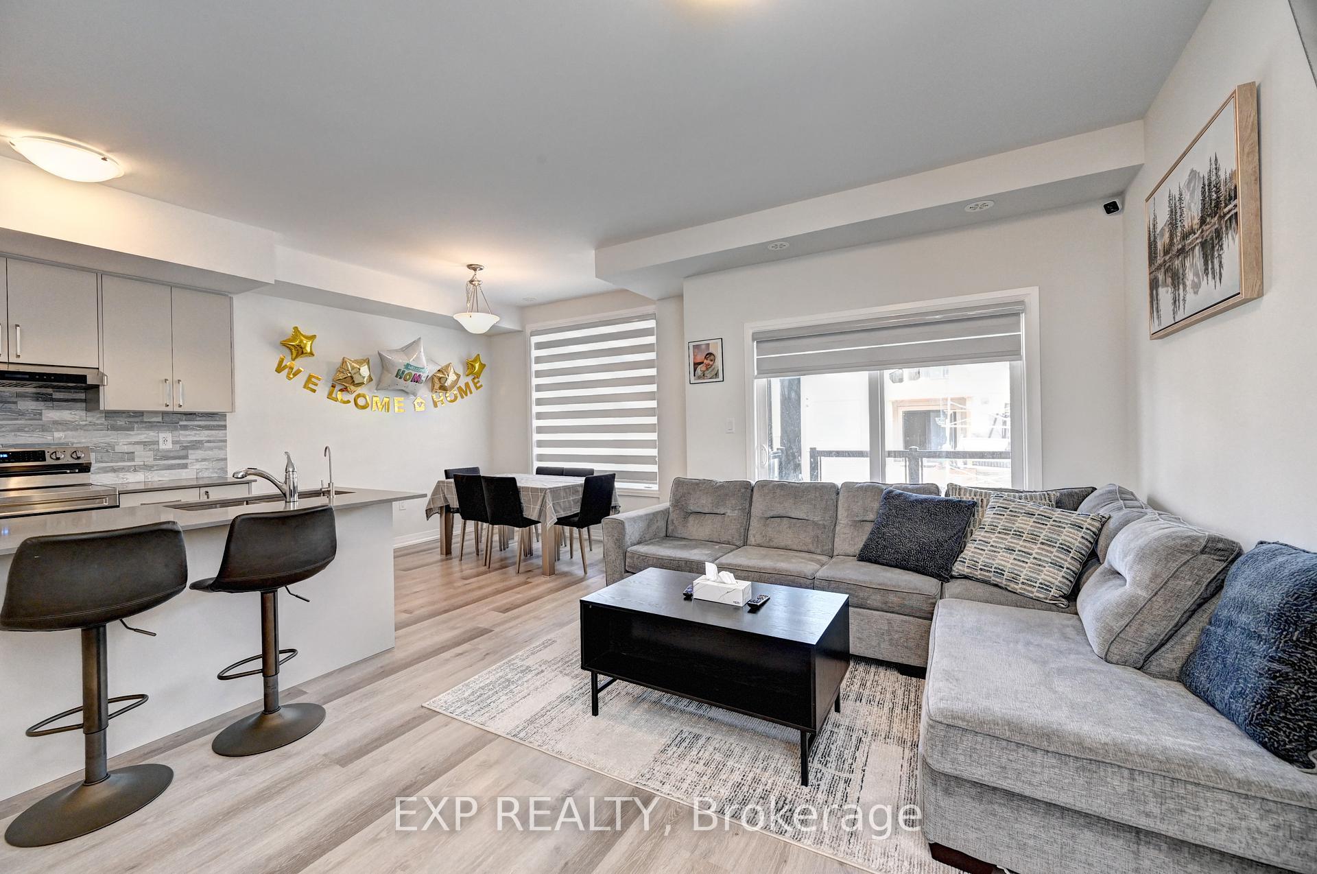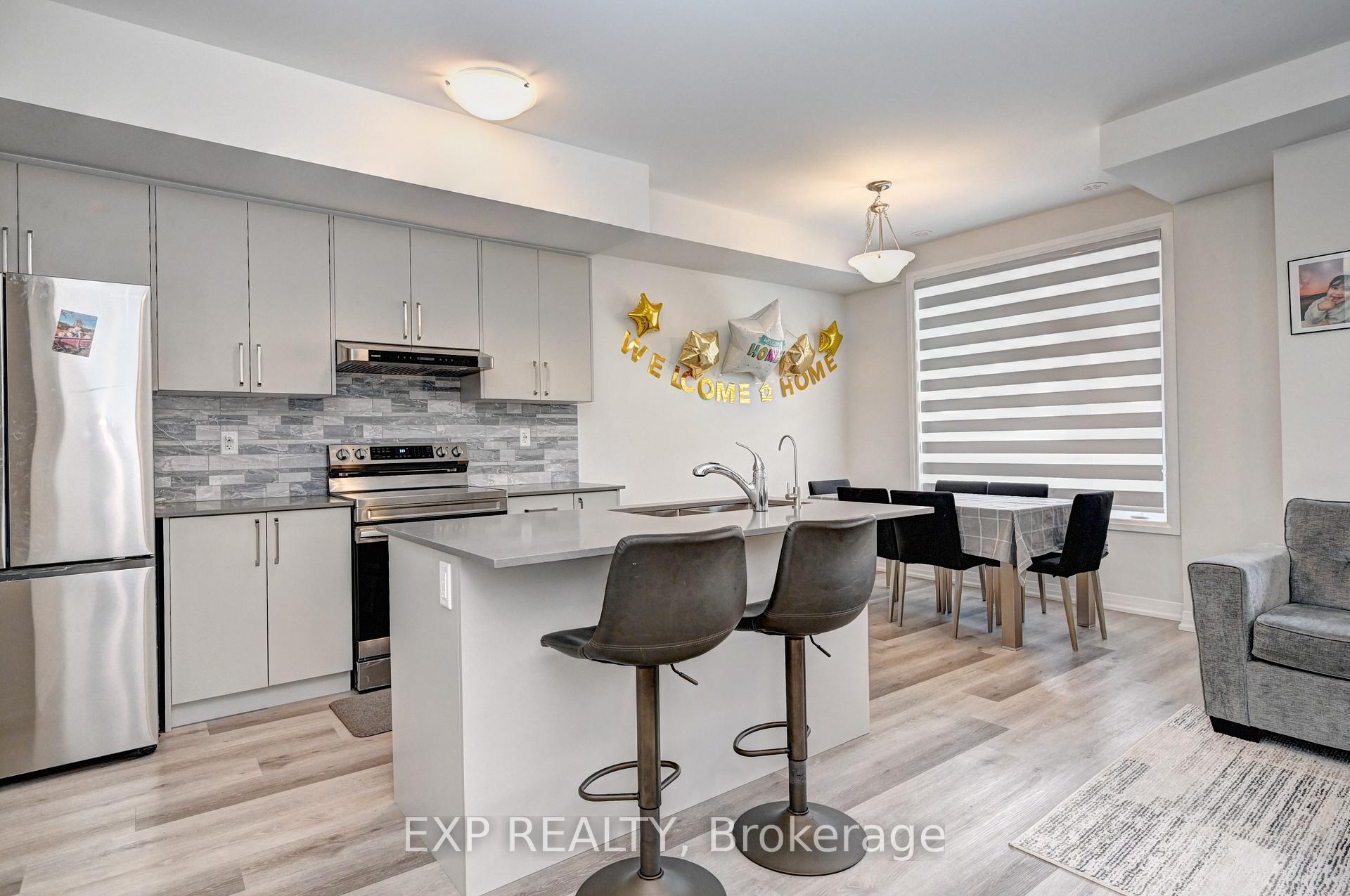 Welcome to contemporary comfort in a fresh, vibrant neighbourhood. This less-than-one-year-old, meticulously maintained townhouse blends modern design with thoughtful upgrades. The open-concept main floor is filled with natural light and features an extended cabinet kitchen, breakfast bar extension, water line ready fridge, and stainless steel appliances perfect for cooking, entertaining, and everyday living. Enjoy two private balconies for morning coffee, evening relaxation, or outdoor dining. Upstairs, you’ll find two generously sized bedrooms, a full bathroom with an extra storage drawer in the upper washroom, and a convenient powder room on the main floor. Comfort meets efficiency with individual climate control on every floor and energy-efficient systems to keep utility costs low year-round. Located in a desirable new community, this home is minutes from Highway 401, schools, parks, and trails making it ideal for commuters and families alike. Property taxes not assessed yet. Some images are virtually staged. Book a private showing today!