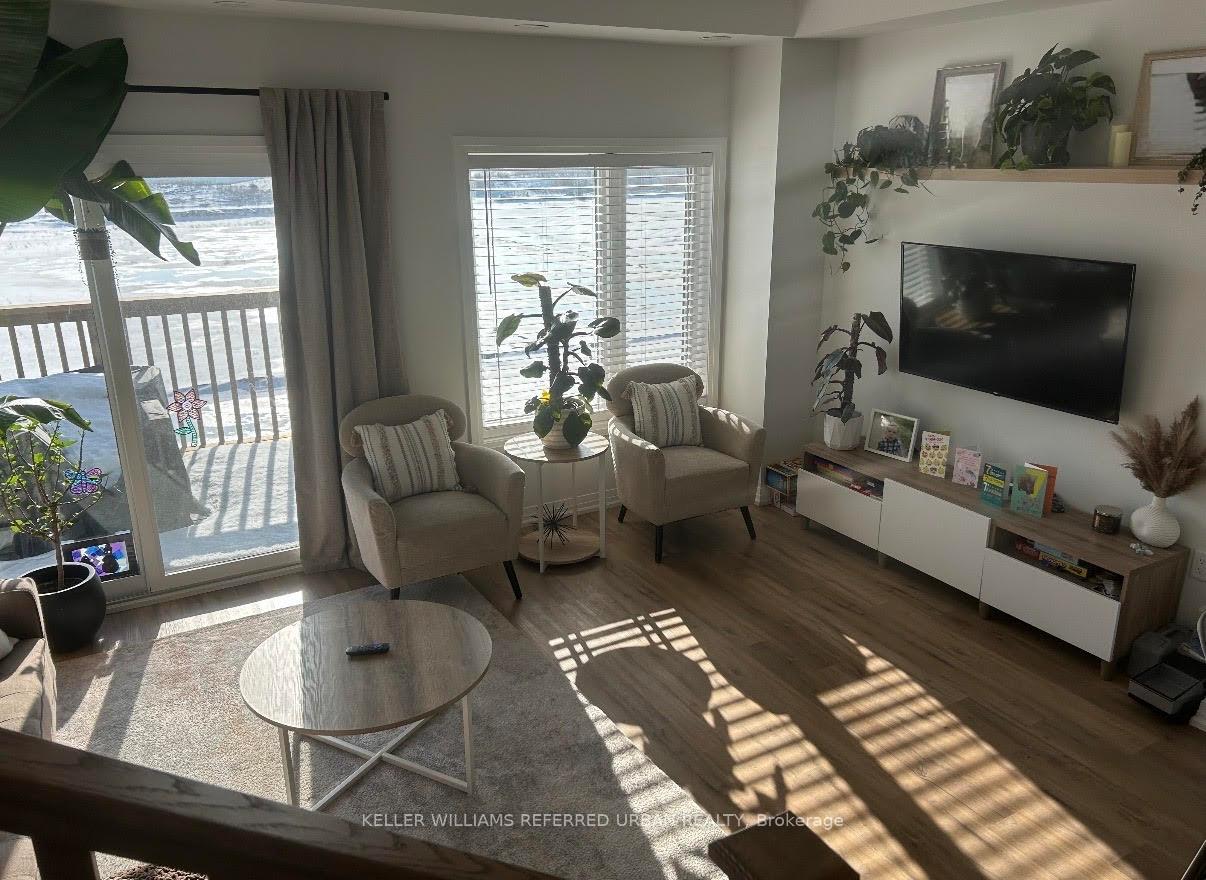 A sophisticated, impeccably maintained 3-bedroom, 3-bathroom townhouse offering approximately 1,500 sq ft of beautifully finished, turnkey living in one of Cambridge’s most desirable communities. Thoughtfully designed with both style and functionality in mind, the open-concept main level is filled with natural light and enhanced by 9-foot ceilings, wide plank flooring, and expansive windows that create an airy, elevated atmosphere. The seamless flow is ideal for both everyday living and refined entertaining. The chef-inspired kitchen serves as the heart of the home, showcasing designer finishes including crisp white cabinetry, quartz countertops, stainless steel appliances, a timeless subway tile backsplash, and a generous centre island perfect for gathering.The dining area overlooks the backyard and private deck through oversized windows, creating a bright and inviting setting for family meals or hosting guests. Step outside to the deck an ideal extension of the living space, perfect for summer barbecues, morning coffee, or relaxed evenings outdoors. Upstairs, well-proportioned bedrooms offer comfort and privacy, including a spacious primary retreat. The smart layout maximizes space and functionality, delivering low-maintenance luxury without compromise. Complete with both garage and driveway parking, this home offers rare convenience and everyday practicality an exceptional advantage in townhouse living. Ideally situated in a family-friendly neighbourhood close to parks, top-rated schools, shopping, and major commuter routes, this home offers the perfect balance of upscale living and everyday convenience. An exceptional opportunity for discerning buyers seeking designer style, comfort, and long-term value in Cambridge.
