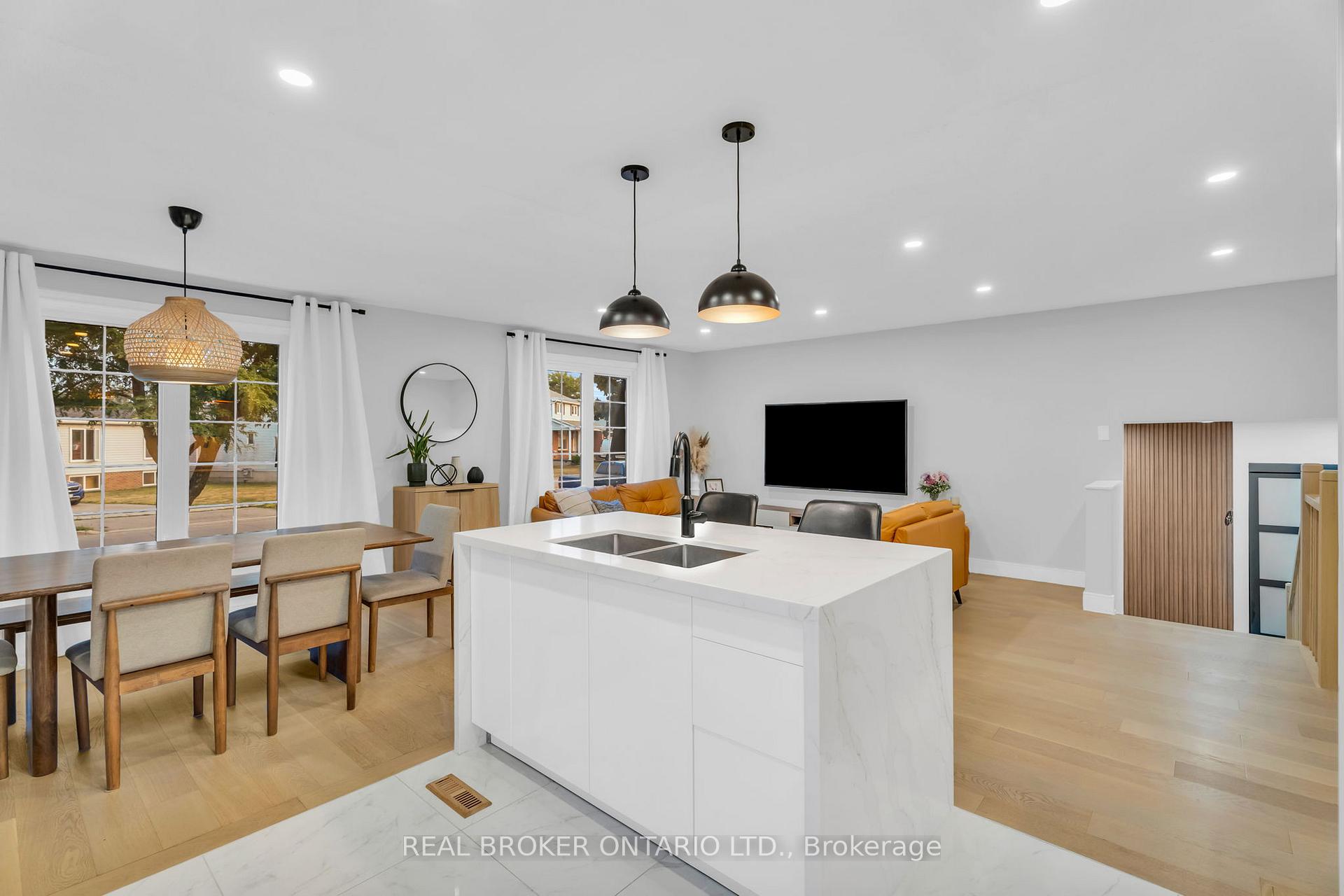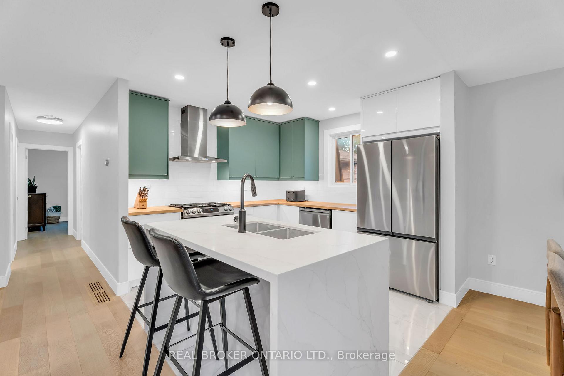 Fully renovated, turn-key, and move-in ready! This stunning home blends modern style with premium finishes, featuring natural finish engineered hardwood throughout the main floor with flush vents, tons of upgrades throughout and an open-concept design. This home is perfect for multi-generational living, it offers two kitchens and a separate entrance to the lower level just add a dividing wall for complete privacy and separation.The bright main floor is anchored by a waterfall quartz island, sleek quartz counters, and stainless steel appliances. The spacious living area is filled with natural light and open concept perfect for everyday living or evening entertaining!Access from the foyer to a fully fenced backyard, outside is complete with an irrigation system for easy gardening and maintaining, outside access to garage from back deck.A large shed offers extra storage, and the prime location puts you close to schools, parks, and amenities. Every detail has been thoughtfully updated, so you can simply unpack and enjoy.