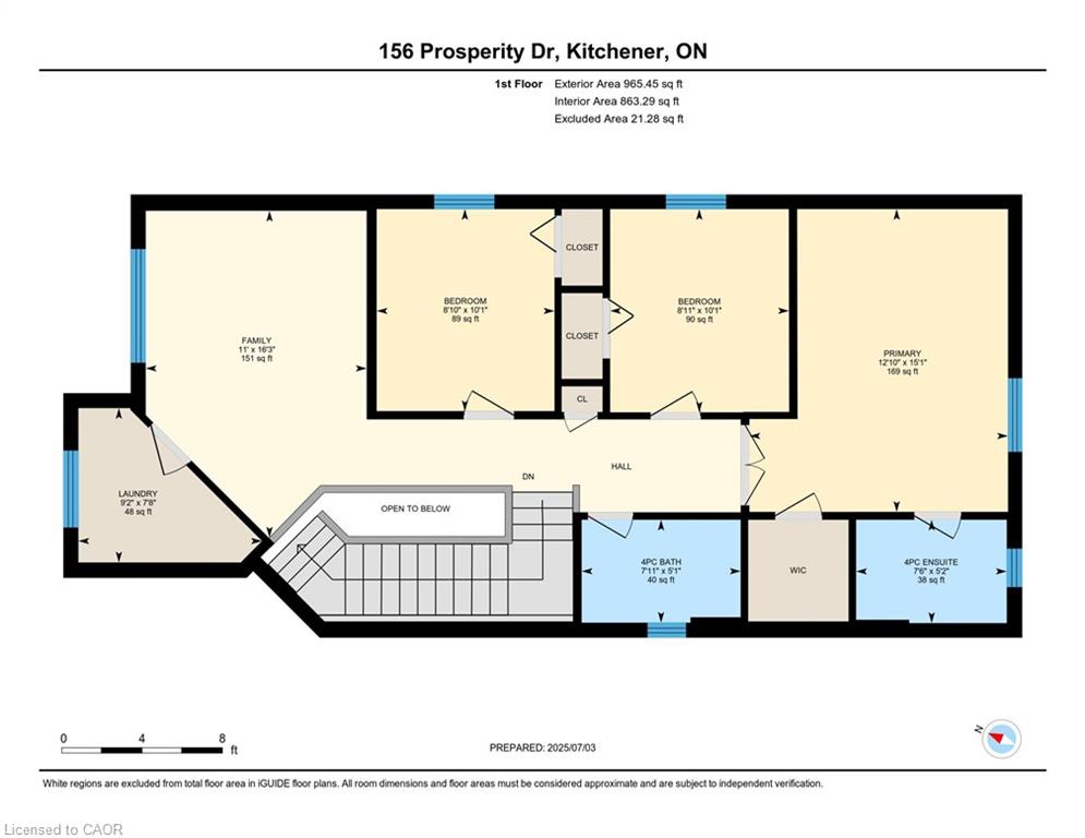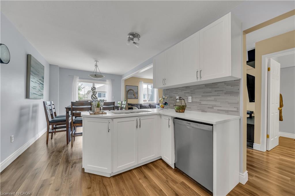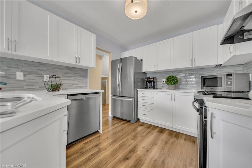 Welcome to 156 Prosperity Drive, Kitchener, located in the heart of the family-friendly and highly desirable Laurentian Hills neighbourhood. This beautifully maintained detached home with a walkout basement is an ideal choice for first-time buyers, downsizers, or investors alike. From the moment you arrive, you’ll be captivated by its charming curb appeal, well-kept exterior, and ample parking for 3 cars, 1 in garage, 2 in driveway. Inside, is a carpet-free, inviting foyer leading into a bright office, a perfect flex space for a home office or quiet retreat. The home underwent significant renovations in 2019, adding modern flair & comfort throughout, also including brand new water softener. The fully upgraded kitchen boasts quartz countertops, a chic backsplash, stainless steel appliances & timeless white cabinetry. Adjacent is a cozy dining area ideal for daily meals & family gatherings. A convenient 2pc powder room completes the main level. Upstairs, unwind in the sunlit family room, perfect for movie nights or quality family time. This level features three spacious bedrooms and two full bathrooms, including a spacious primary suite with a walk-in closet and private 4-piece ensuite. Another amazing feature of this beautiful house is upstairs laundry area, offering daily convenience & ease. The fully finished walkout basement expands your living space with a generous recreation room, great for entertaining, a kids’ play area, or a home gym. You’ll also find an additional 2-piece bathroom, offering even more functionality for family or guests. Step outside to a private, fully fenced backyard, complete with a raised deck and lots of green space — ideal for summer BBQs, outdoor play, or hosting family gatherings. Situated just minutes from schools, shopping centres, public transit, and quick access to Highway 7/8, this home delivers exceptional value and location. Don’t miss your opportunity to own this turn-key gem in a thriving community, Book your showing today!