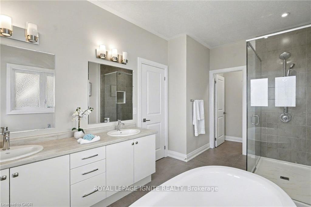 This stunning 4-bedroom, 3-bath custom-built Activa Brookstone model by M Builders is a true gem. With 9-ft ceilings throughout, the open-concept main floor is perfect for entertaining, featuring a chef’s kitchen with soft-close cabinetry, stainless steel appliances, and elegant hardwood and ceramic floors. The second level offers two walkouts to an upper deck and a luxurious primary suite with a 5-piece ensuite, including a glass shower and soaker tub. Located within walking distance to schools, parks, and trails, and just 10 minutes from Highway 401, this immaculate home combines comfort with convenience. Don’t miss out!