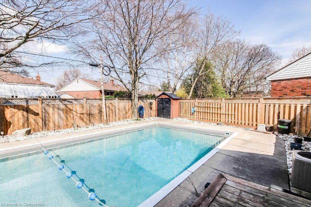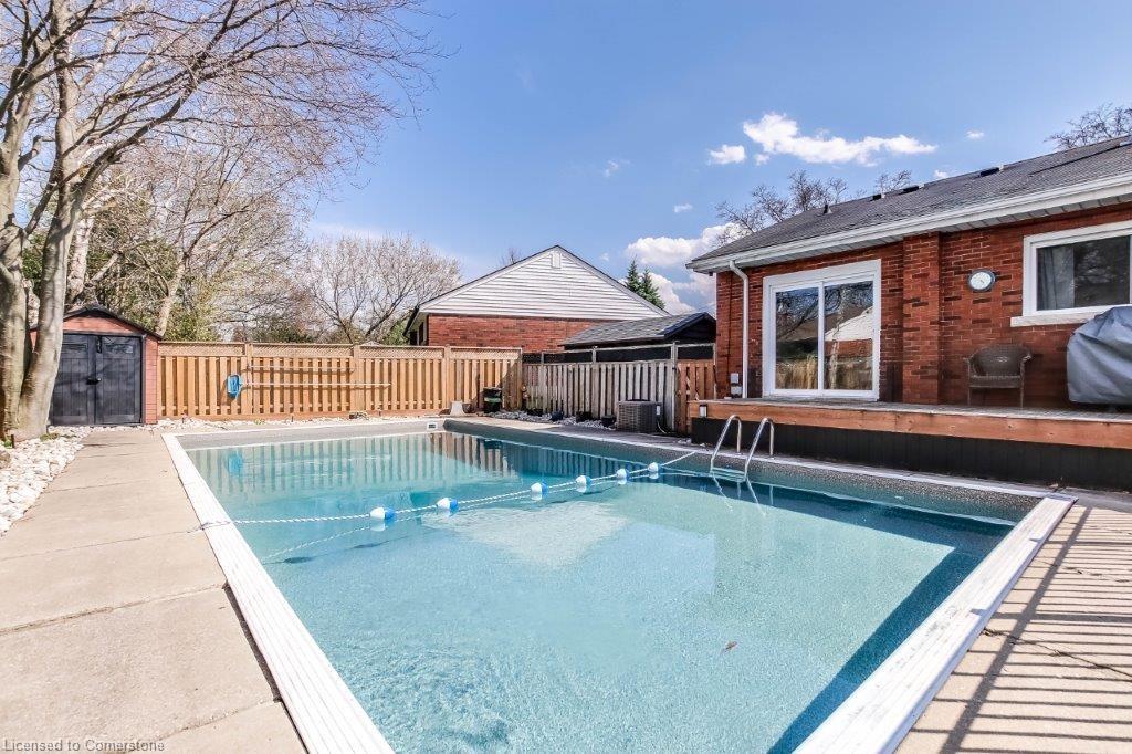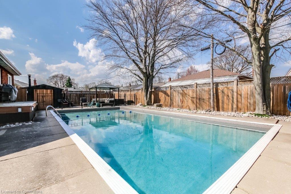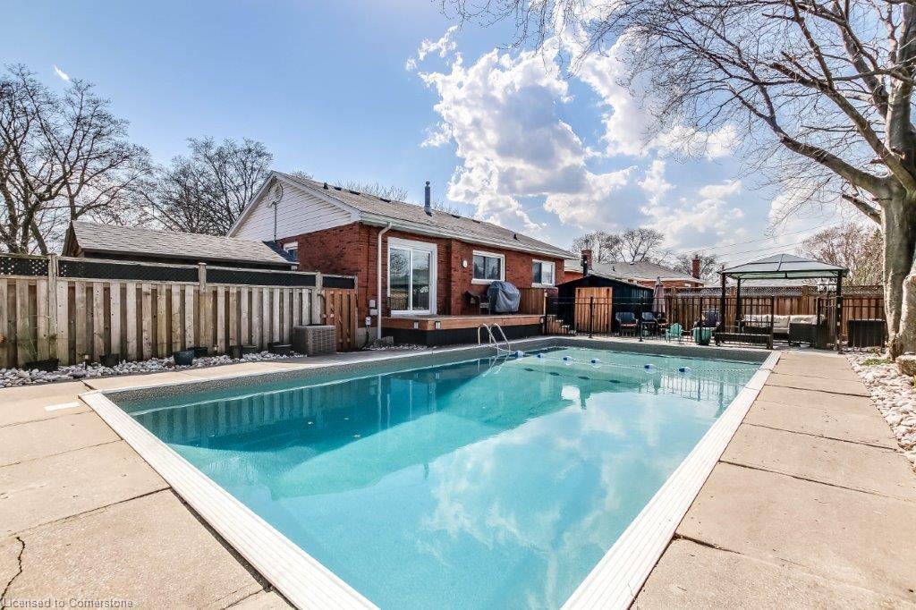 Looking for a well built functional home in a well lit child friendly area? This 3+1 bedroom, 2 full bathroom beauty is tucked away on a peaceful cul-de-sac in Hamilton’s sought-after Upper Mountain. Step into your own private backyard oasis, complete with a heated inground pool (18’x36′) featuring a new liner and gas heater (2023), a cozy gazebo, and a relaxing sitting area—perfect for entertaining or soaking up the sun in style. Inside, you’ll find a bright, functional layout with plenty of storage, The kitchen is fully equipped with a gas stove, stainless built-in microwave and stainless steel fridge. The living room flows seamlessly off the dining area, creating the perfect space for everyday living and entertaining. In this home, you will find a spacious finished lower level with a fourth bedroom or home office, and a sauna off the bathroom for your own personal spa experience. Lots of pot lighting creates a great atmosphere Outside, there’s a large shed for all your storage needs and a paved driveway offering ample parking. Located close to parks, schools, shopping, and highway access—this home checks all the boxes. Make this home your own!