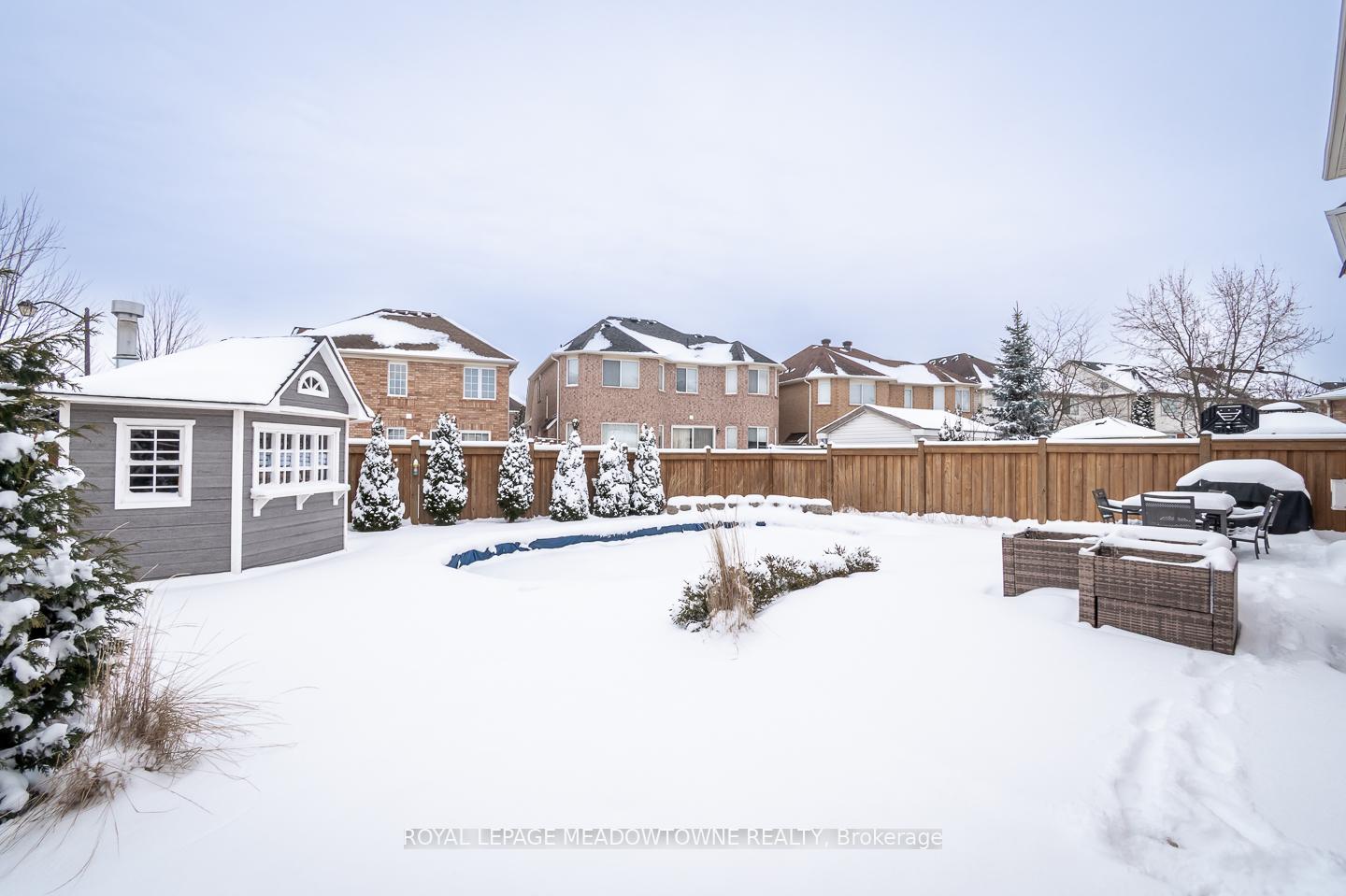 Welcome to 1592 French Garden – a beautiful Wyndham Corner model by Mattamy, perfectly positioned in Milton’s sought-after Beaty neighbourhood. This elegant 2-storey detached home offers over 2,650 sq ft of liveable space, including finished additional finished living space below, featuring 3+1 bedrooms and 3.5 baths. Set on a premium pie-shaped corner lot facing Beaty Trail Park and a peaceful greenspace pond, the home boasts a stunning backyard oasis with over $125,000 in professional landscaping, a pool, gazebo with power, custom Cape Cod style vertical siding and gas line for BBQ – ideal for entertaining. Inside, you’ll find fresh paint throughout, custom woodworking and wainscotting, California shutters, and hardwood flooring throughout. The bright, updated white kitchen features solid stone counters, stainless steel appliances, a new tile backsplash, and breakfast bar seating with a walkout to the backyard. Enjoy multiple living spaces, including a formal dining room, front family/office, and a cozy living room with gas fireplace. Upstairs offers three generous bedrooms, upper-level laundry, and a primary suite with 4pc ensuite and walk-in closet. The finished basement extends your living area with a rec room and electric fireplace, kitchenette, 3pc bath, and a flex/bedroom space – perfect for guests or a home gym. With parking for 3, interior garage access conveniently situated adjacent to finished basement, and a covered front porch, this home seamlessly blends comfort, style, and convenience in one of Milton’s most desirable communities.