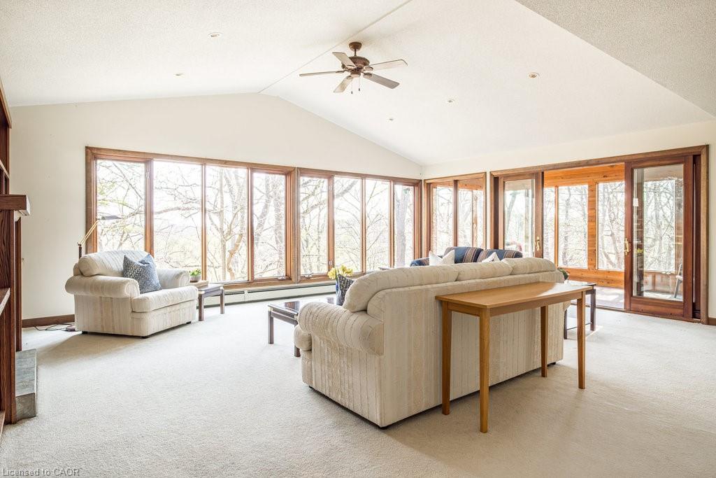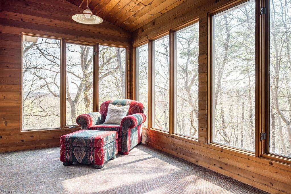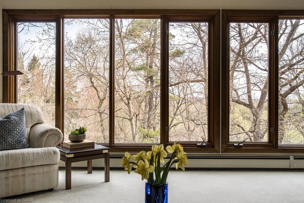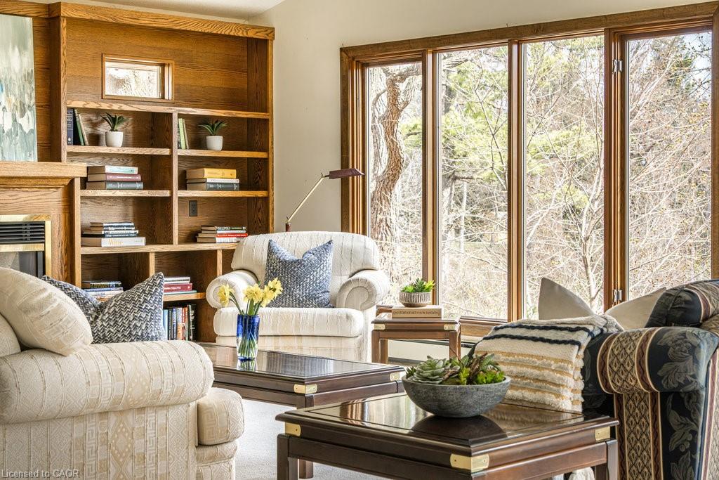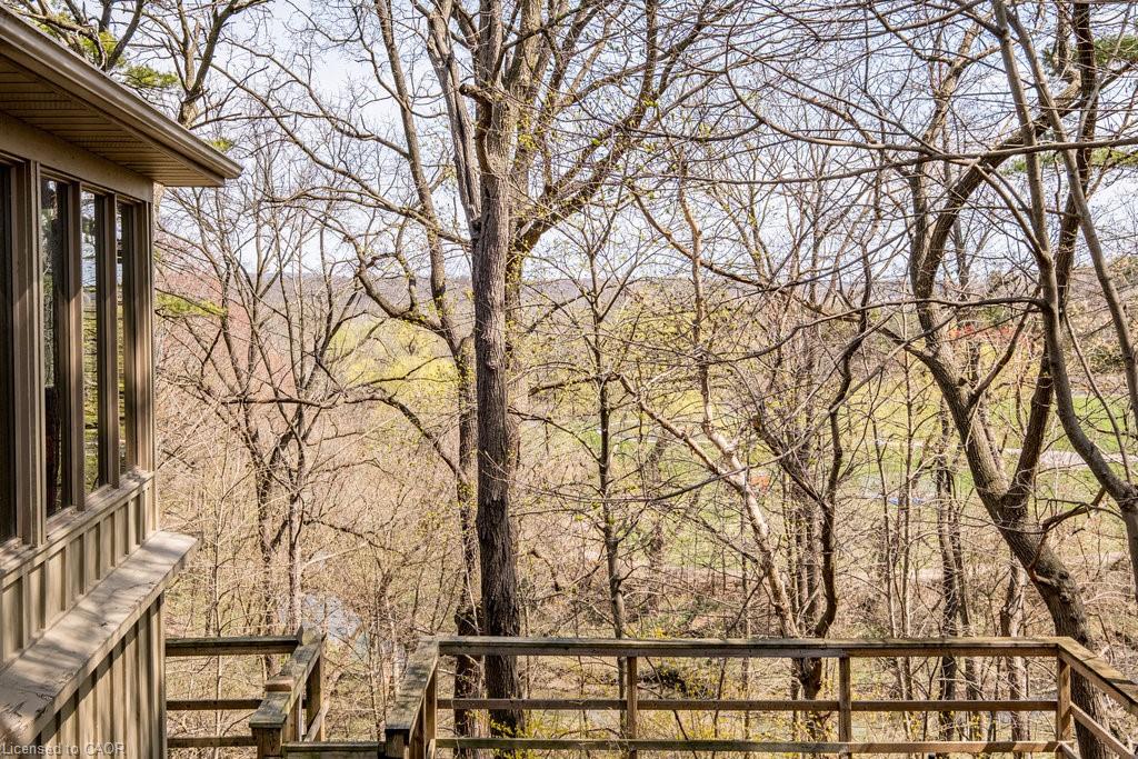 Awe inspiring ravine property offering 2400 sq. ft. of main floor living space + 2200 sq. ft. lower level with walk out and separate entrance. This c. 1996 custom build offers remarkable uninterrupted forest views and a truly amazing space. The open concept main floor living area is a dream – floor to ceiling windows, built in book cases, gas fireplace and indoor/outdoor room. The family sized kitchen enjoys ample cabinets, counters, built in book cases and eat in table. The primary bedroom offers vaulted ceiling, ensuite privilege, large closet, loads of natural light and walk out to deck. The large full bath enjoys separate shower and soaker tub and one of a kind groovy design. The second bedroom is also home to lots of natural light, soaring ceiling and ample closet space. The expansive downstairs with 3rd bedroom (easily converted to 2 and designed with this in mind!) enjoys walk out to back patio. Huge principal rooms, full bath and separate entrance makes this a perfect would be in-law suite. Designed with ageing in place in mind the property enjoys ramp access, decks for outdoor enjoyment and second suite potential. Nothing like it!