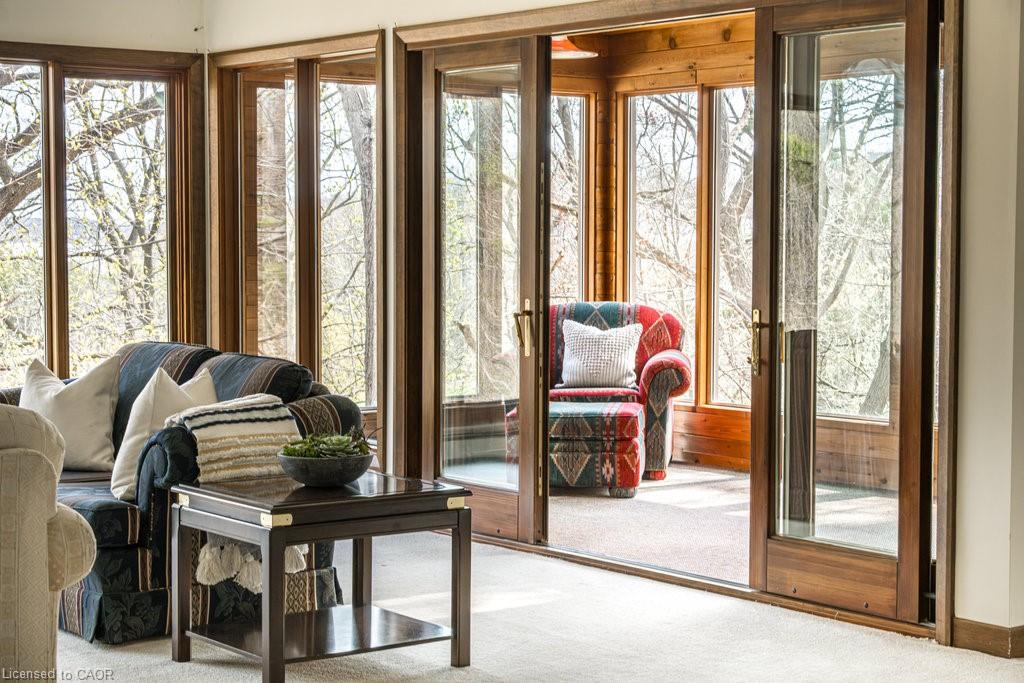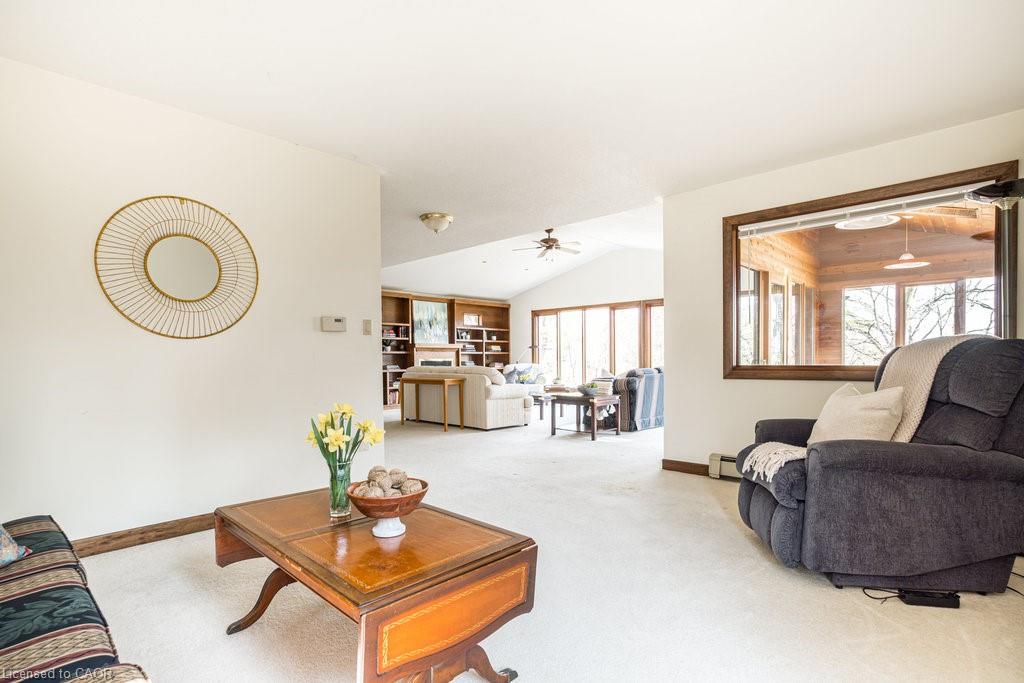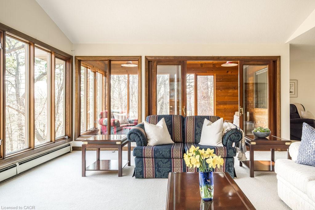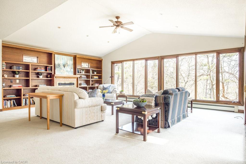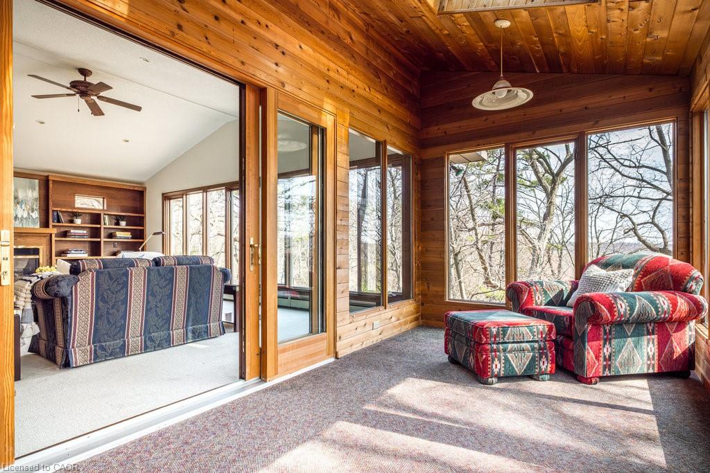 Awe inspiring ravine property offering 2400 sq. ft. of main floor living space + 2200 sq. ft. lower level with walk out and separate entrance. This c. 1996 custom build offers remarkable uninterrupted forest views and a truly amazing space. The open concept main floor living area is a dream – floor to ceiling windows, built in book cases, gas fireplace and indoor/outdoor room. The family sized kitchen enjoys ample cabinets, counters, built in book cases and eat in table. The primary bedroom offers vaulted ceiling, ensuite privilege, large closet, loads of natural light and walk out to deck. The large full bath enjoys separate shower and soaker tub and one of a kind groovy design. The second bedroom is also home to lots of natural light, soaring ceiling and ample closet space. The expansive downstairs with 3rd bedroom (easily converted to 2 and designed with this in mind!) enjoys walk out to back patio. Huge principal rooms, full bath and separate entrance makes this a perfect would be in-law suite. Designed with ageing in place in mind the property enjoys ramp access, decks for outdoor enjoyment and second suite potential. Nothing like it!