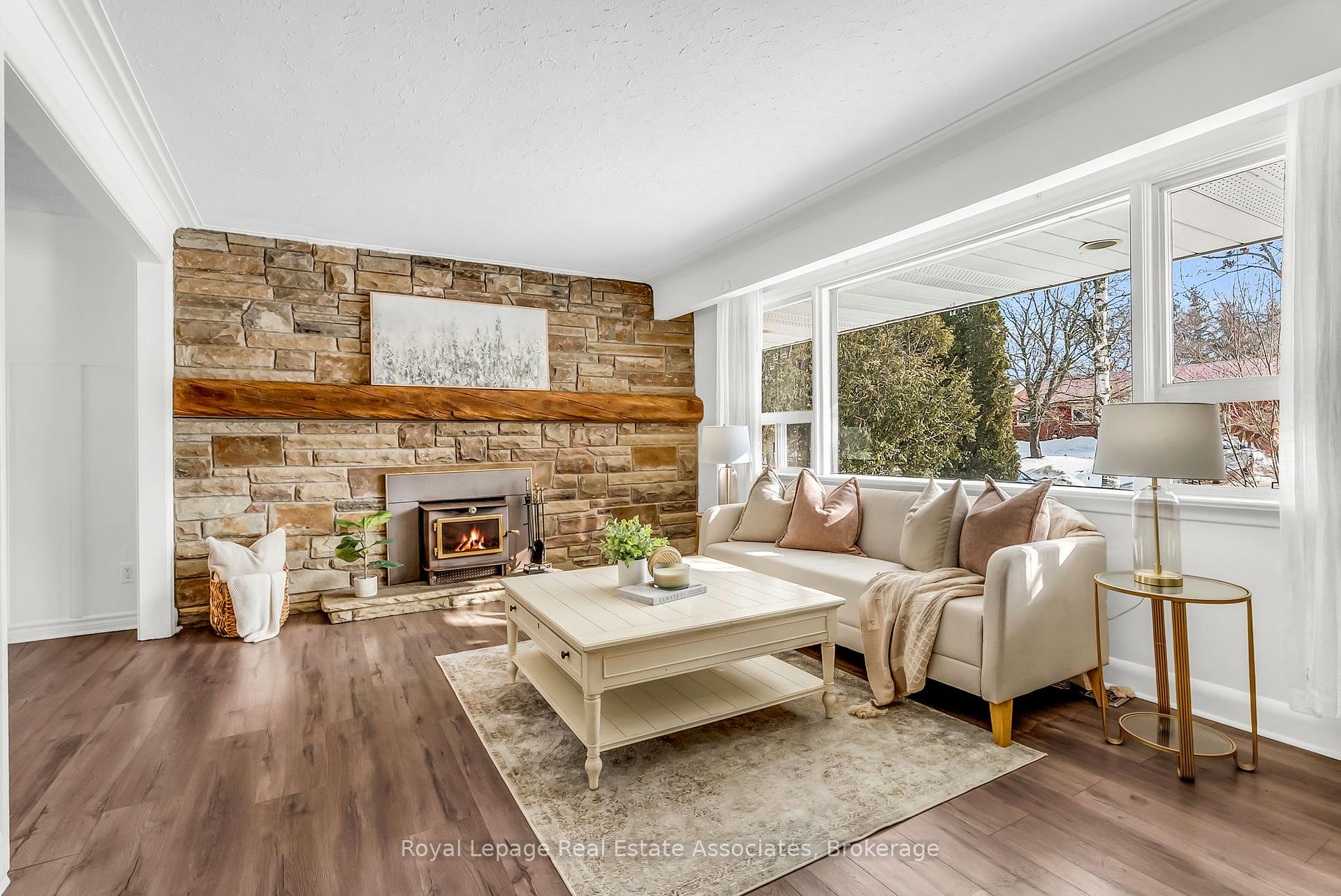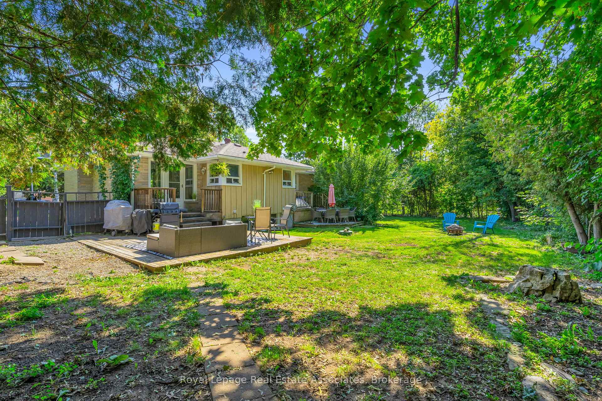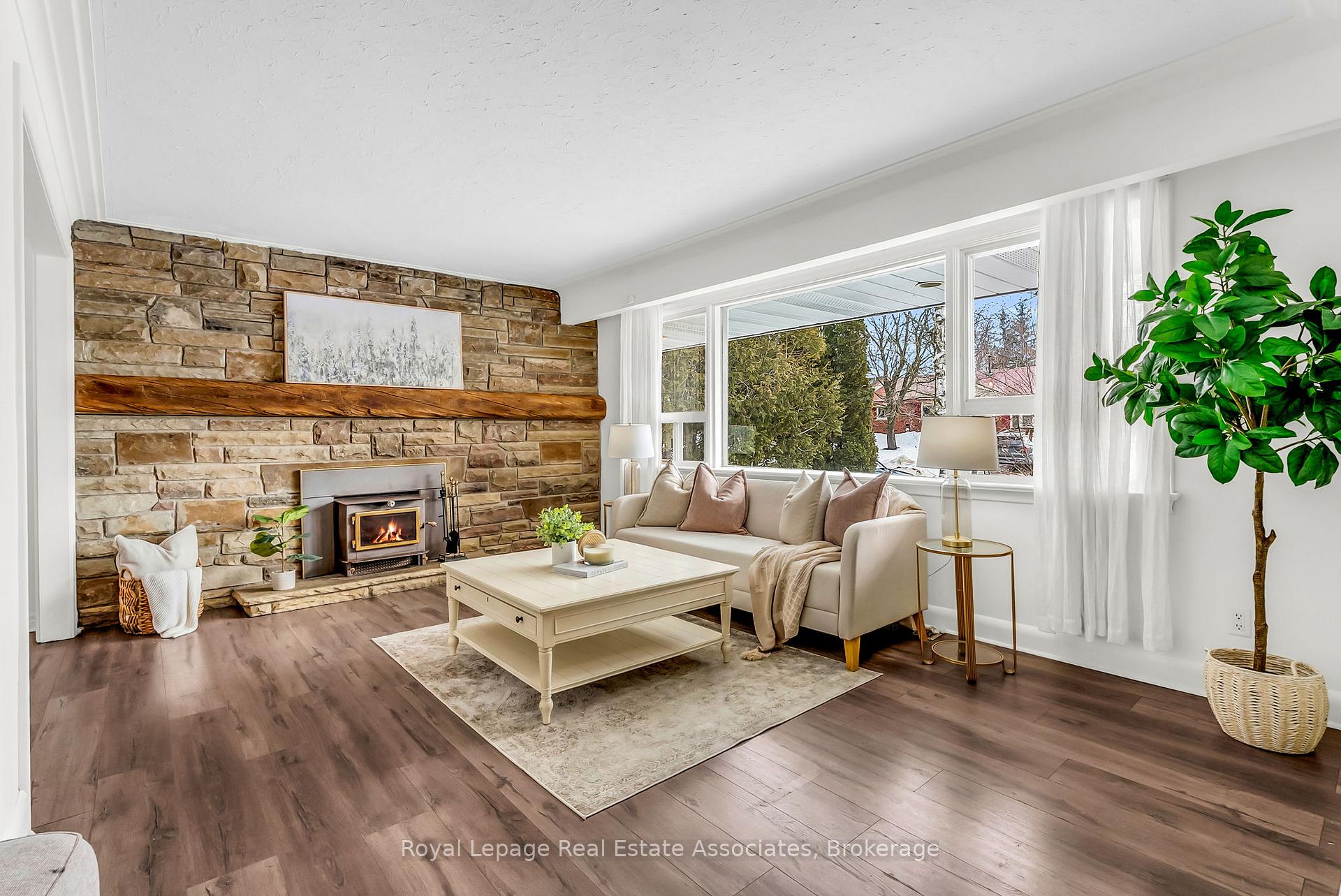 Nestled on a quiet, tree-lined street beside a park and just steps from a scenic pond perfect for fishing and outdoor activities, this 5-bedroom family home combines comfort, space, and community charm.Inside, the carpet-free layout is bright and welcoming. The living room features a cozy wood fireplace with a striking stone feature wall, flowing into the dining area with walkout to the deck and private backyard. The kitchen offers a central island, a walk-in pantry with ample storage, and a ton of natural light. The spacious primary bedroom boasts two closets, while the main floor is completed by two additional bedrooms and an updated 4-piece bathroom.The finished lower level includes two more bedrooms, a large recreation room with a gas fireplace, a 3-piece bathroom, and the flexibility for a home office or guest space. The basement offers plenty of storage as well.Surrounded by mature trees, the expansive backyard provides a peaceful retreat and the perfect spot for family fun or summer gatherings. With its versatile layout, thoughtful updates, and unbeatable location near parks, trails, and town amenities, this home is ready for your next chapter.