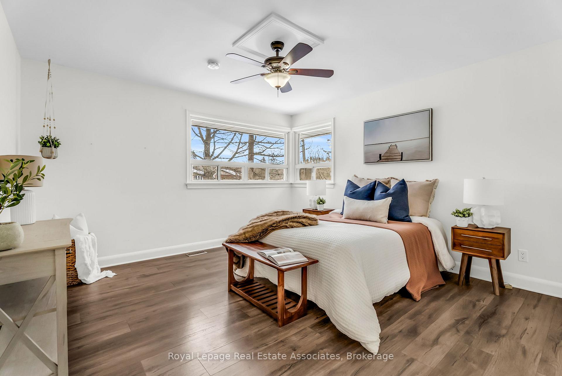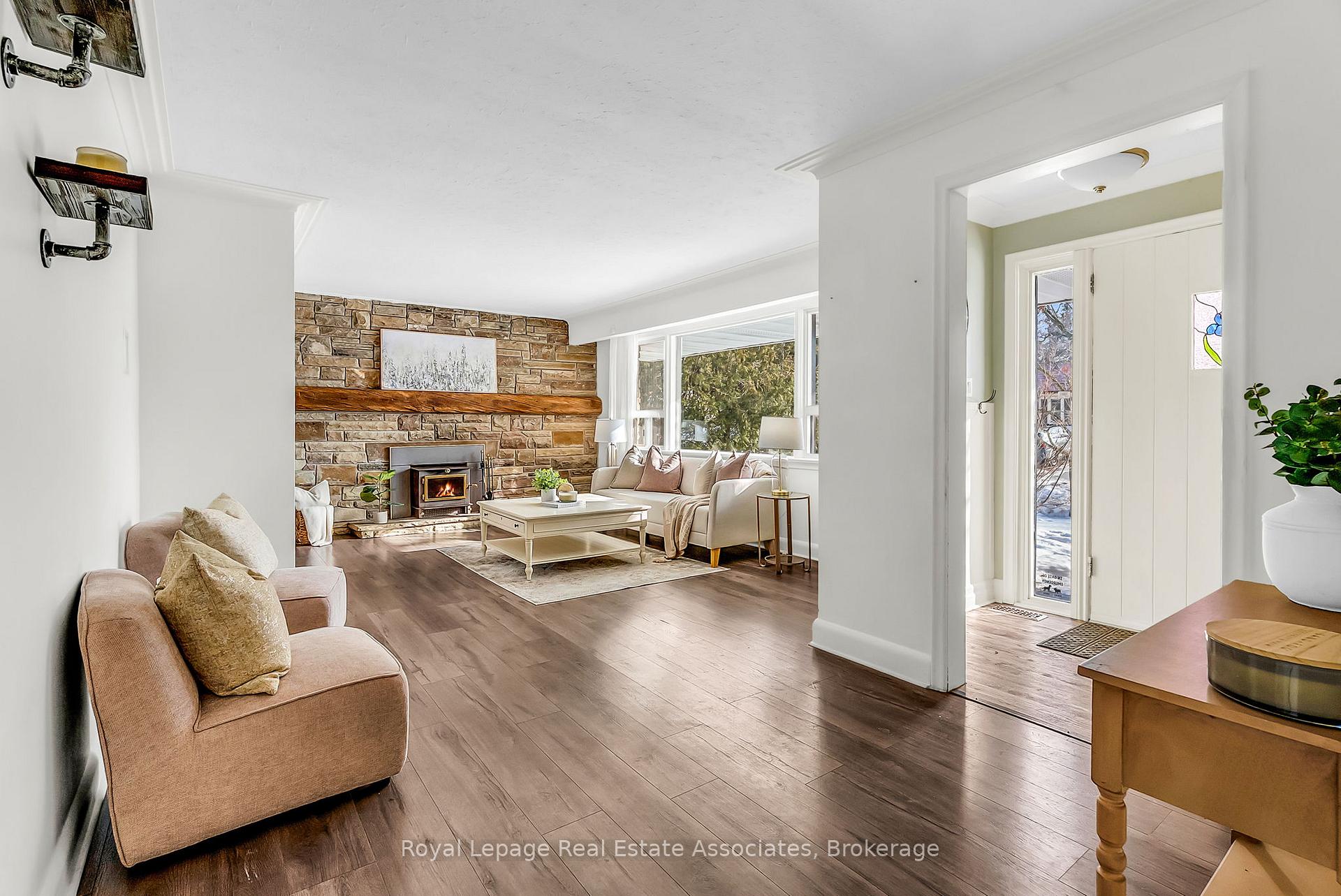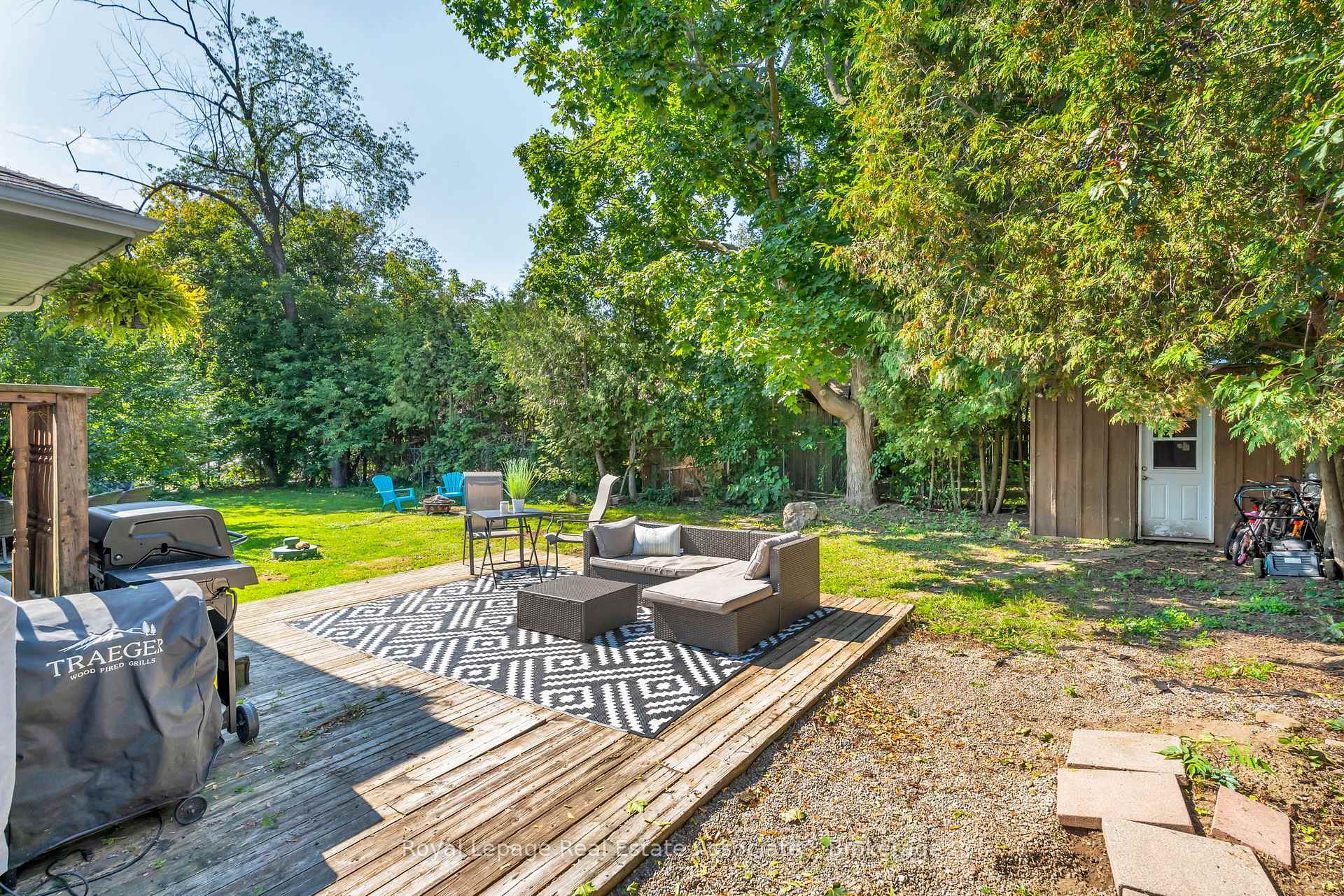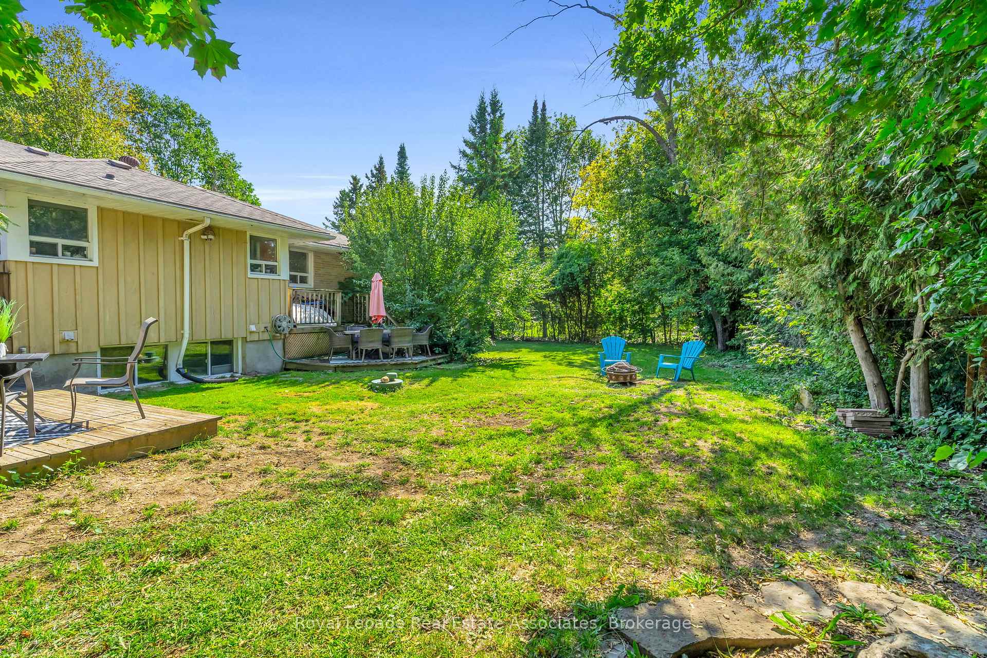 Nestled on a quiet, tree-lined street beside a park and just steps from a scenic pond perfect for fishing and outdoor activities, this 5-bedroom family home combines comfort, space, and community charm.Inside, the carpet-free layout is bright and welcoming. The living room features a cozy wood fireplace with a striking stone feature wall, flowing into the dining area with walkout to the deck and private backyard. The kitchen offers a central island, a walk-in pantry with ample storage, and a ton of natural light. The spacious primary bedroom boasts two closets, while the main floor is completed by two additional bedrooms and an updated 4-piece bathroom.The finished lower level includes two more bedrooms, a large recreation room with a gas fireplace, a 3-piece bathroom, and the flexibility for a home office or guest space. The basement offers plenty of storage as well.Surrounded by mature trees, the expansive backyard provides a peaceful retreat and the perfect spot for family fun or summer gatherings. With its versatile layout, thoughtful updates, and unbeatable location near parks, trails, and town amenities, this home is ready for your next chapter.