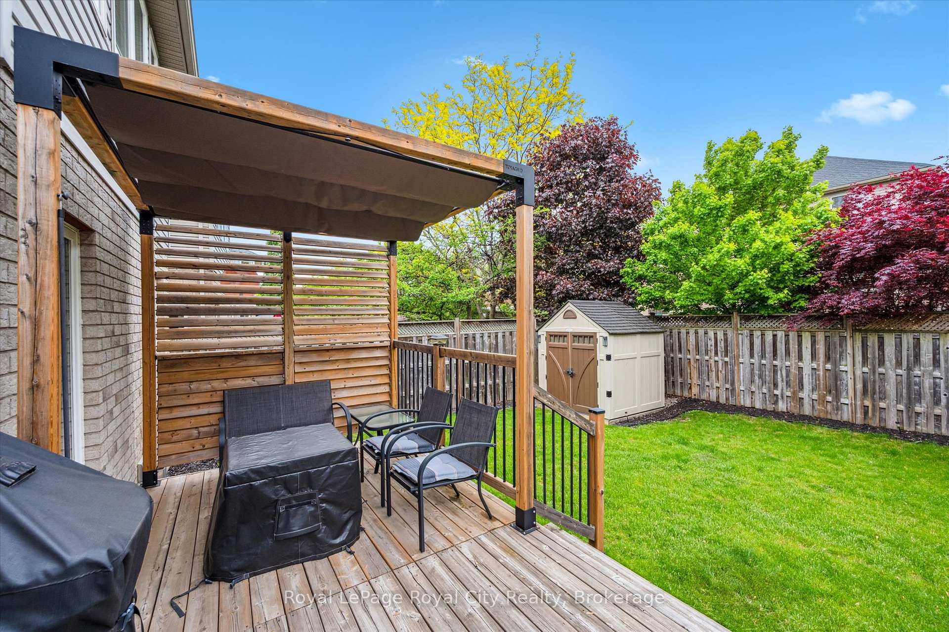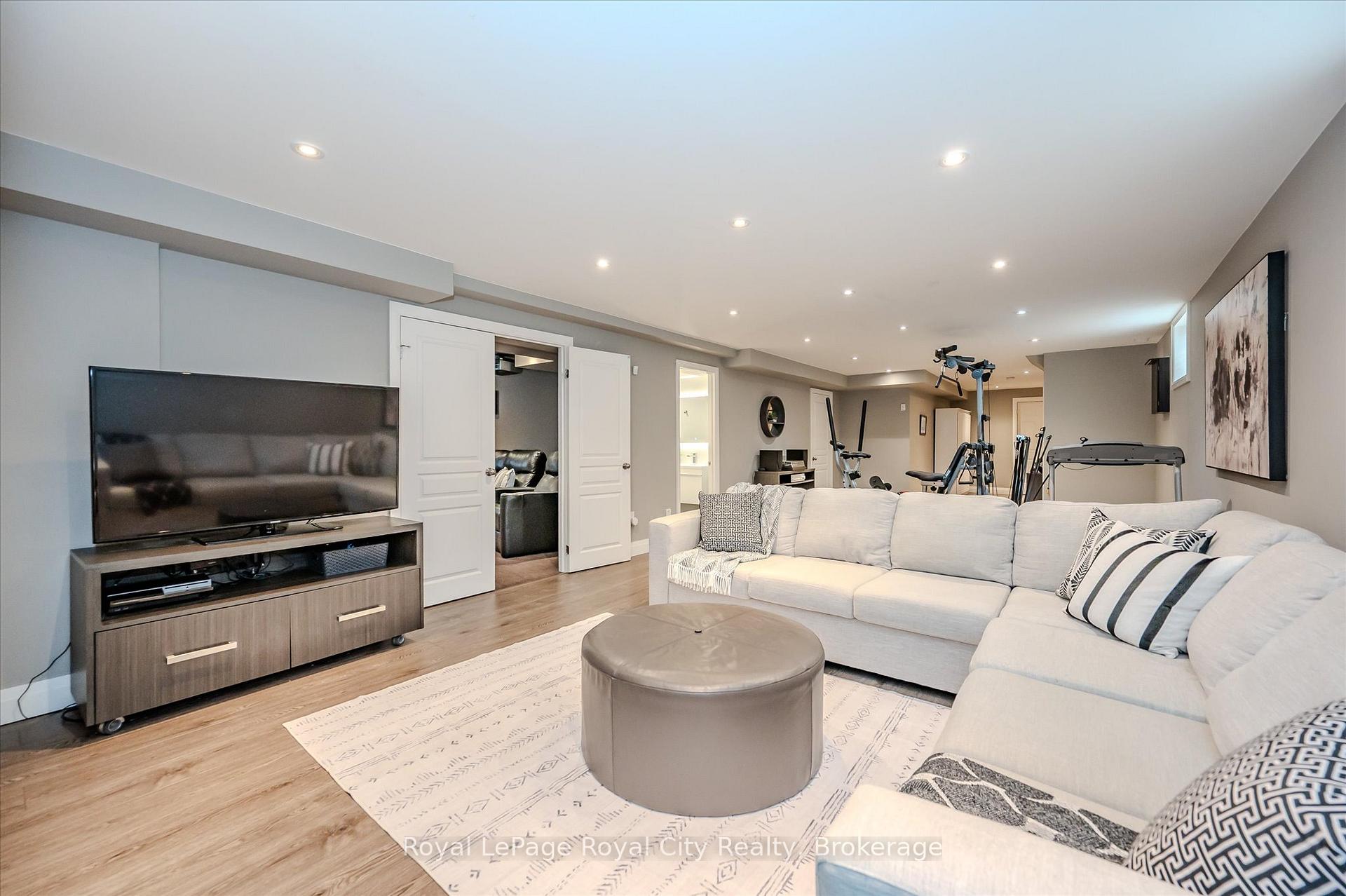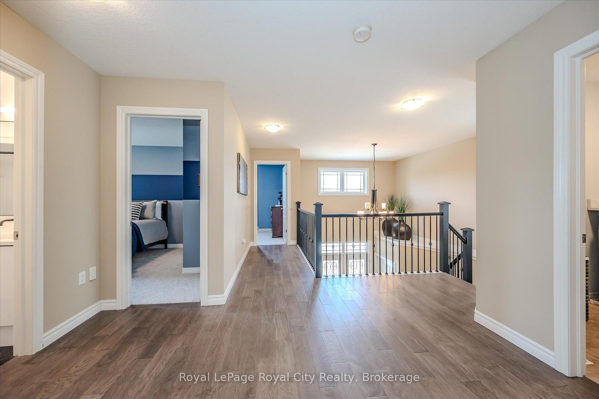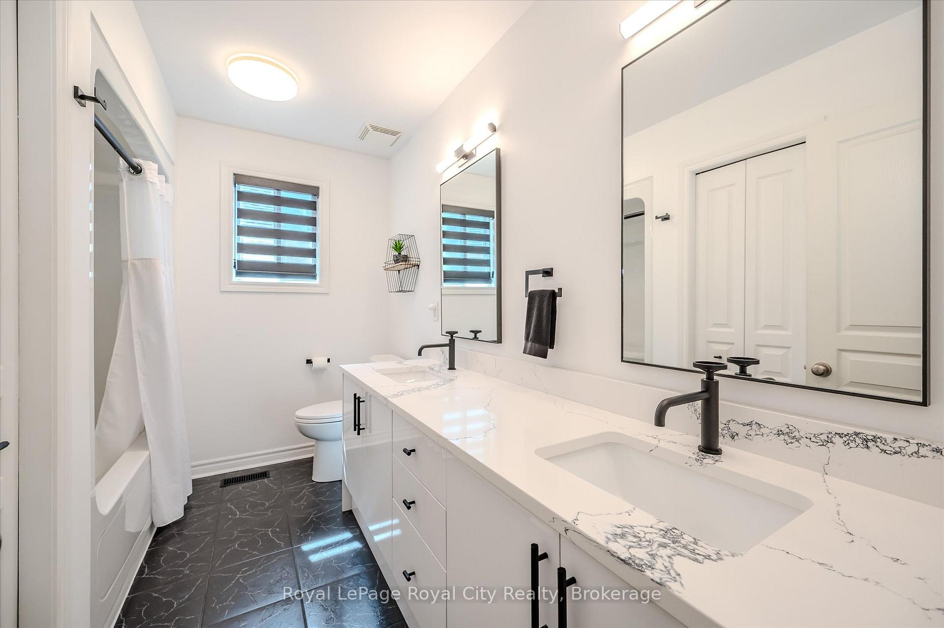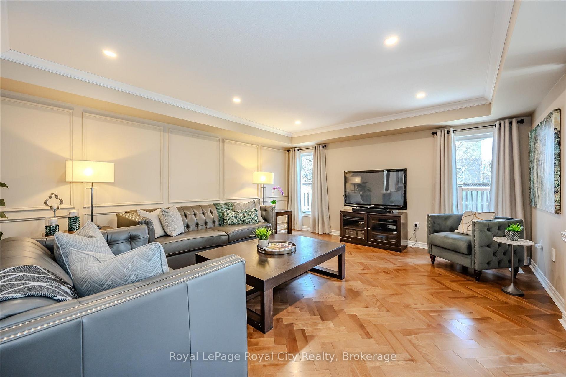 Welcome to 16 Hall Avenue, Where Style Meets Function in Guelph’s South End! Perfectly designed for the modern family, this beautifully finished home offers both elegance and practicality. A classic brick façade and double door entry open to a bright foyer with soaring two-storey ceilings.Host with ease in the formal dining room, featuring a tray ceiling and statement chandelier. The space flows into a spacious great room with herringbone-patterned hardwood floors and custom millwork – one of many upscale details throughout. At the heart of the home is a gourmet eat-in kitchen with custom cabinetry, Caesarstone Quartz counters, under cabinet lighting, and a glass tile backsplash. The central island and bright breakfast area open to the large rear deck ideal for indoor-outdoor living. A practical mudroom with garage access, built-ins, and a utility sink keeps busy households organized. Upstairs, the primary suite is a relaxing retreat with backyard views, a walk-in closet with built-ins, and a spa-like ensuite with a soaker tub, walk-in shower, and gold fixtures. Three additional bedrooms share a 5-piece bathroom with double vanity, and a second-floor laundry room adds convenience. The fully finished basement offers luxury vinyl plank flooring, pot lights, and big windows for natural light. Enjoy the sleek fireplace in the Rec room, and host movie nights in the adjacent theatre room (or optional fifth bedroom). A modern 3-piece bath and bonus space for an office, gym, or playroom complete the level. The fully fenced backyard includes a custom trellis and generous deck perfect for dining, play, or gardening. Walk to schools, parks, and amenities, with easy access to commuter routes. 16 Hall Avenue is the full package!